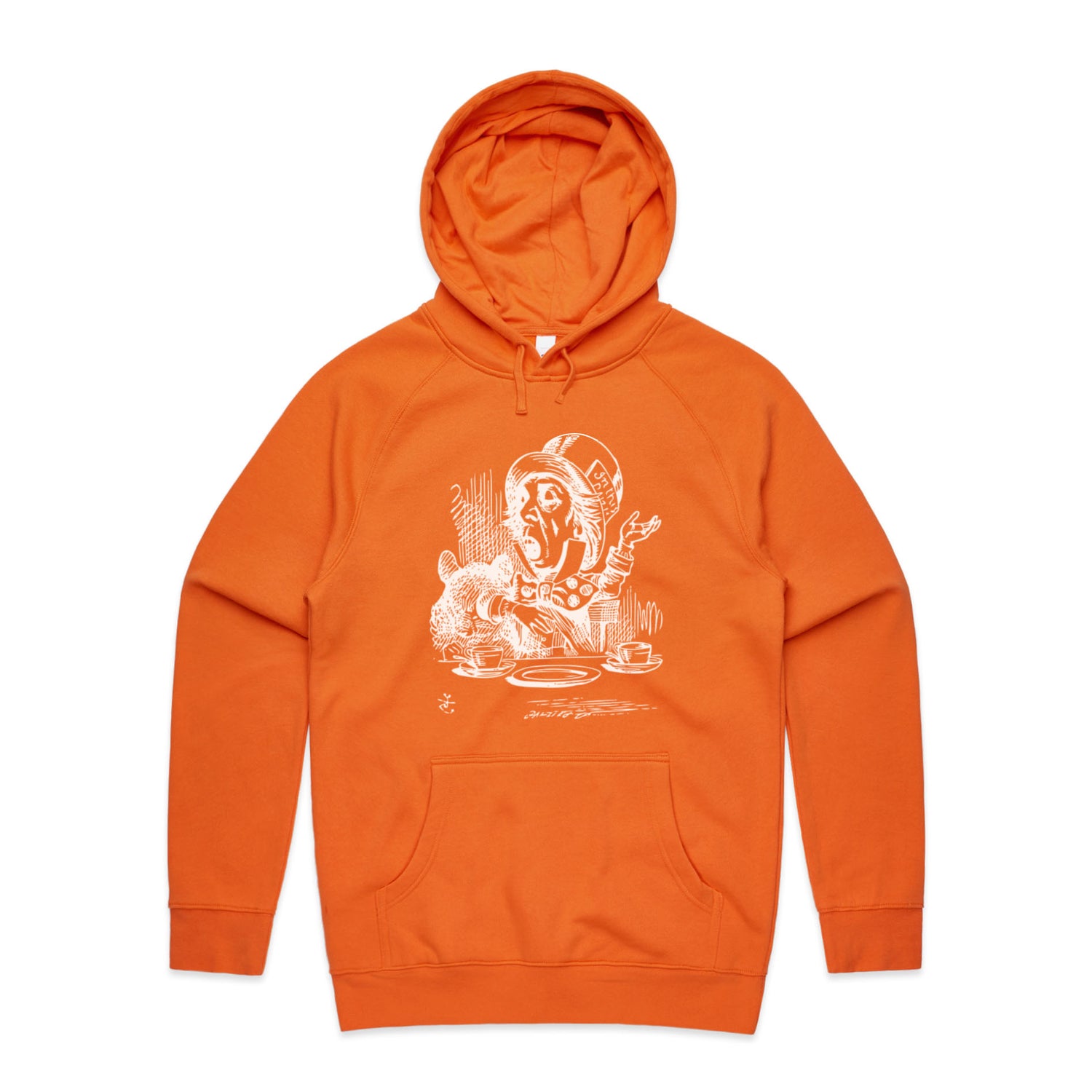 The Hoodies Alice in Wonderland - Mad Hatter Engaging – Men's Hooded Sweatshirt is a high-quality men's hooded sweatshirt, printed with white ink on the trusted AS Colour Supply Hood 5101. With a regular fit and mid-weight feel, it's crafted from a premium blend of 80% cotton and 20% polyester anti-pill fleece, making it a durable and comfortable staple for any wardrobe. The pullover design features raglan sleeves, a lined hood with tonal drawcord, ribbed sleeve cuffs, and a roomy kangaroo pocket — all designed to keep you warm while looking effortlessly sharp.