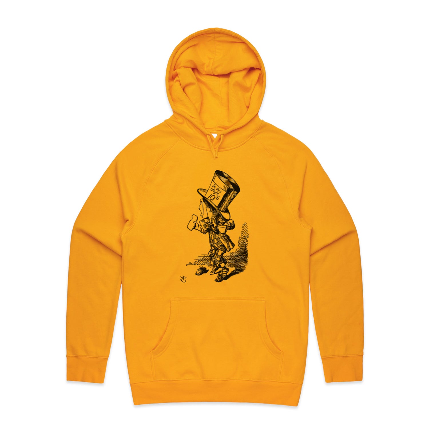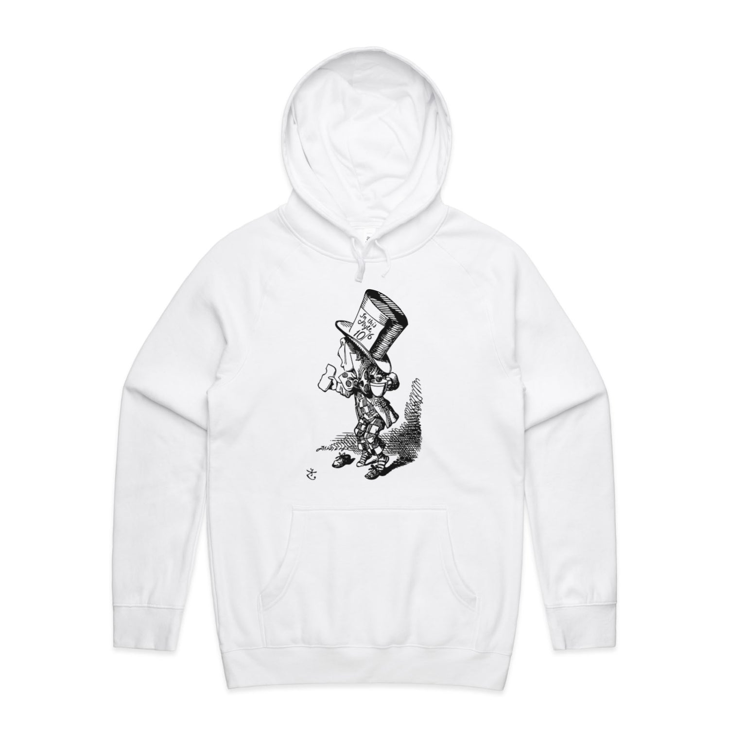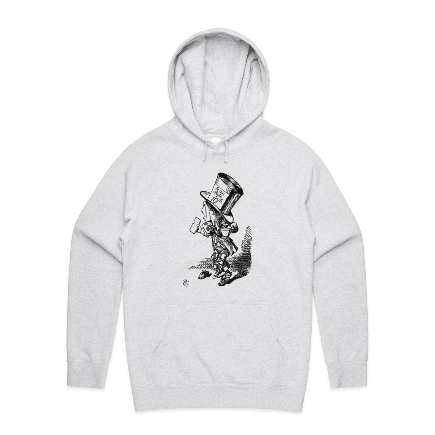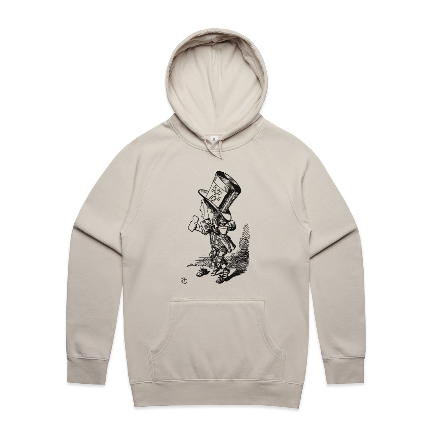 The Hoodies Alice in Wonderland - Mad Hatter Hastily – Men's Hooded Sweatshirt is a high-quality men's hooded sweatshirt, printed with black ink on the trusted AS Colour Supply Hood 5101. With a regular fit and mid-weight feel, it's crafted from a premium blend of 80% cotton and 20% polyester anti-pill fleece, making it a durable and comfortable staple for any wardrobe. The pullover design features raglan sleeves, a lined hood with tonal drawcord, ribbed sleeve cuffs, and a roomy kangaroo pocket — all designed to keep you warm while looking effortlessly sharp.