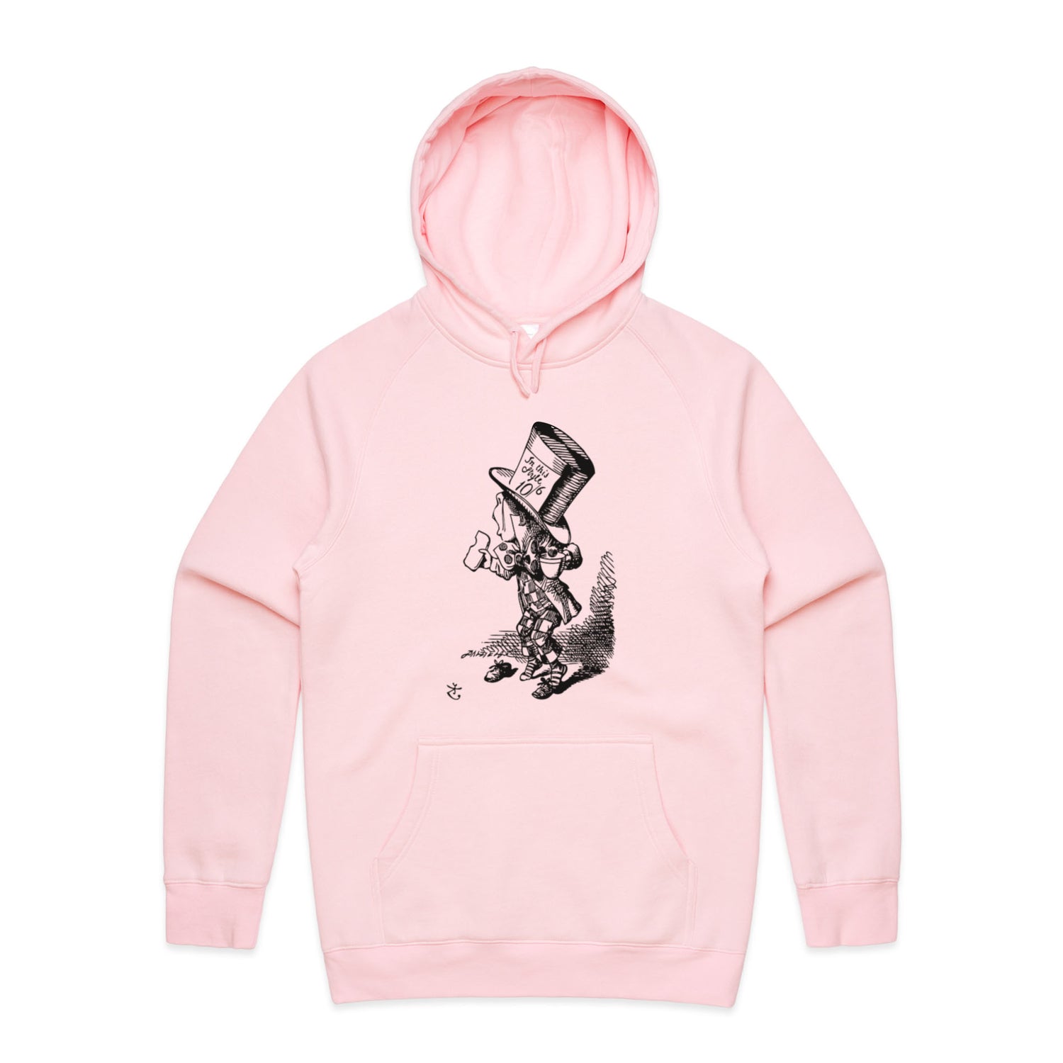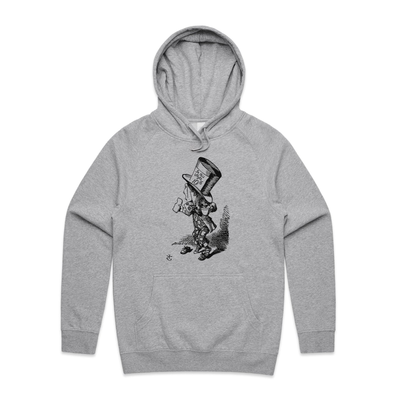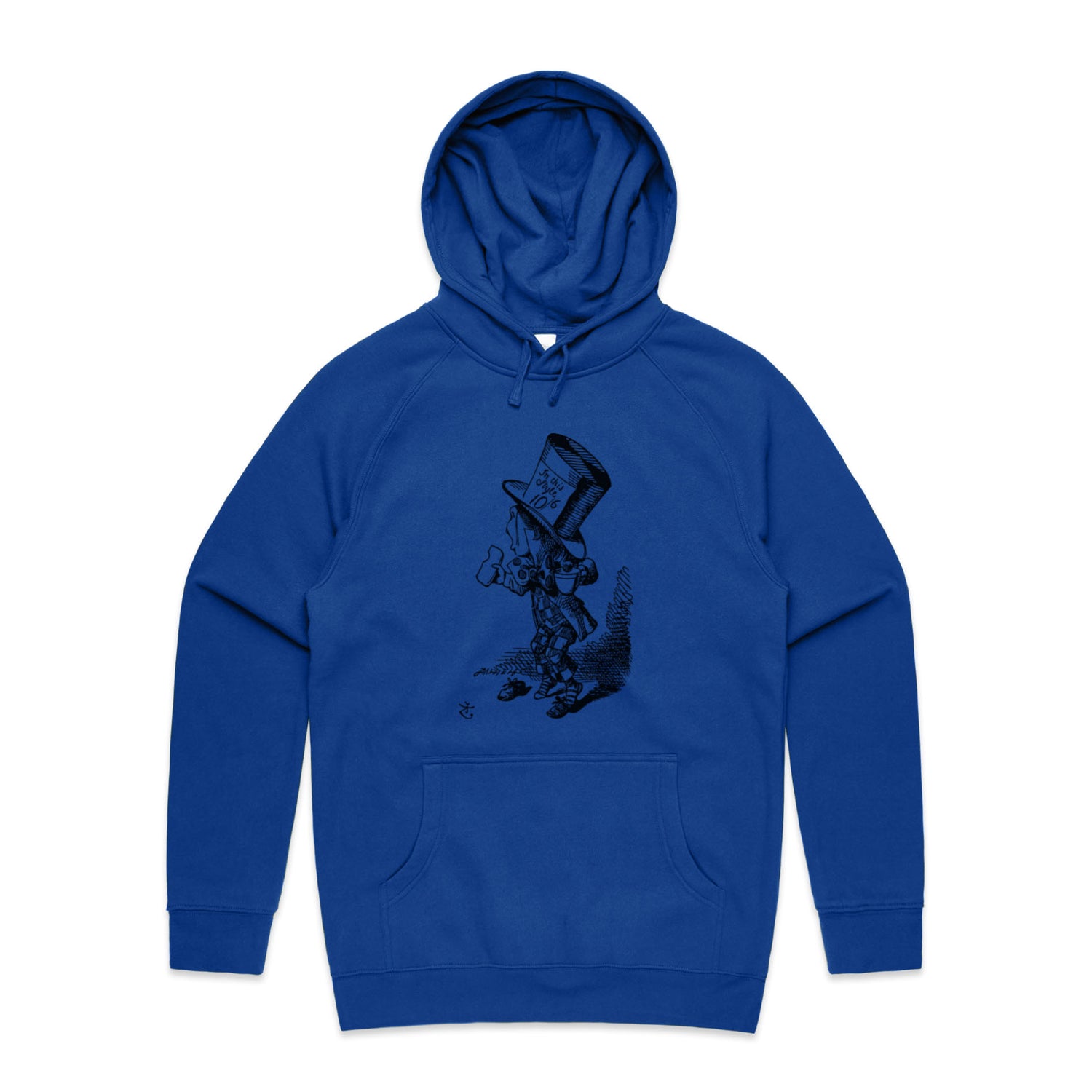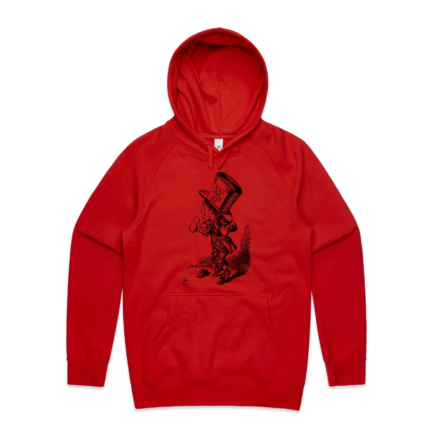 The Hoodies Alice in Wonderland - Mad Hatter Hastily – Men's Hooded Sweatshirt is a high-quality men's hooded sweatshirt, printed with black ink on the trusted AS Colour Supply Hood 5101. With a regular fit and mid-weight feel, it's crafted from a premium blend of 80% cotton and 20% polyester anti-pill fleece, making it a durable and comfortable staple for any wardrobe. The pullover design features raglan sleeves, a lined hood with tonal drawcord, ribbed sleeve cuffs, and a roomy kangaroo pocket — all designed to keep you warm while looking effortlessly sharp.