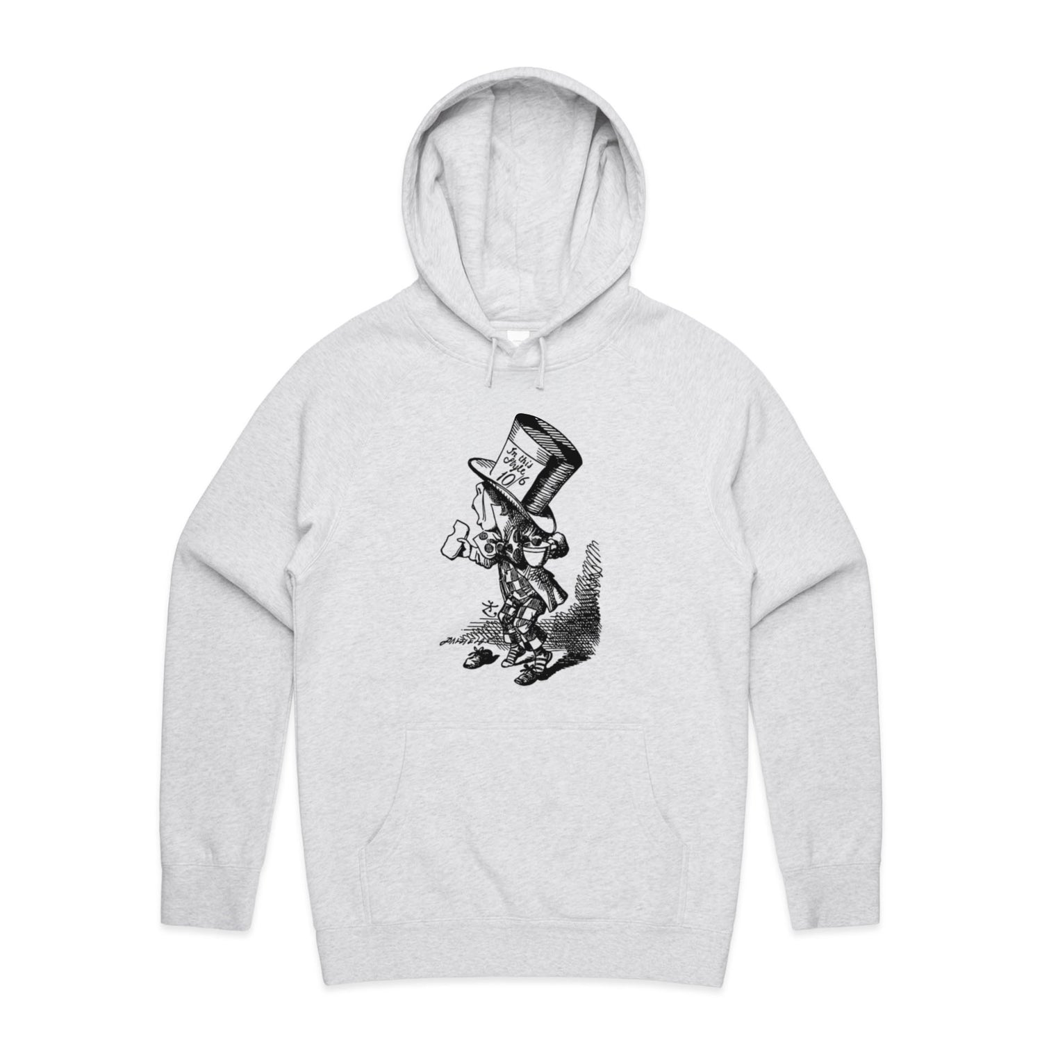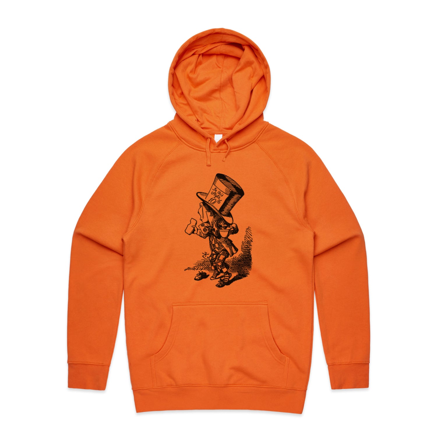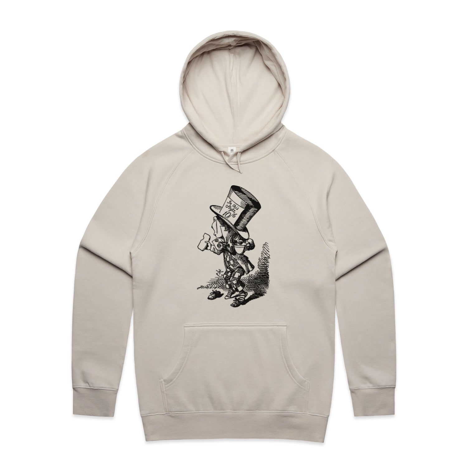 The Hoodies Alice in Wonderland - Madhatter – Men's Hooded Sweatshirt is a high-quality men's hooded sweatshirt, printed with black ink on the trusted AS Colour Supply Hood 5101. With a regular fit and mid-weight feel, it's crafted from a premium blend of 80% cotton and 20% polyester anti-pill fleece, making it a durable and comfortable staple for any wardrobe. The pullover design features raglan sleeves, a lined hood with tonal drawcord, ribbed sleeve cuffs, and a roomy kangaroo pocket — all designed to keep you warm while looking effortlessly sharp.