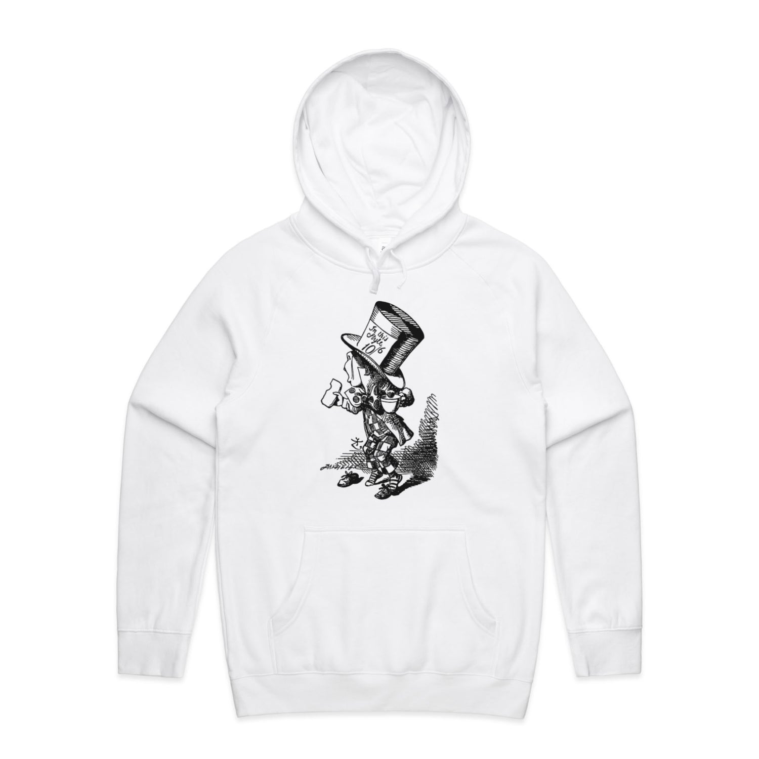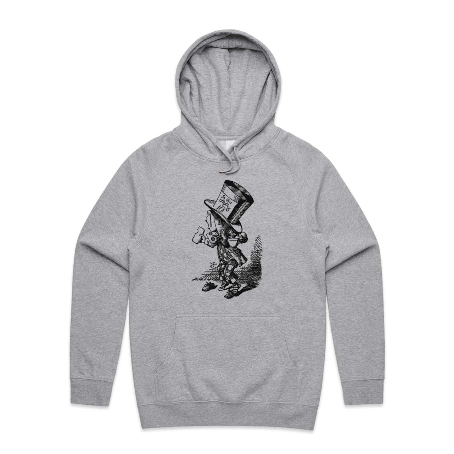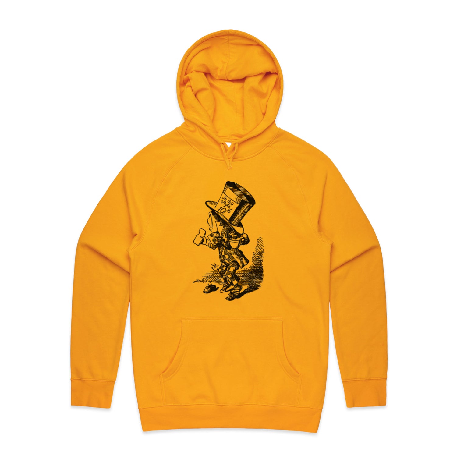 The Hoodies Alice in Wonderland - Madhatter – Men's Hooded Sweatshirt is a high-quality men's hooded sweatshirt, printed with black ink on the trusted AS Colour Supply Hood 5101. With a regular fit and mid-weight feel, it's crafted from a premium blend of 80% cotton and 20% polyester anti-pill fleece, making it a durable and comfortable staple for any wardrobe. The pullover design features raglan sleeves, a lined hood with tonal drawcord, ribbed sleeve cuffs, and a roomy kangaroo pocket — all designed to keep you warm while looking effortlessly sharp.