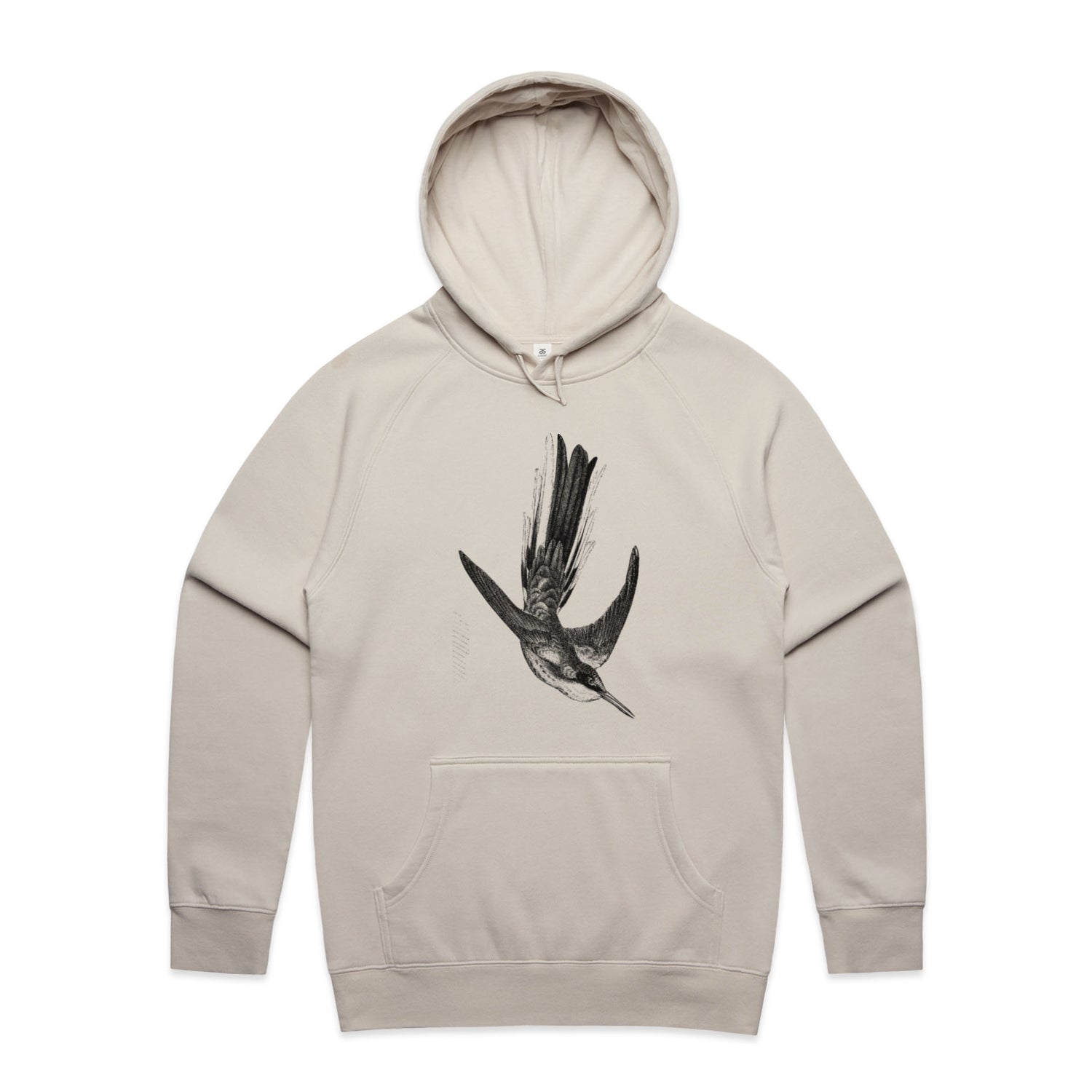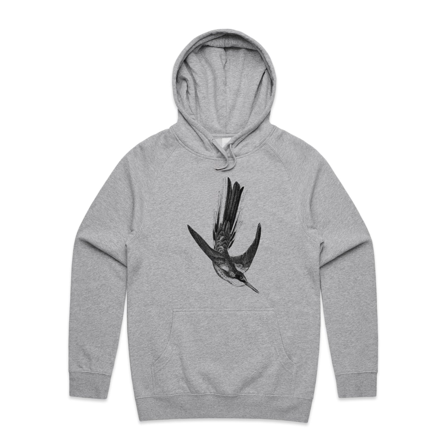 The Hoodies Bird in Midflight – Men's Hooded Sweatshirt is a high-quality men's hooded sweatshirt, printed with black ink on the trusted AS Colour Supply Hood 5101. With a regular fit and mid-weight feel, it's crafted from a premium blend of 80% cotton and 20% polyester anti-pill fleece, making it a durable and comfortable staple for any wardrobe. The pullover design features raglan sleeves, a lined hood with tonal drawcord, ribbed sleeve cuffs, and a roomy kangaroo pocket — all designed to keep you warm while looking effortlessly sharp.