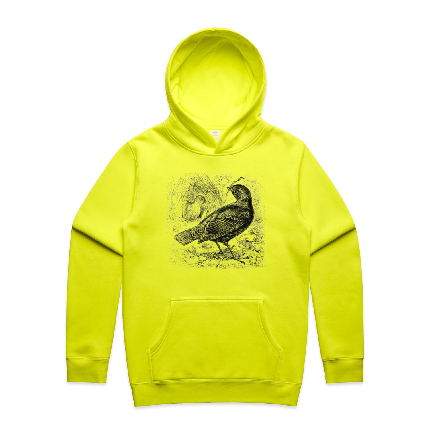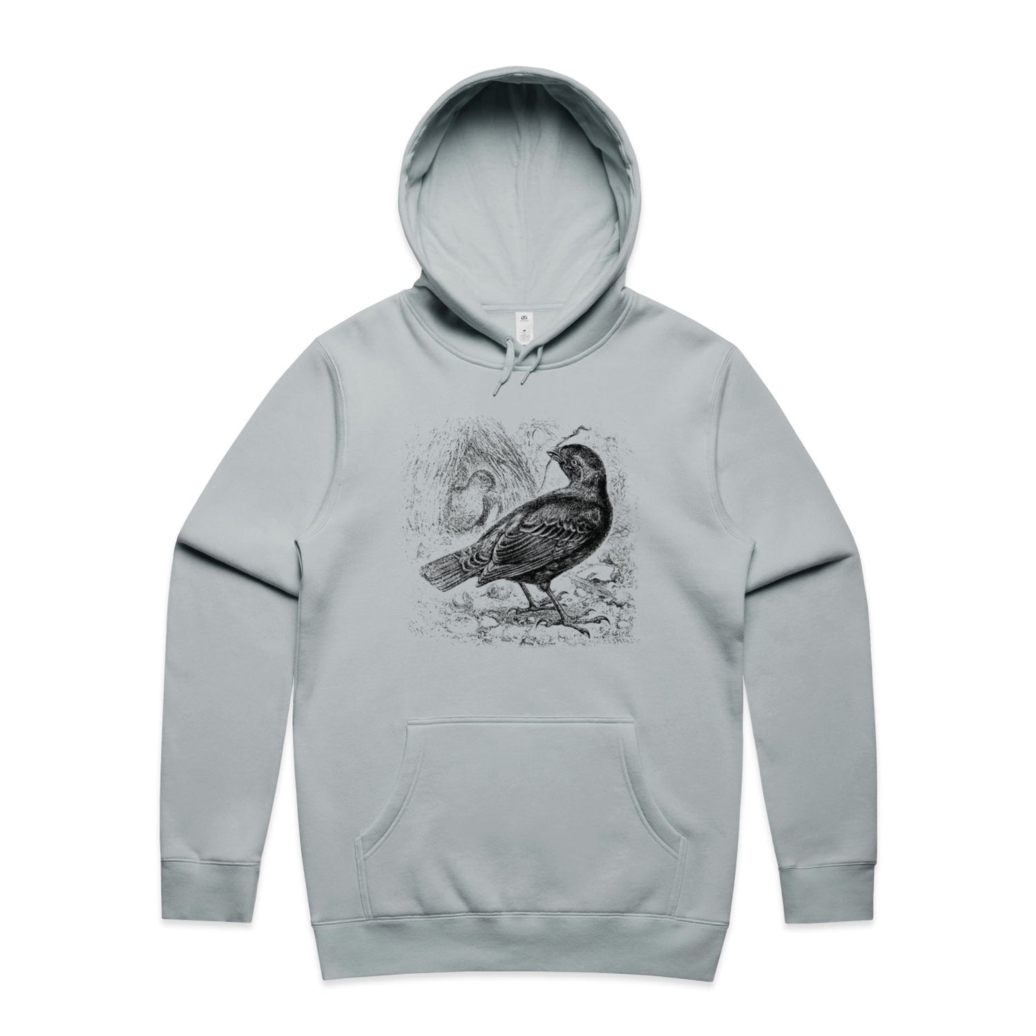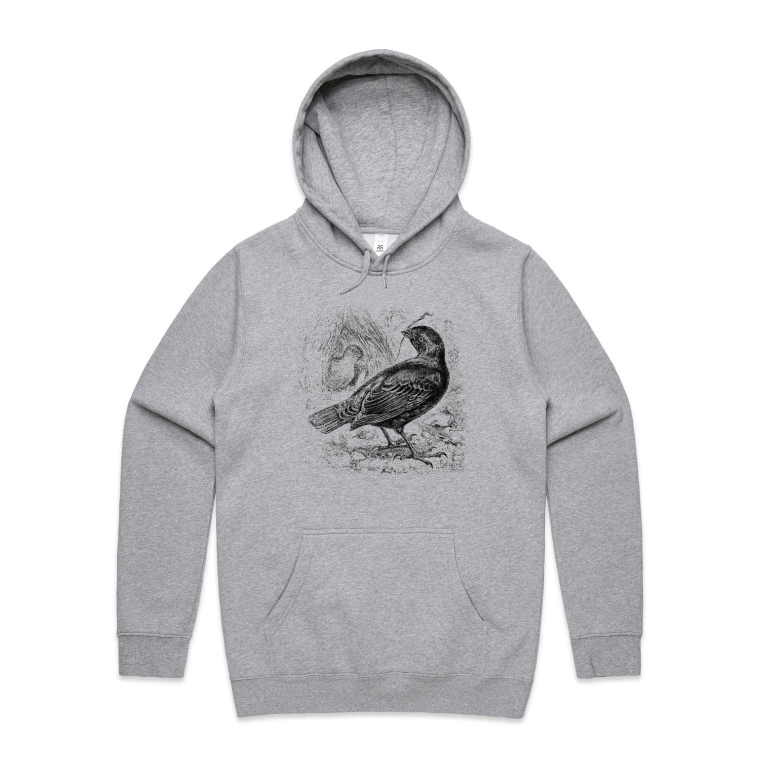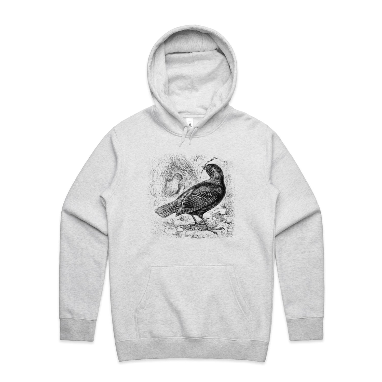 Featuring a stunning black ink bird print, it’s got that cheeky flair to make heads turn. With a lined hood for extra warmth and a kangaroo pocket ready to stash your essentials, it's more than just a hoodie – it’s your trusty, stylish companion. Crafted with a blend of cotton and recycled polyester, it's comfy, eco-conscious, and just waiting for epic adventures with you.