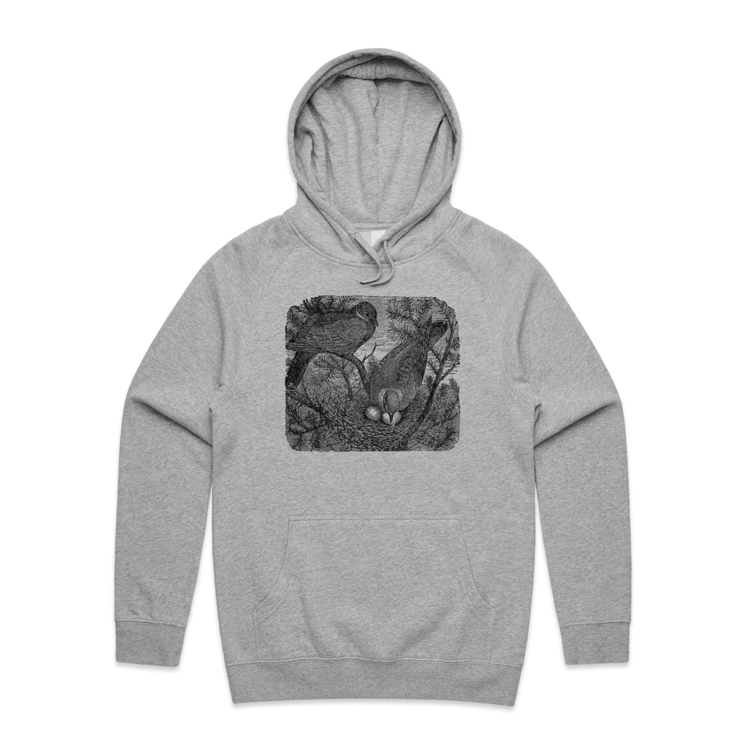 The Hoodies Protecting the Nest – Men's Hooded Sweatshirt is a high-quality men's hooded sweatshirt, printed with black ink on the trusted AS Colour Supply Hood 5101. With a regular fit and mid-weight feel, it's crafted from a premium blend of 80% cotton and 20% polyester anti-pill fleece, making it a durable and comfortable staple for any wardrobe. The pullover design features raglan sleeves, a lined hood with tonal drawcord, ribbed sleeve cuffs, and a roomy kangaroo pocket — all designed to keep you warm while looking effortlessly sharp.