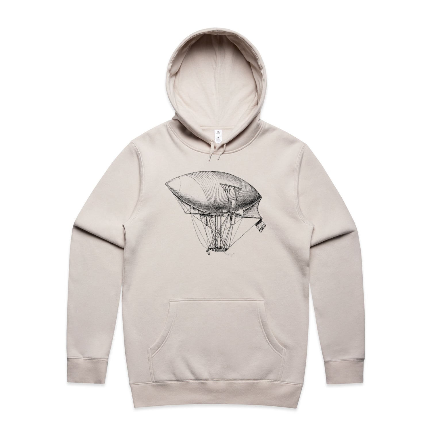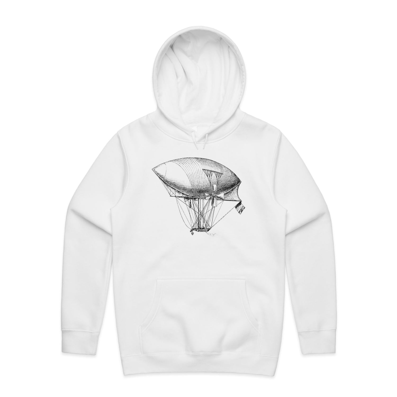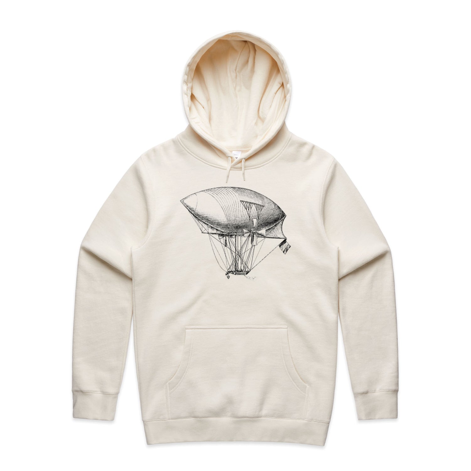 Crafted from a comfy blend, this mid-heavy weight hoodie is just the ticket for all kinds of weather, from breezy beach evenings to city escapades. Its all-black ink design takes you back to the airship era, making you the captain of cool wherever you go!