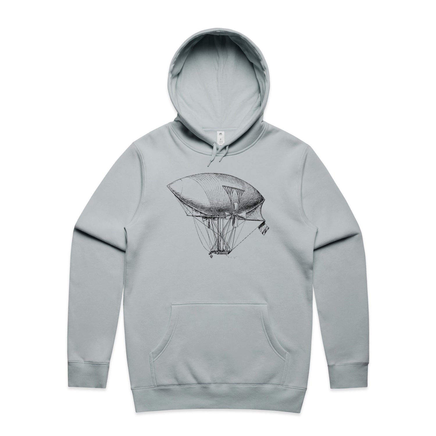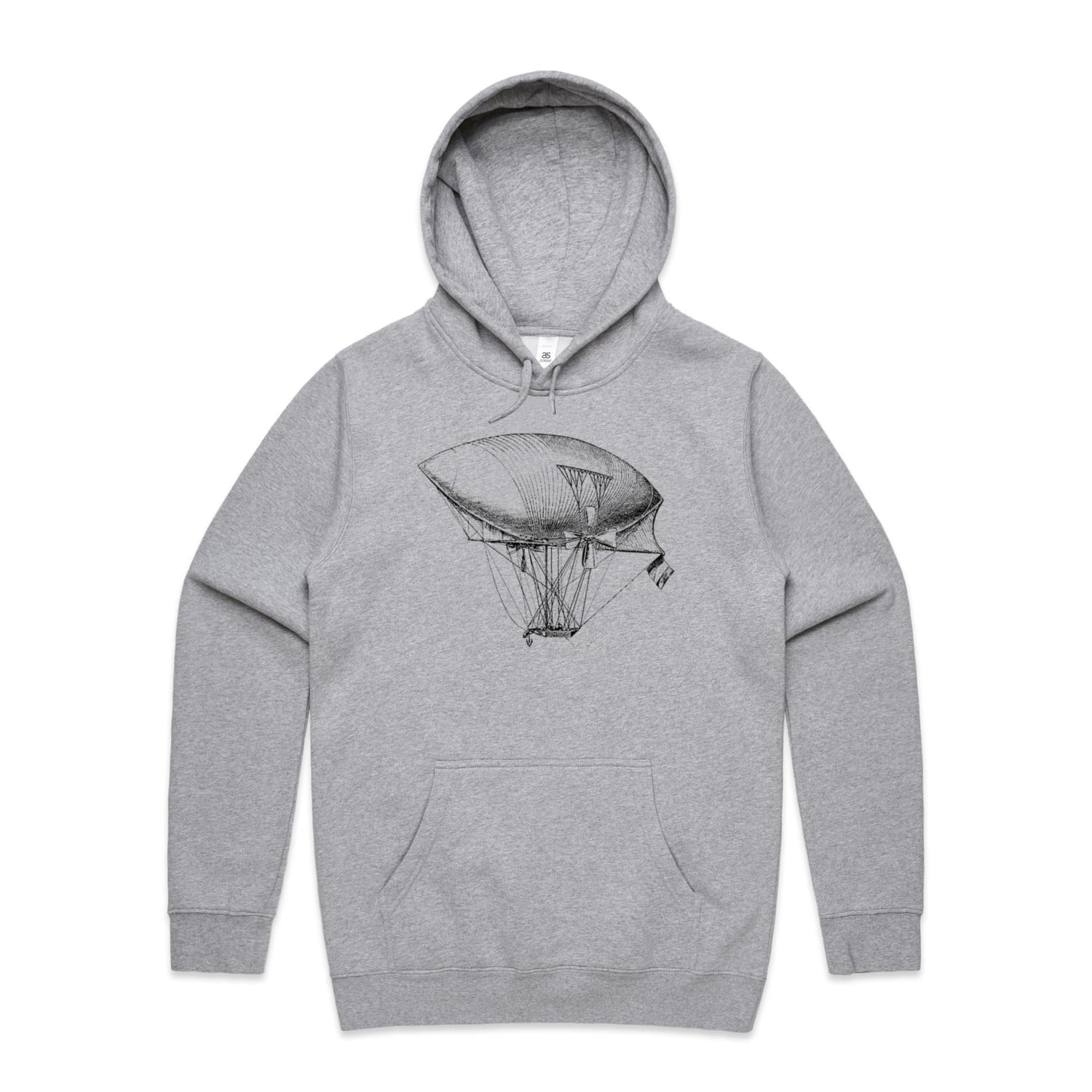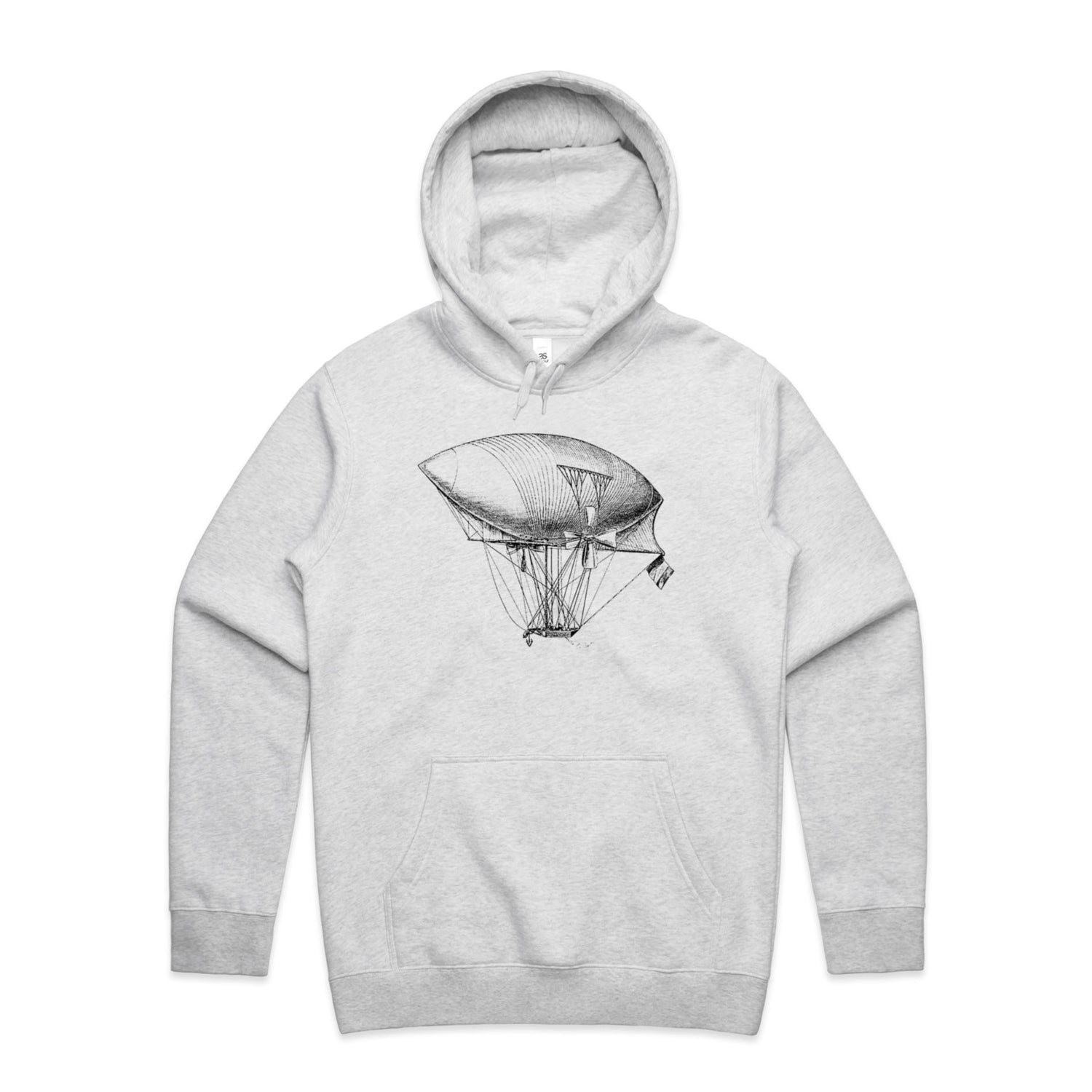 Crafted from a comfy blend, this mid-heavy weight hoodie is just the ticket for all kinds of weather, from breezy beach evenings to city escapades. Its all-black ink design takes you back to the airship era, making you the captain of cool wherever you go!