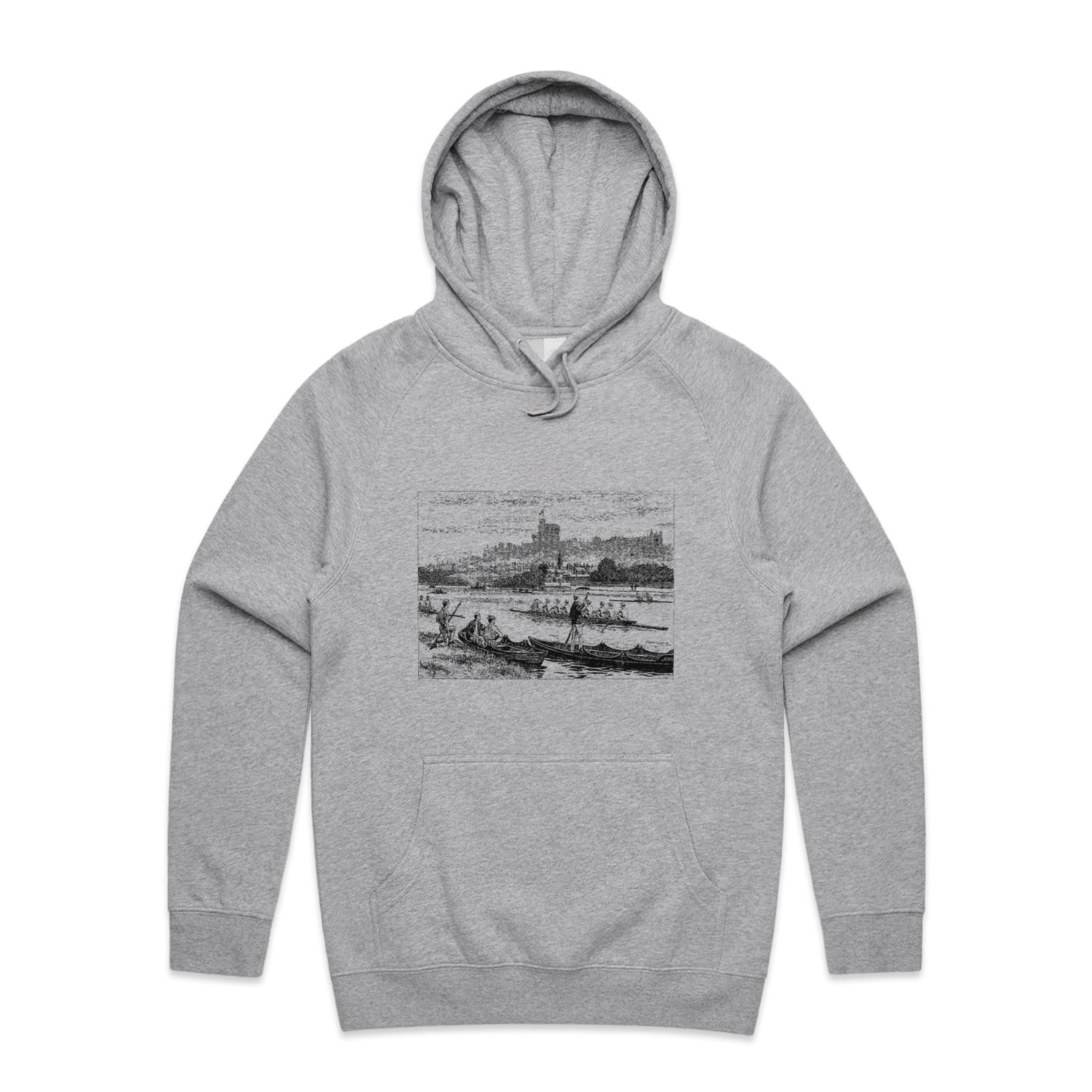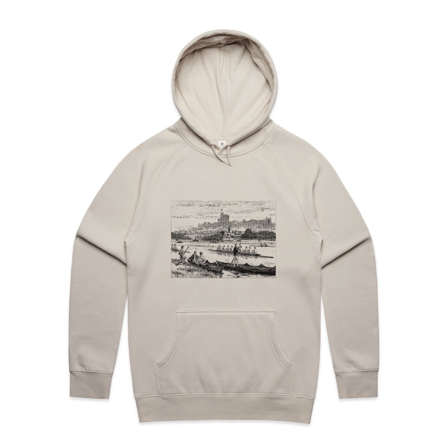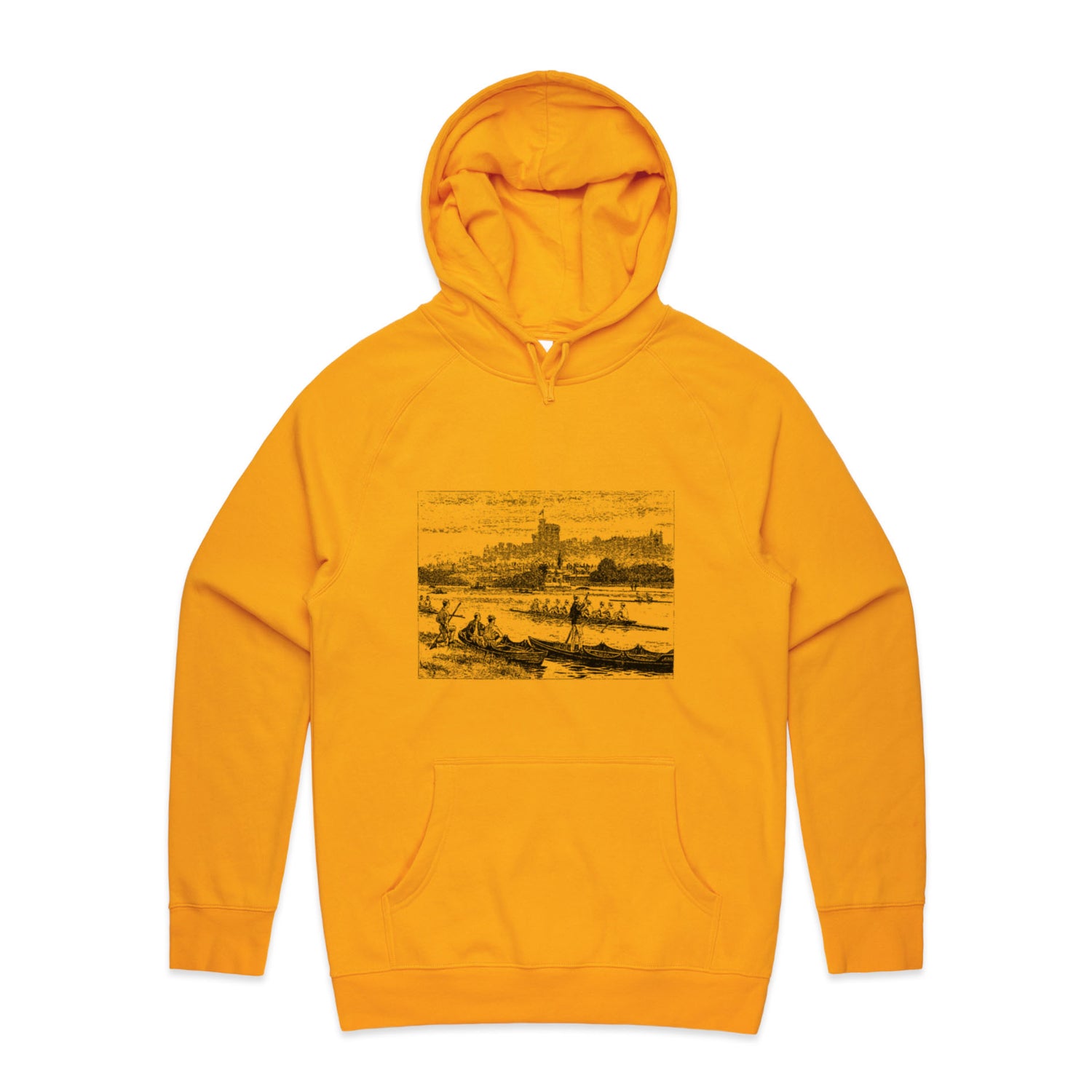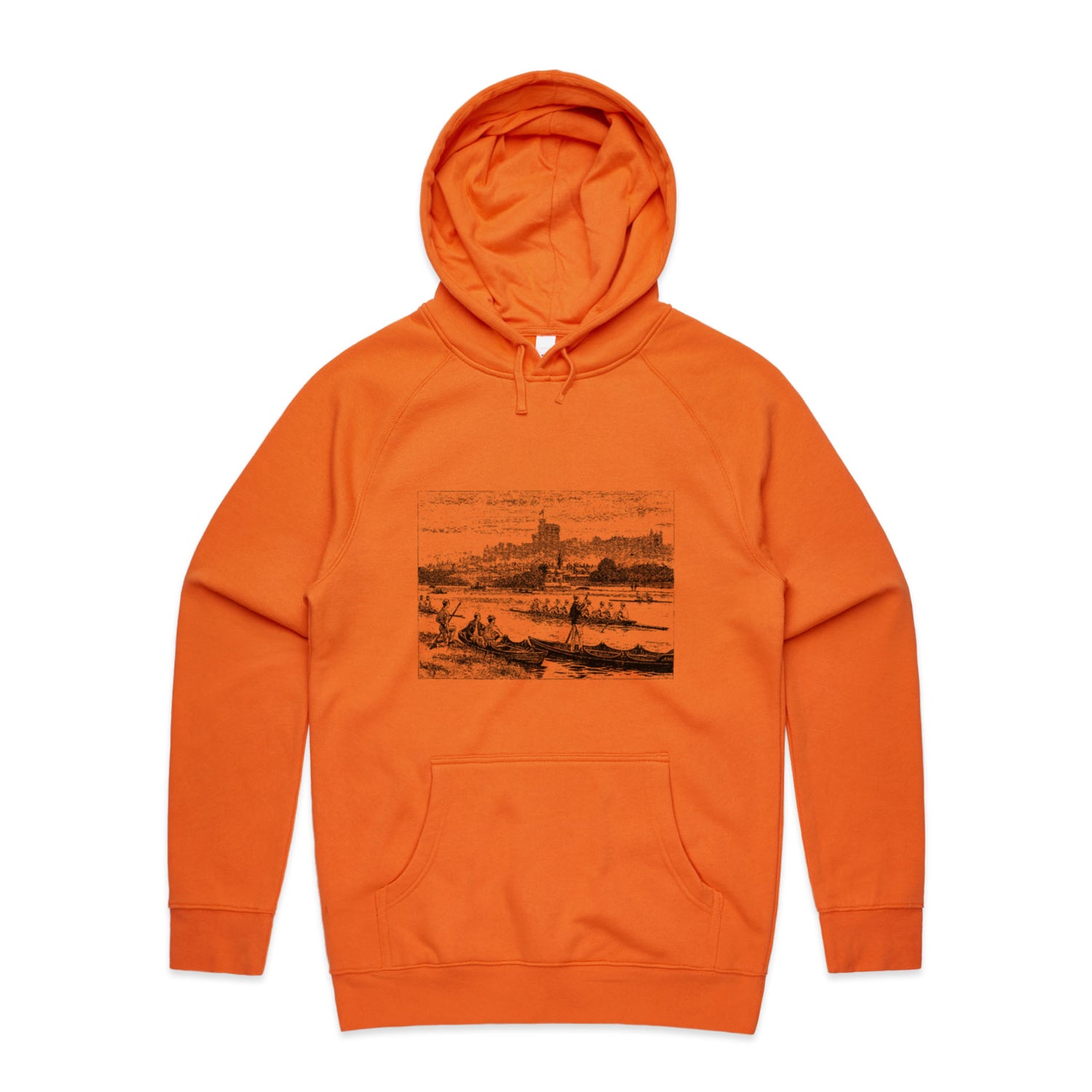 The Hoodies Boats in the River – Men's Hooded Sweatshirt is a high-quality men's hooded sweatshirt, printed with black ink on the trusted AS Colour Supply Hood 5101. With a regular fit and mid-weight feel, it's crafted from a premium blend of 80% cotton and 20% polyester anti-pill fleece, making it a durable and comfortable staple for any wardrobe. The pullover design features raglan sleeves, a lined hood with tonal drawcord, ribbed sleeve cuffs, and a roomy kangaroo pocket — all designed to keep you warm while looking effortlessly sharp.