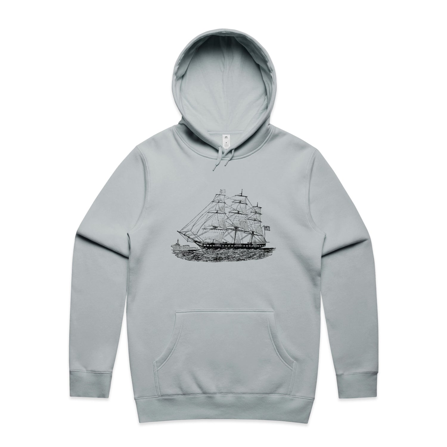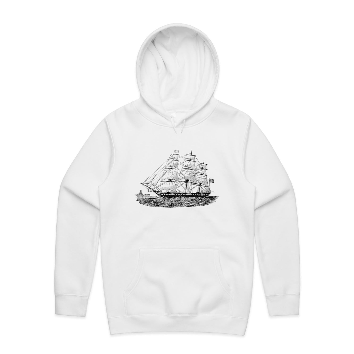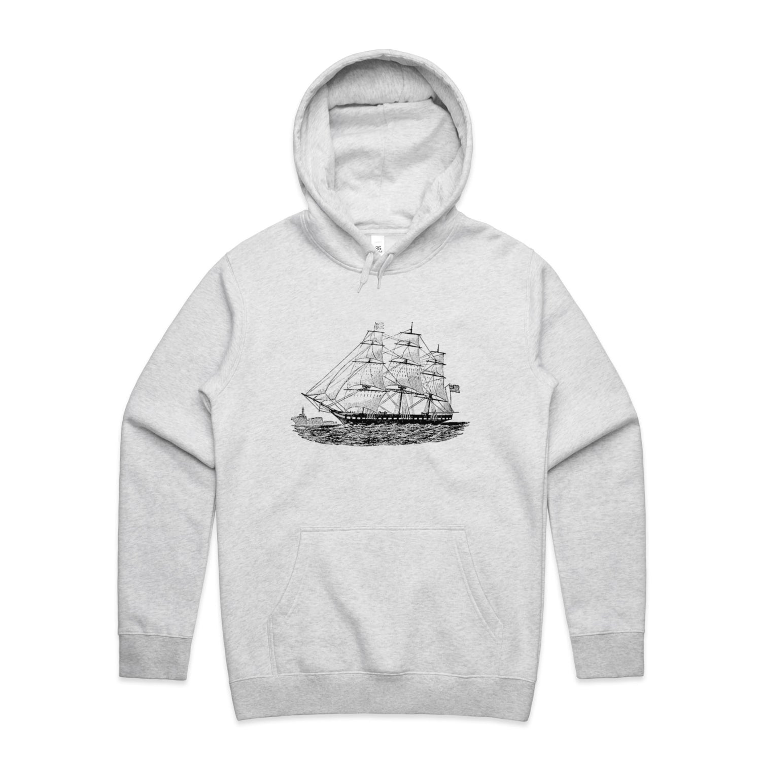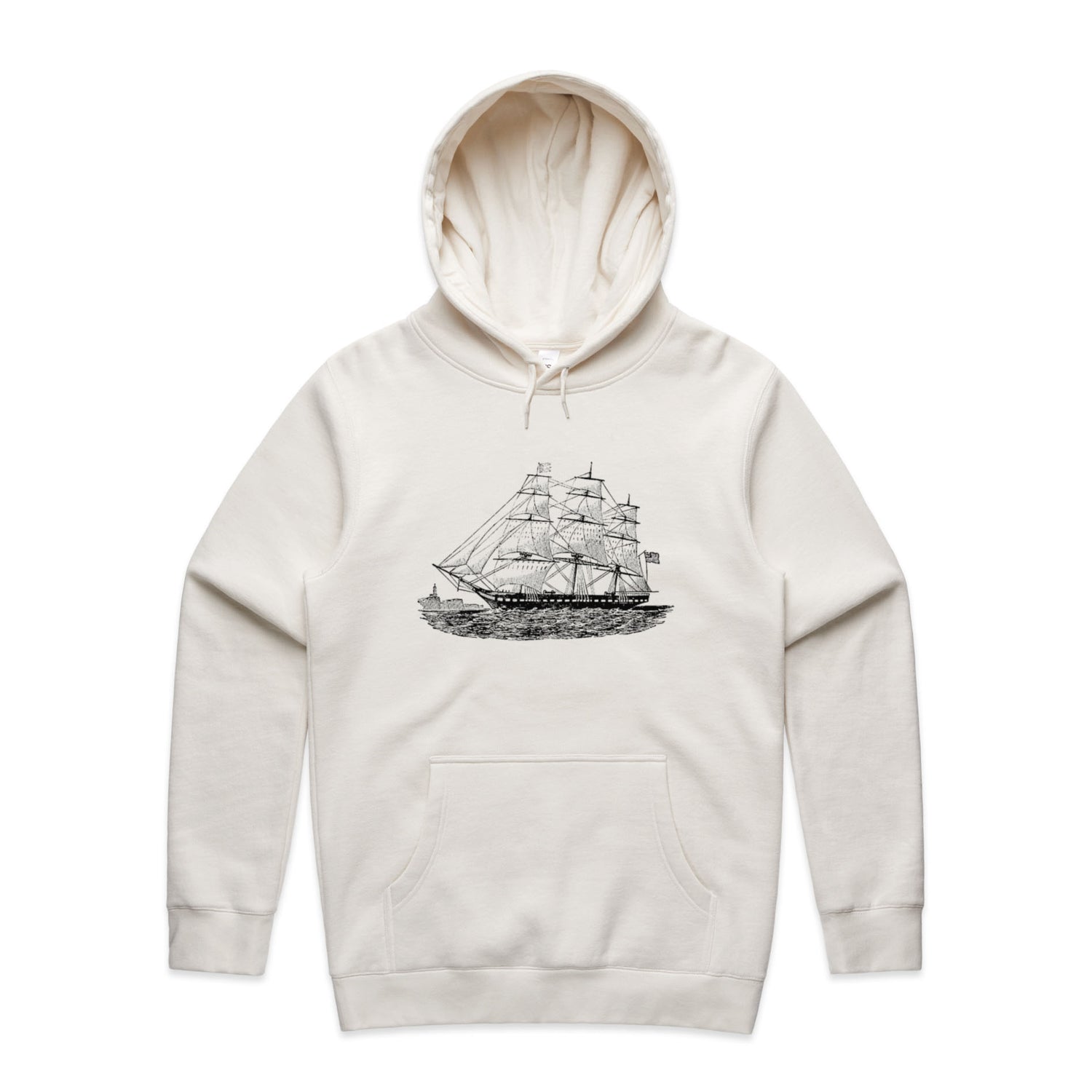 The ink colour on this masterpiece is sharp Black, boldly highlighting the historic ship print, ensuring you stand out in the sea of basic hoodies. Whether you're cruising around the city or just chilling with mates, this hoodie is designed for those who love a dash of nautical nostalgia and aren't afraid to rock it with edge and flair. Grab yours now and set sail in style!