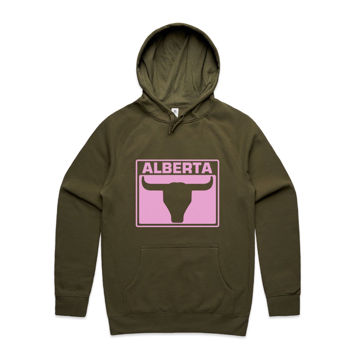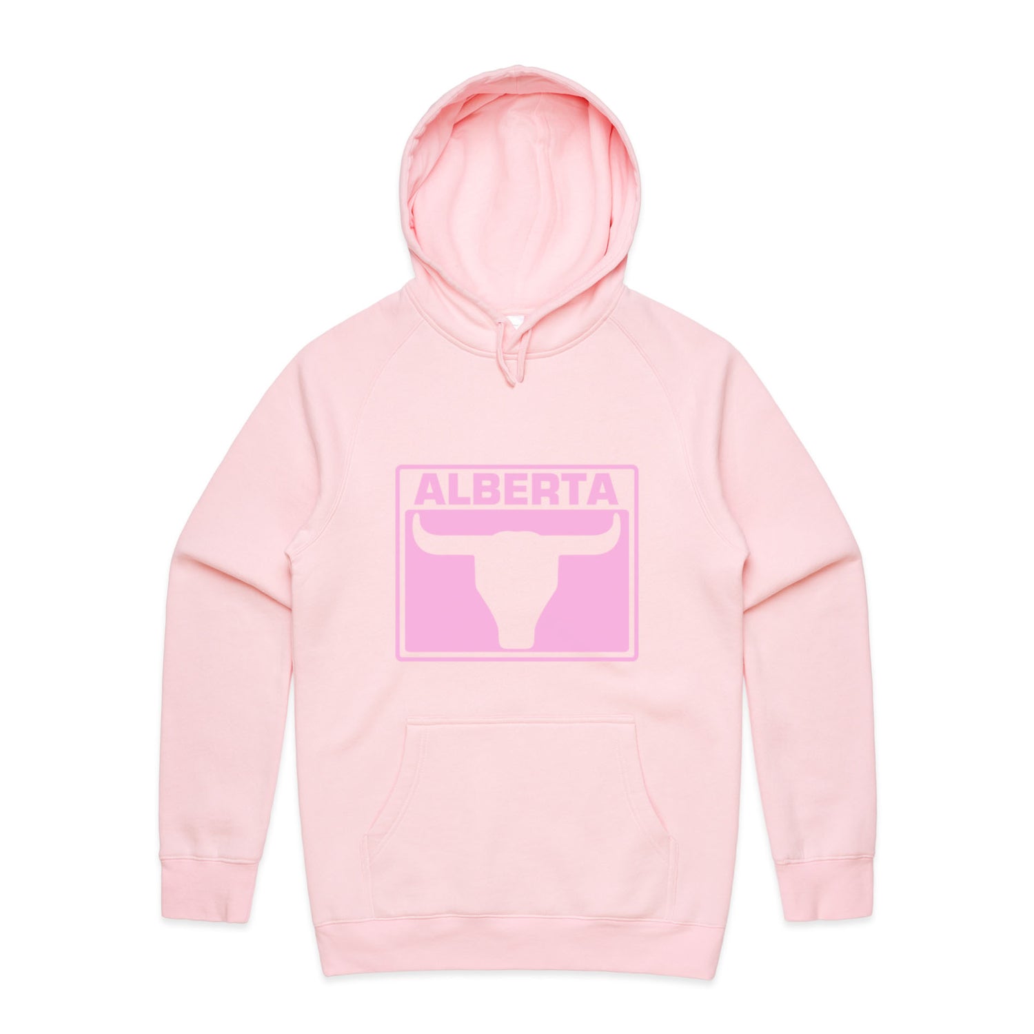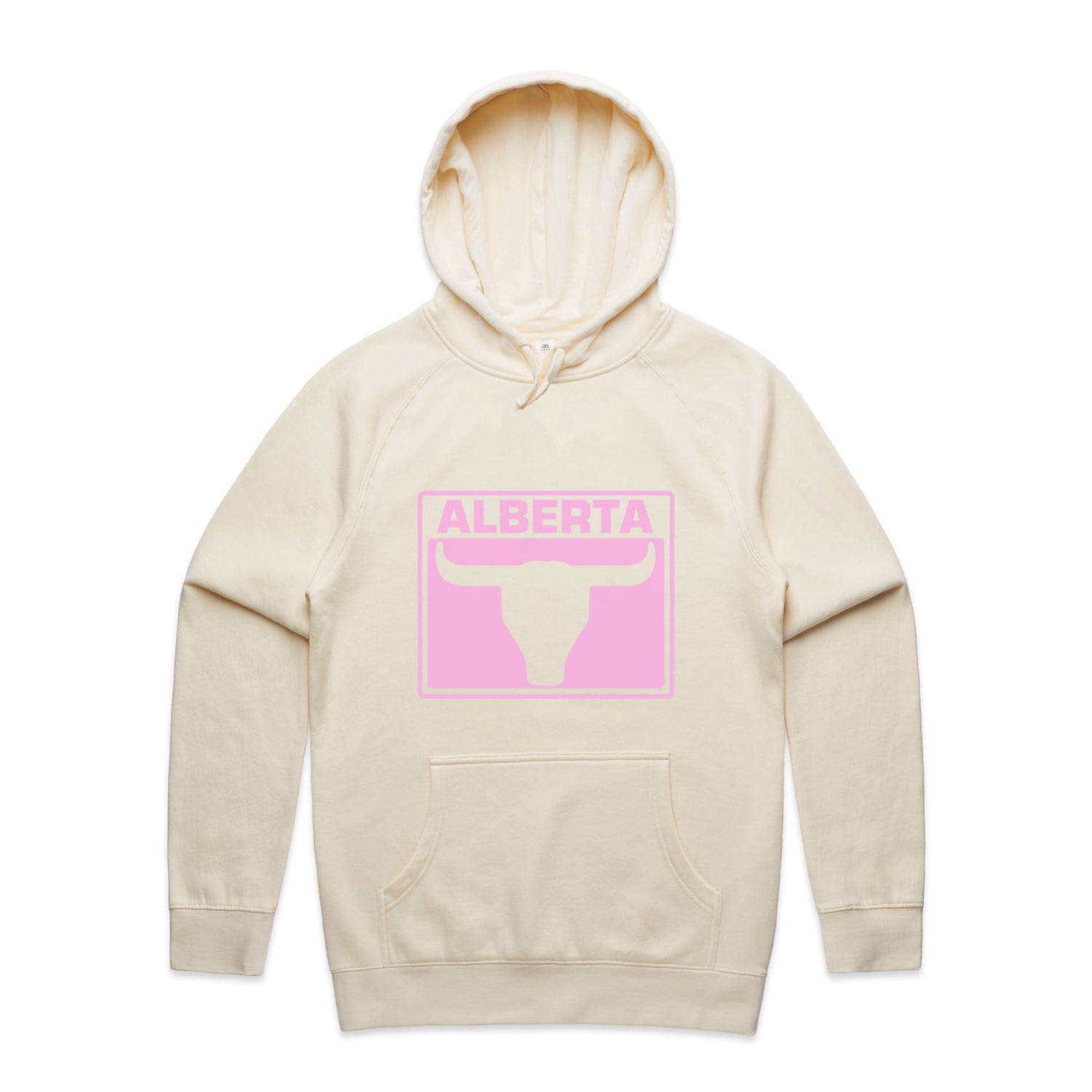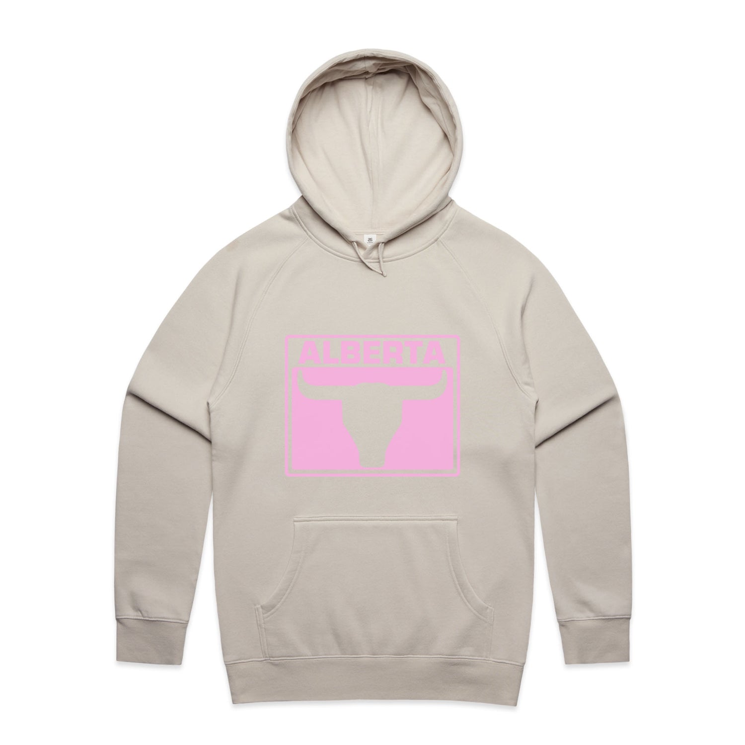 The Hoodies Alberta – Men's Hooded Sweatshirt is a high-quality men's hooded sweatshirt, printed with light pink ink on the trusted AS Colour Supply Hood 5101. With a regular fit and mid-weight feel, it's crafted from a premium blend of 80% cotton and 20% polyester anti-pill fleece, making it a durable and comfortable staple for any wardrobe. The pullover design features raglan sleeves, a lined hood with tonal drawcord, ribbed sleeve cuffs, and a roomy kangaroo pocket — all designed to keep you warm while looking effortlessly sharp.