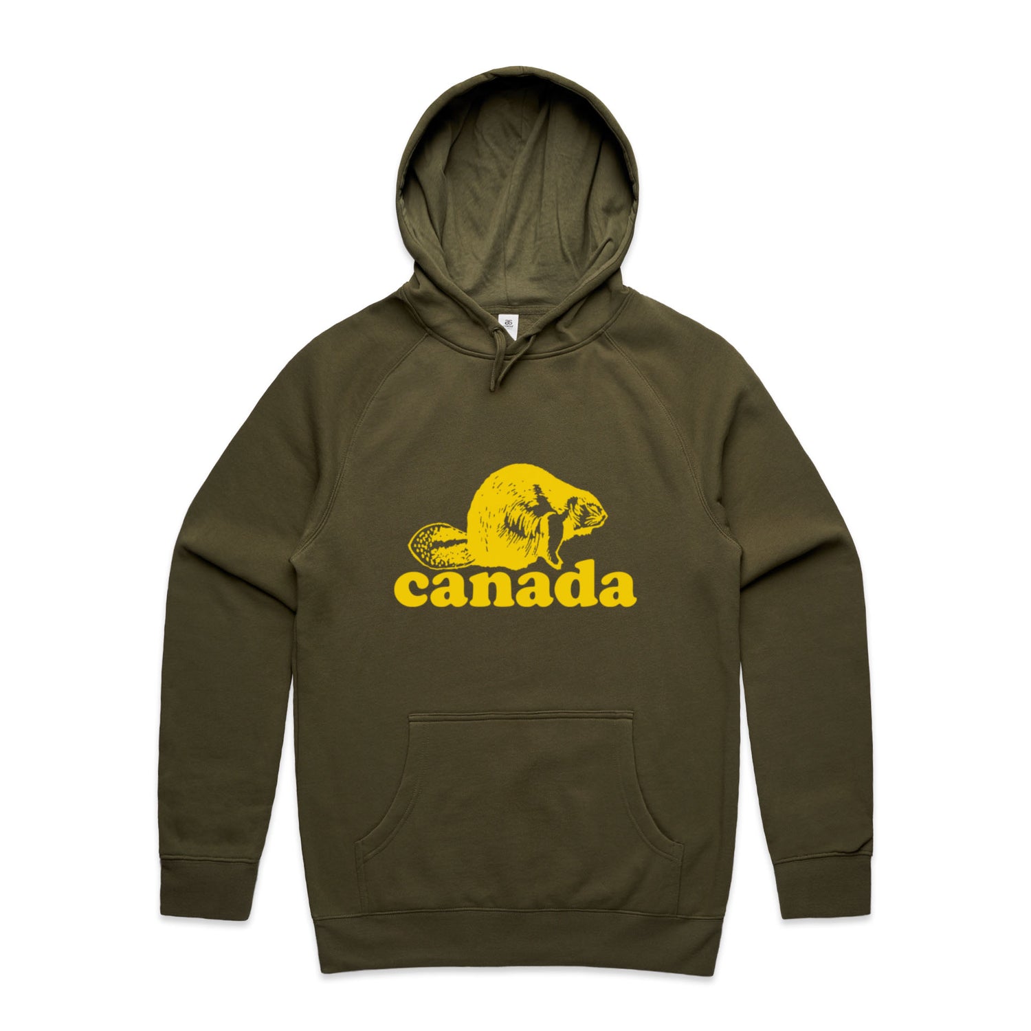 The Hoodies Canada – Men's Hooded Sweatshirt is a high-quality men's hooded sweatshirt, printed with yellow ink on the trusted AS Colour Supply Hood 5101. With a regular fit and mid-weight feel, it's crafted from a premium blend of 80% cotton and 20% polyester anti-pill fleece, making it a durable and comfortable staple for any wardrobe. The pullover design features raglan sleeves, a lined hood with tonal drawcord, ribbed sleeve cuffs, and a roomy kangaroo pocket — all designed to keep you warm while looking effortlessly sharp.