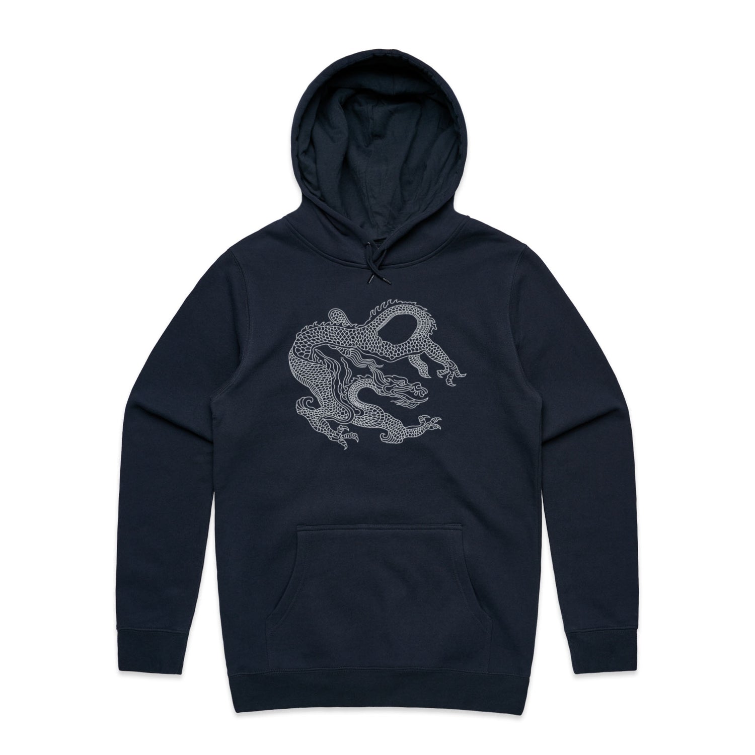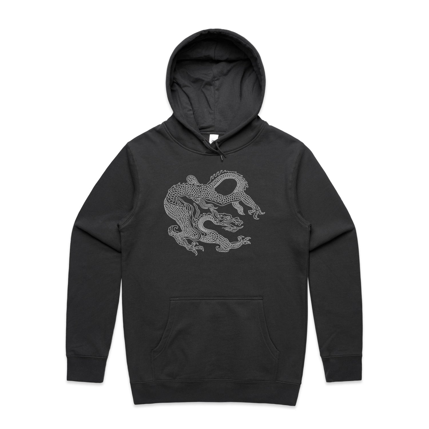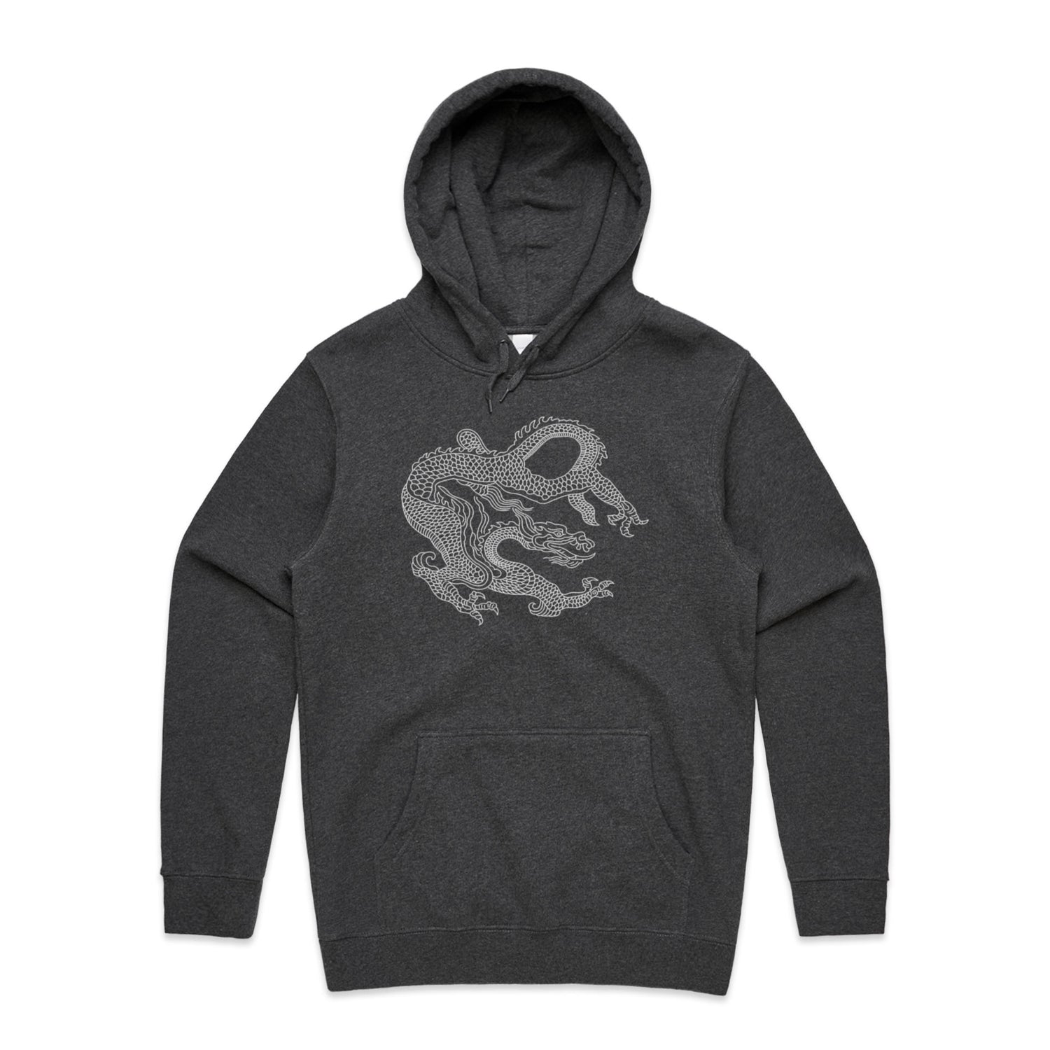 Adorned with a stunning dragon print in crisp white, it merges traditional heraldry with today's tattoo vibes, offering a striking look that screams confidence and creativity. Perfect for legends who want to keep it chill with a regular fit and classic pullover design, this hoodie comes with all the essential features: a kangaroo pocket for stashing snacks or your phone, a lined hood for that extra snug factor, and tonal drawcords for an understated touch.