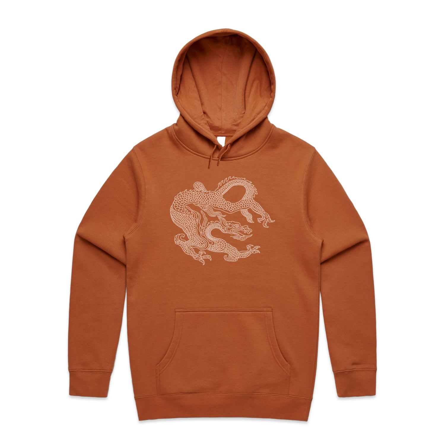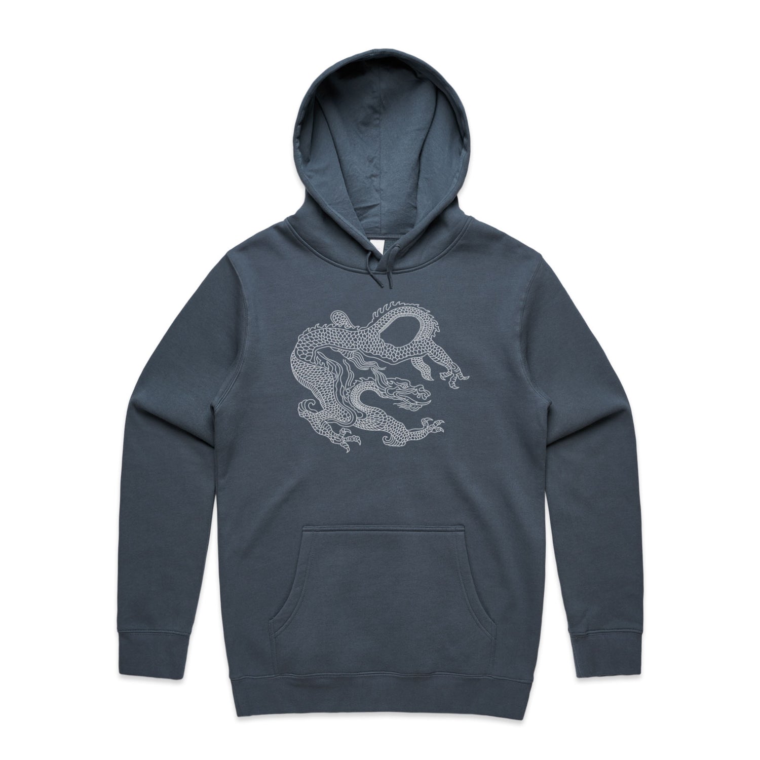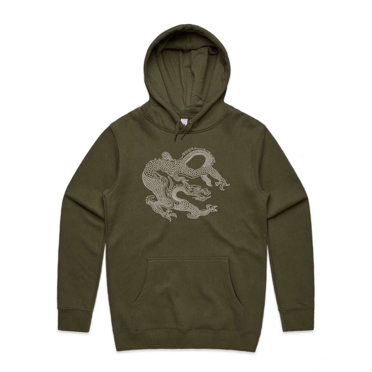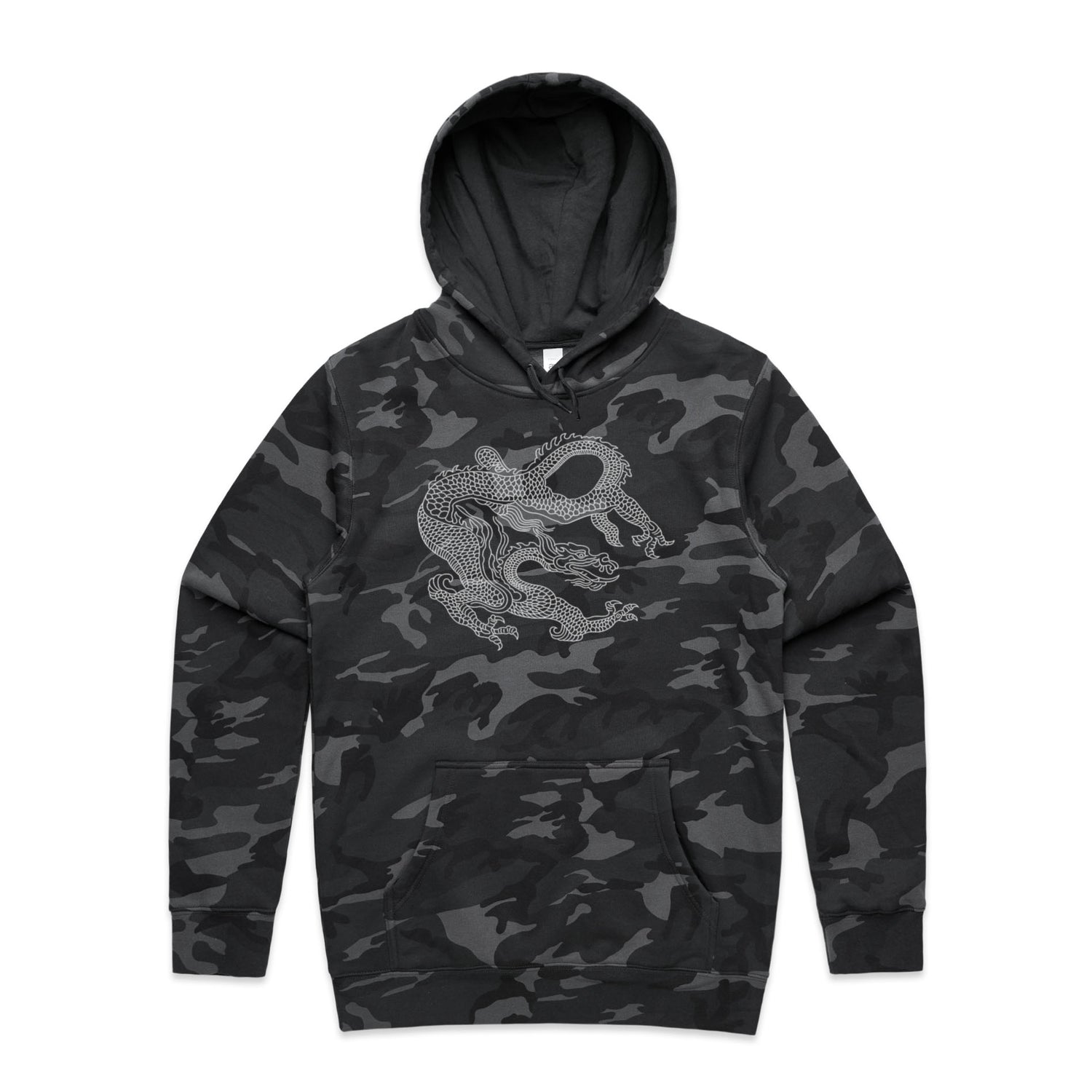 Adorned with a stunning dragon print in crisp white, it merges traditional heraldry with today's tattoo vibes, offering a striking look that screams confidence and creativity. Perfect for legends who want to keep it chill with a regular fit and classic pullover design, this hoodie comes with all the essential features: a kangaroo pocket for stashing snacks or your phone, a lined hood for that extra snug factor, and tonal drawcords for an understated touch.