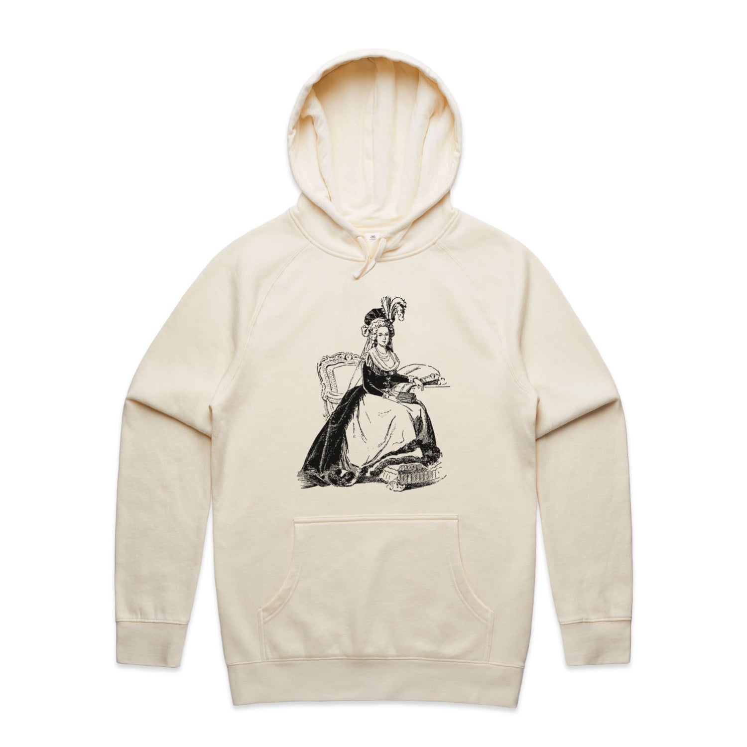 The Hoodies Marie Antoinette – Men's Hooded Sweatshirt is a high-quality men's hooded sweatshirt, printed with black ink on the trusted AS Colour Supply Hood 5101. With a regular fit and mid-weight feel, it's crafted from a premium blend of 80% cotton and 20% polyester anti-pill fleece, making it a durable and comfortable staple for any wardrobe. The pullover design features raglan sleeves, a lined hood with tonal drawcord, ribbed sleeve cuffs, and a roomy kangaroo pocket — all designed to keep you warm while looking effortlessly sharp.