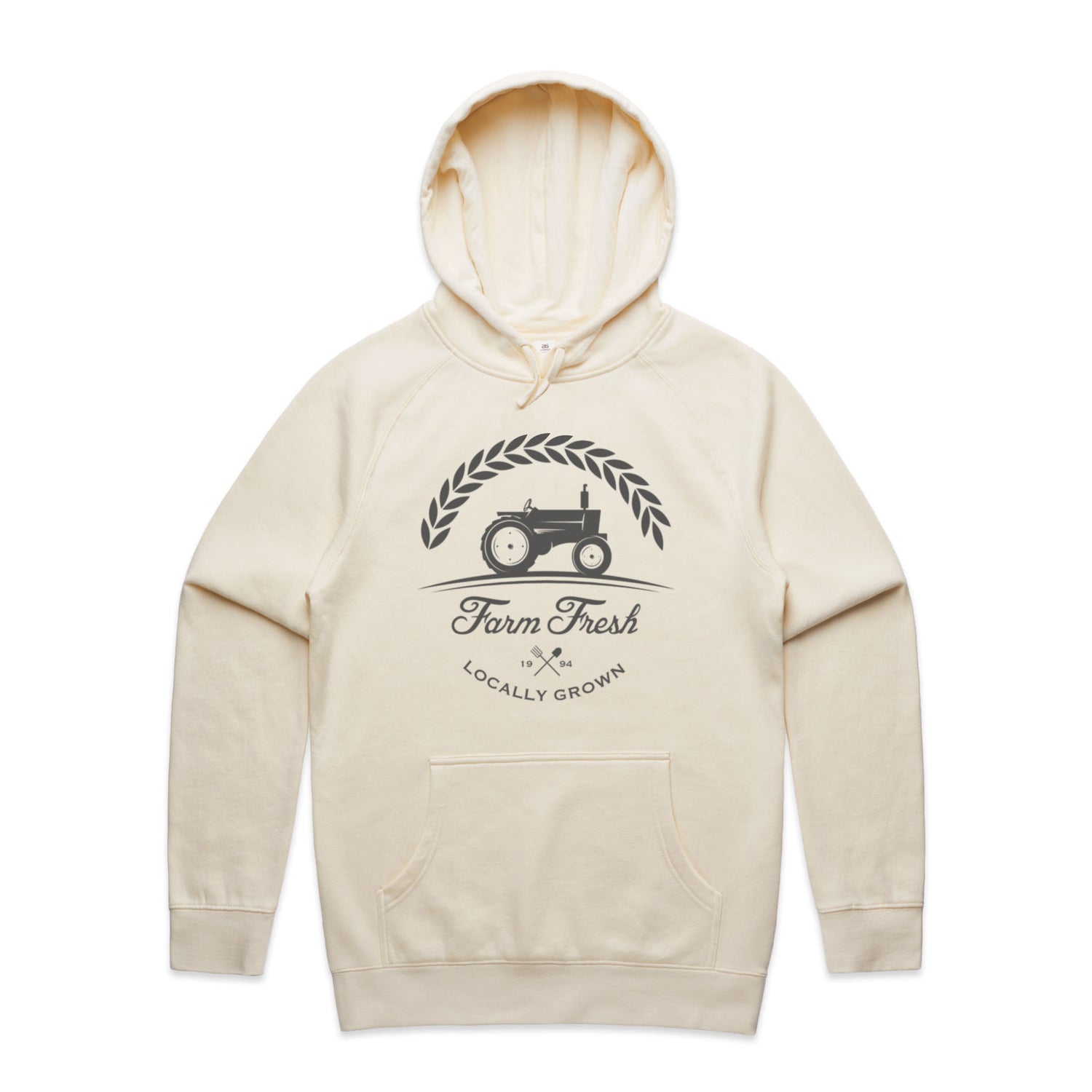 The Hoodies Farm Fresh – Men's Hooded Sweatshirt is a high-quality men's hooded sweatshirt, printed with grey ink on the trusted AS Colour Supply Hood 5101. With a regular fit and mid-weight feel, it's crafted from a premium blend of 80% cotton and 20% polyester anti-pill fleece, making it a durable and comfortable staple for any wardrobe. The pullover design features raglan sleeves, a lined hood with tonal drawcord, ribbed sleeve cuffs, and a roomy kangaroo pocket — all designed to keep you warm while looking effortlessly sharp.