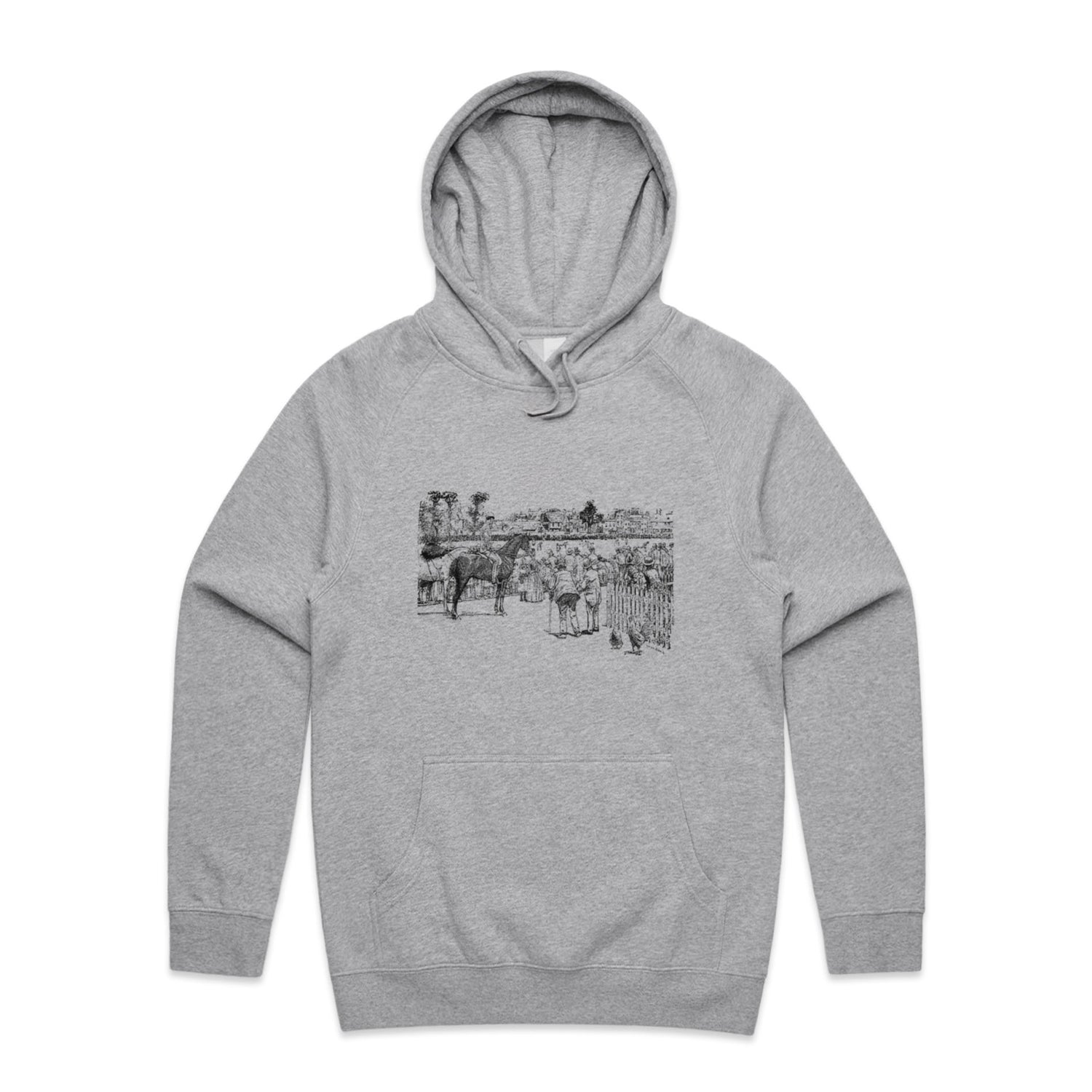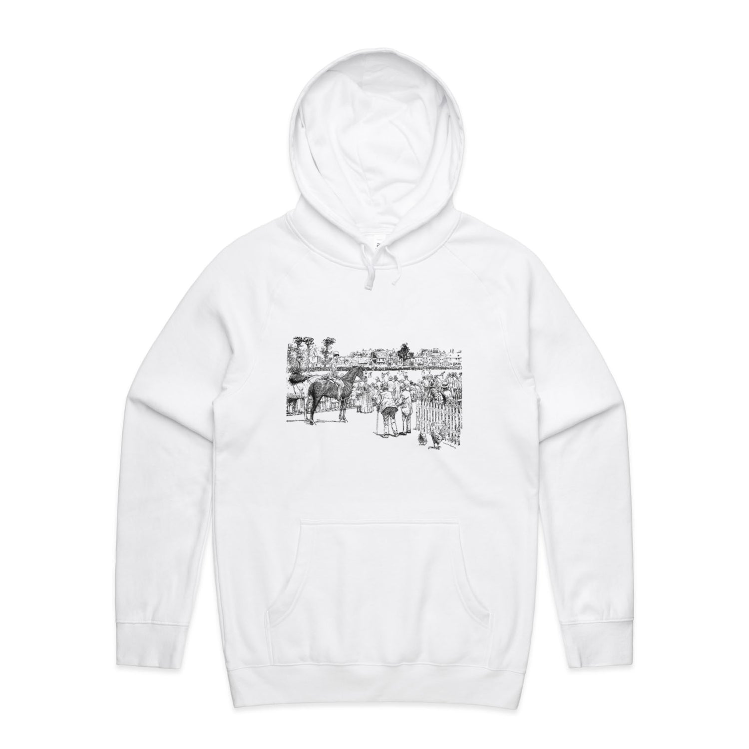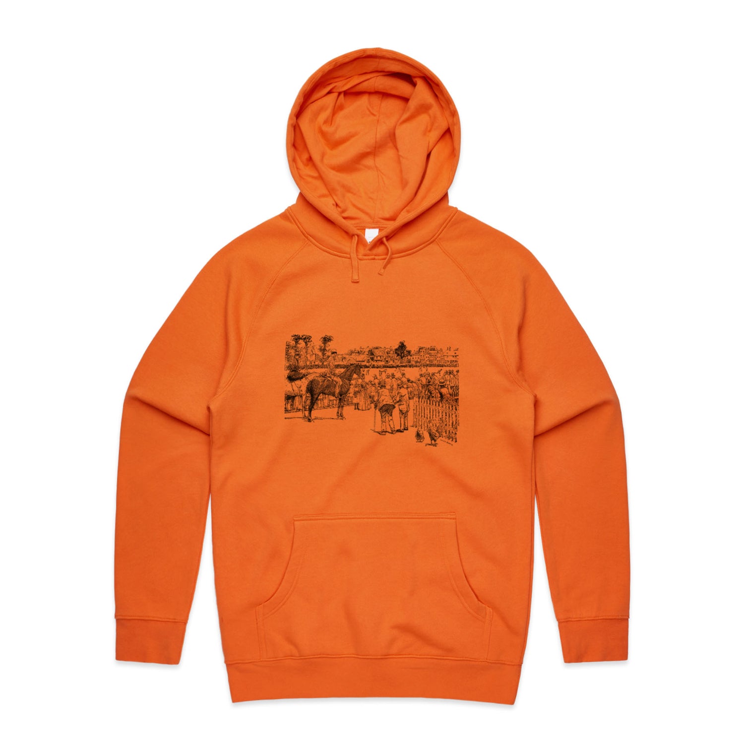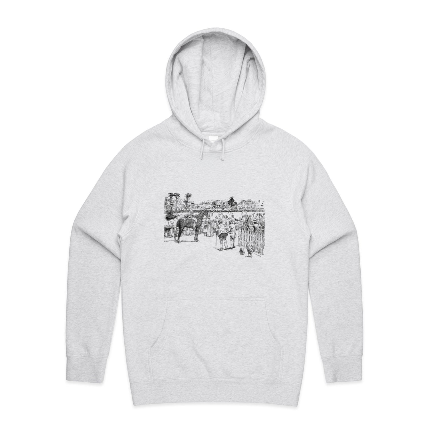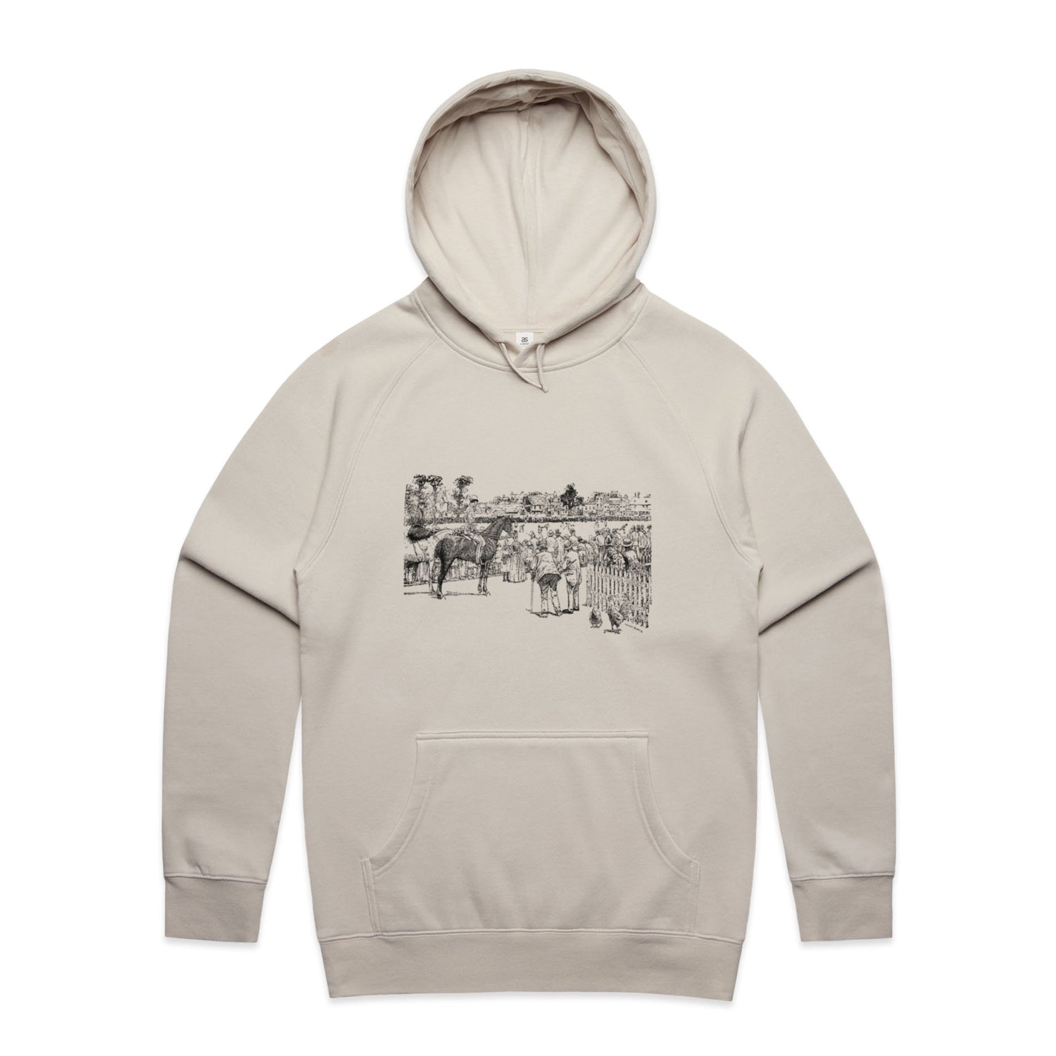 The Hoodies At the Horse Races – Men's Hooded Sweatshirt is a high-quality men's hooded sweatshirt, printed with black ink on the trusted AS Colour Supply Hood 5101. With a regular fit and mid-weight feel, it's crafted from a premium blend of 80% cotton and 20% polyester anti-pill fleece, making it a durable and comfortable staple for any wardrobe. The pullover design features raglan sleeves, a lined hood with tonal drawcord, ribbed sleeve cuffs, and a roomy kangaroo pocket — all designed to keep you warm while looking effortlessly sharp.