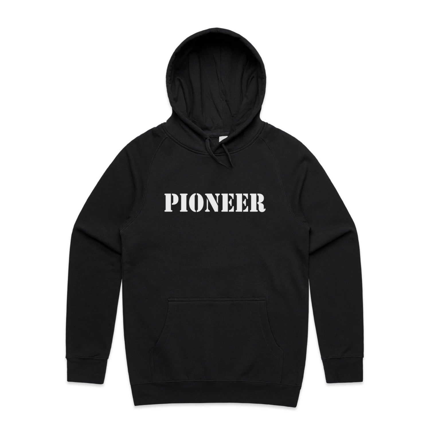 The Hoodies PIONEER Stencil – Men's Hooded Sweatshirt is a high-quality men's hooded sweatshirt, printed with white ink on the trusted AS Colour Supply Hood 5101. With a regular fit and mid-weight feel, it's crafted from a premium blend of 80% cotton and 20% polyester anti-pill fleece, making it a durable and comfortable staple for any wardrobe. The pullover design features raglan sleeves, a lined hood with tonal drawcord, ribbed sleeve cuffs, and a roomy kangaroo pocket — all designed to keep you warm while looking effortlessly sharp.