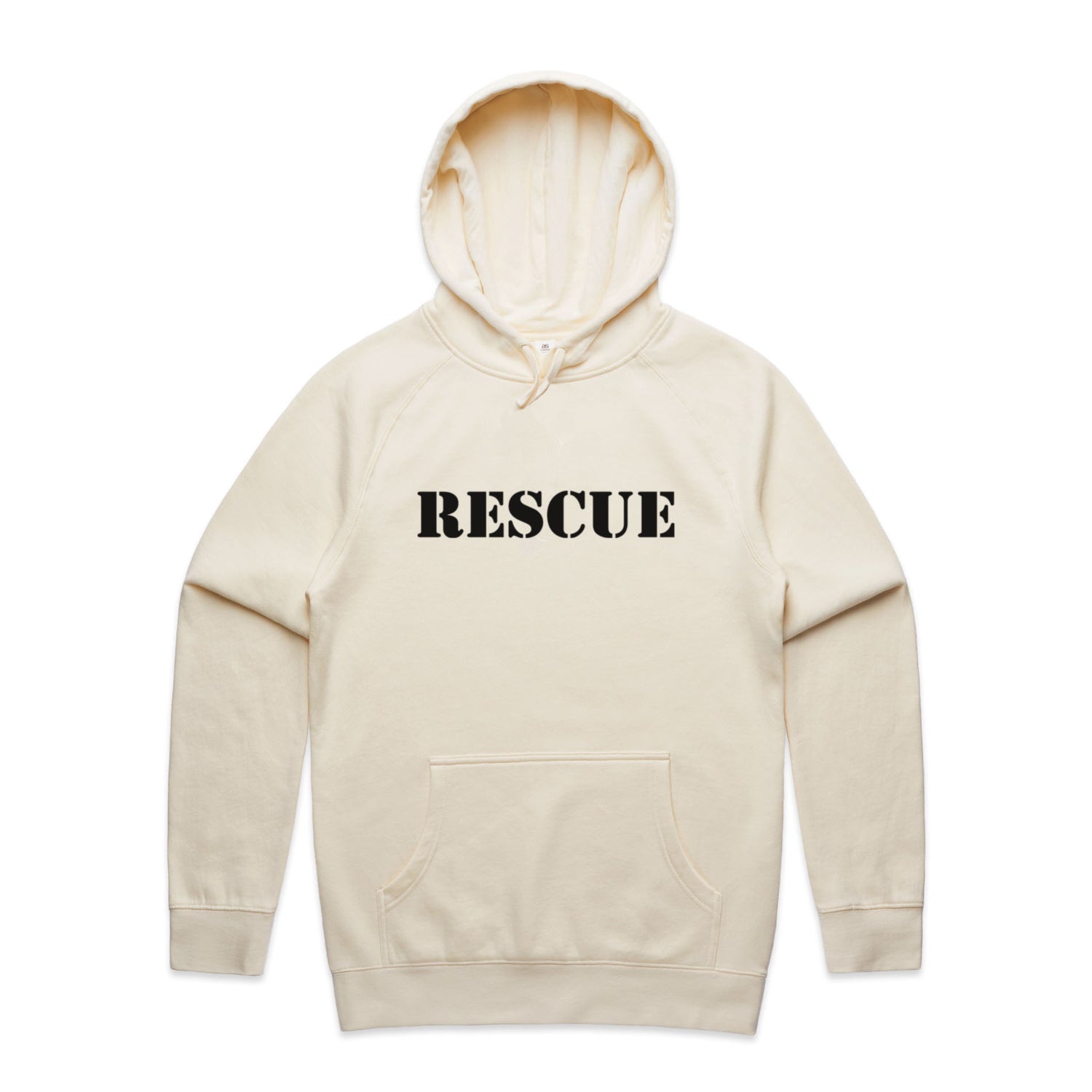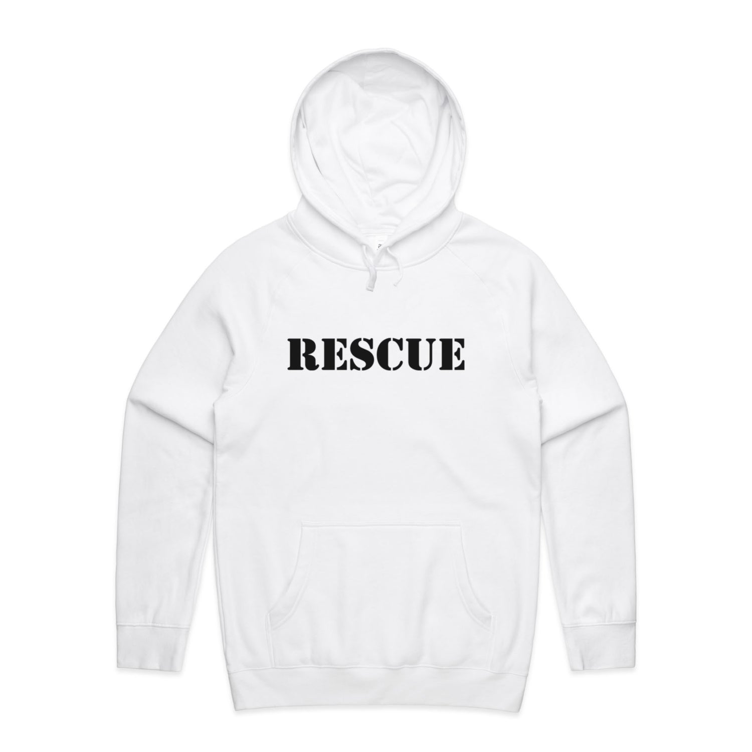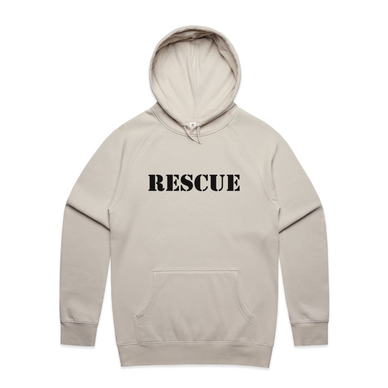 The Hoodies RESCUE Stencil – Men's Hooded Sweatshirt is a high-quality men's hooded sweatshirt, printed with black ink on the trusted AS Colour Supply Hood 5101. With a regular fit and mid-weight feel, it's crafted from a premium blend of 80% cotton and 20% polyester anti-pill fleece, making it a durable and comfortable staple for any wardrobe. The pullover design features raglan sleeves, a lined hood with tonal drawcord, ribbed sleeve cuffs, and a roomy kangaroo pocket — all designed to keep you warm while looking effortlessly sharp.