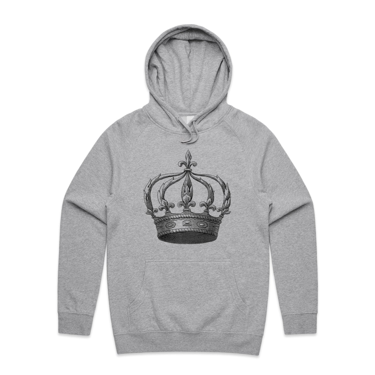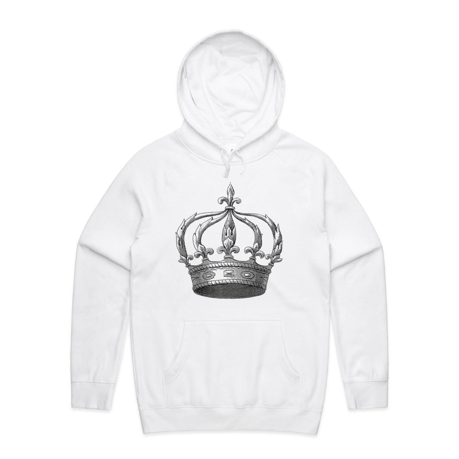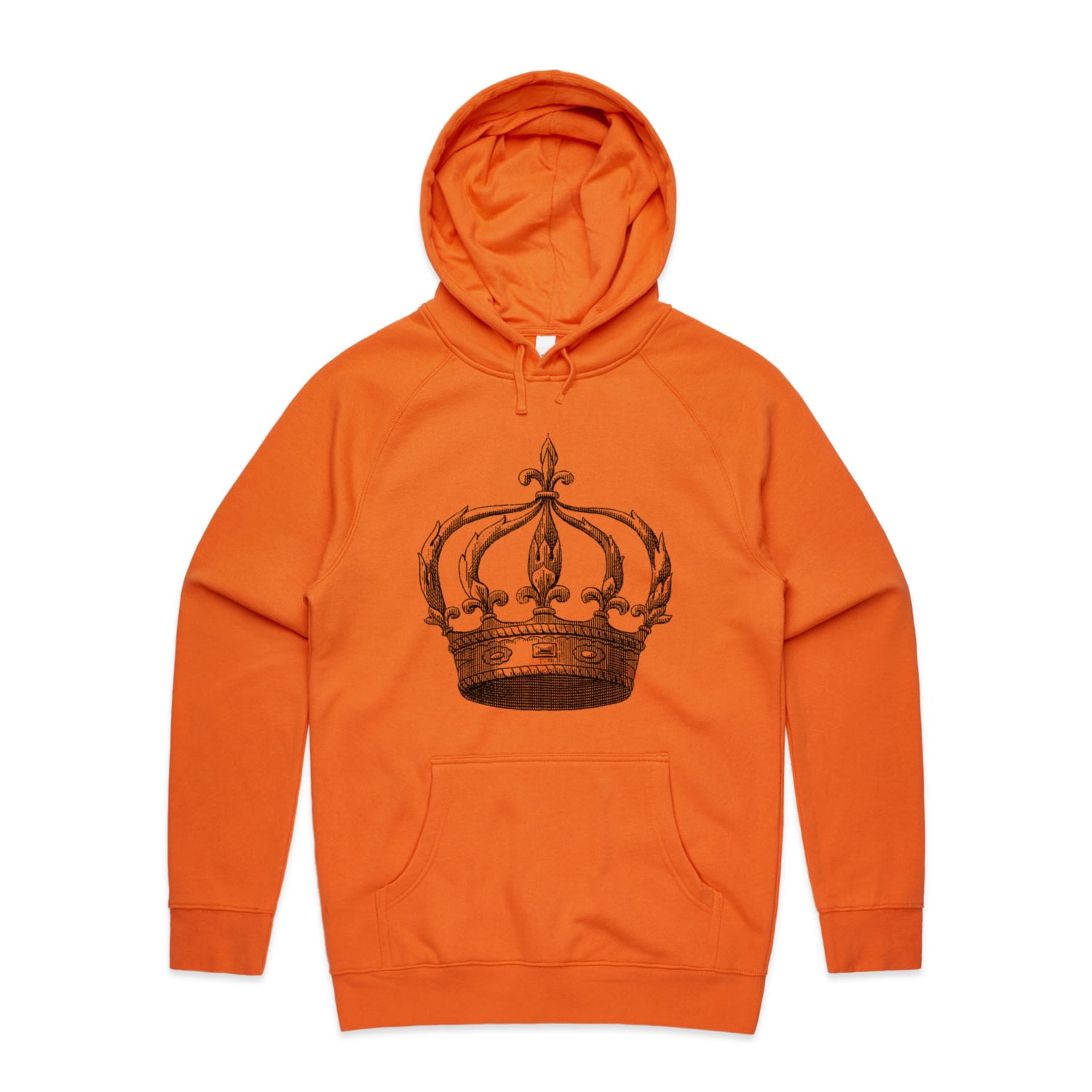 The Hoodies Kings Crown – Men's Hooded Sweatshirt is a high-quality men's hooded sweatshirt, printed with black ink on the trusted AS Colour Supply Hood 5101. With a regular fit and mid-weight feel, it's crafted from a premium blend of 80% cotton and 20% polyester anti-pill fleece, making it a durable and comfortable staple for any wardrobe. The pullover design features raglan sleeves, a lined hood with tonal drawcord, ribbed sleeve cuffs, and a roomy kangaroo pocket — all designed to keep you warm while looking effortlessly sharp.