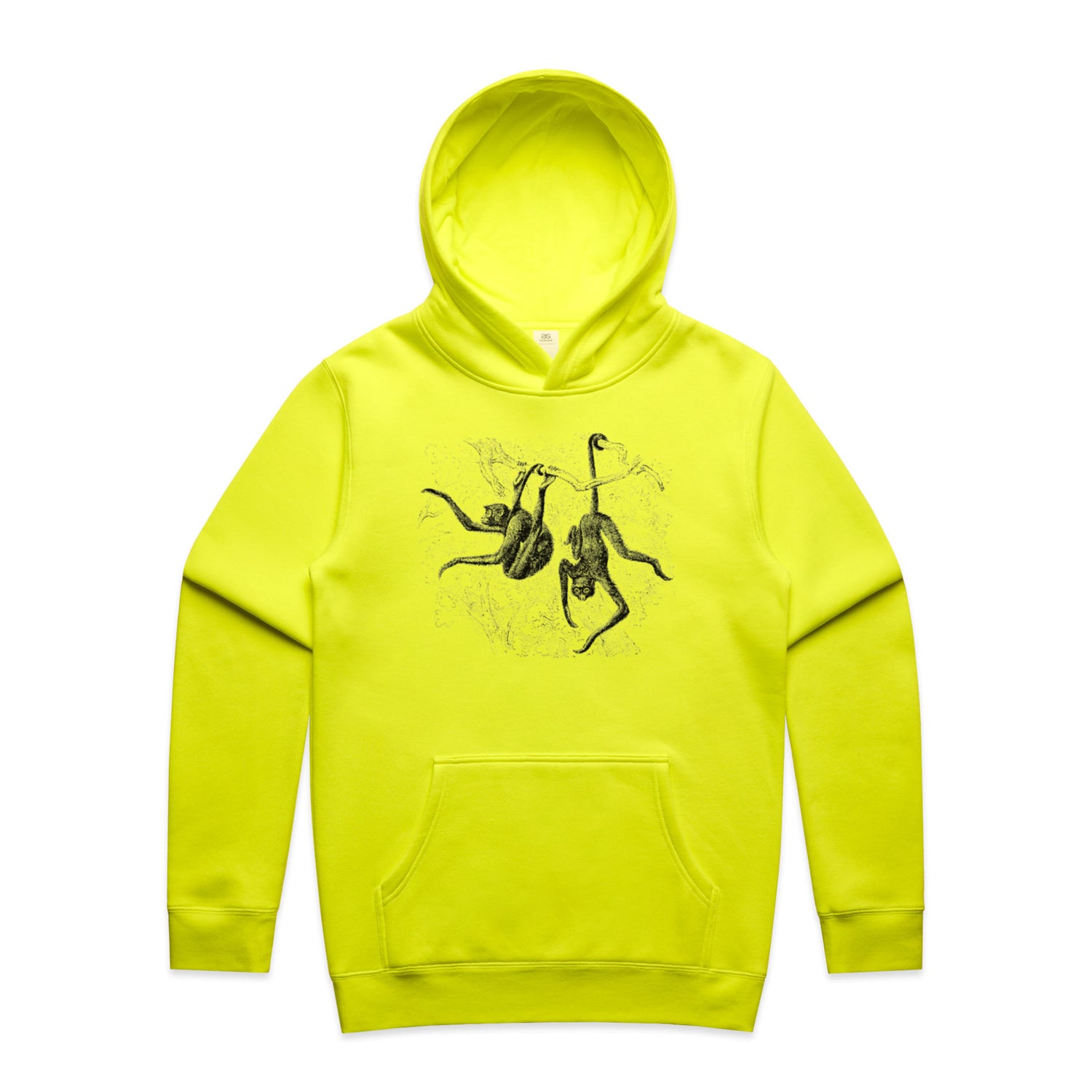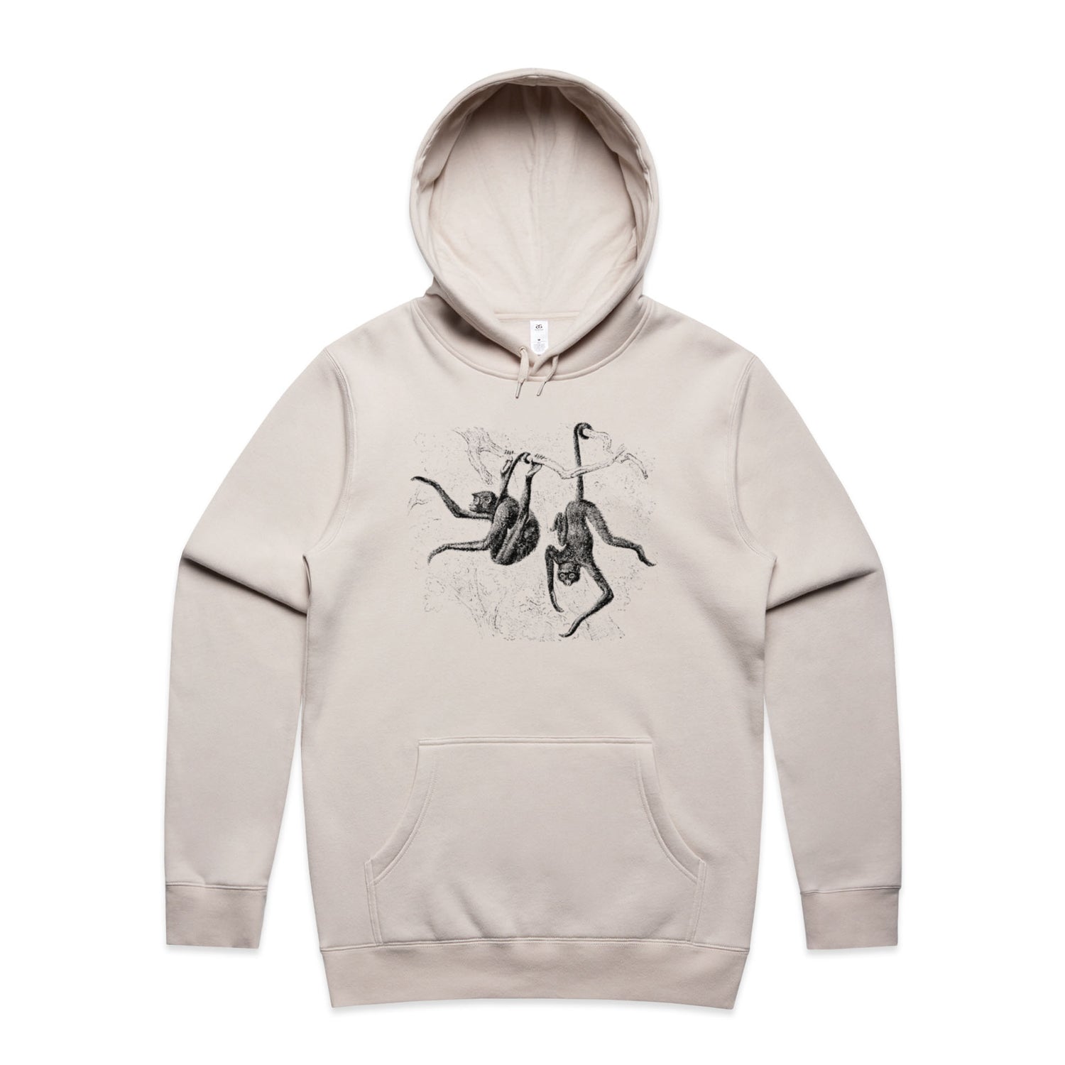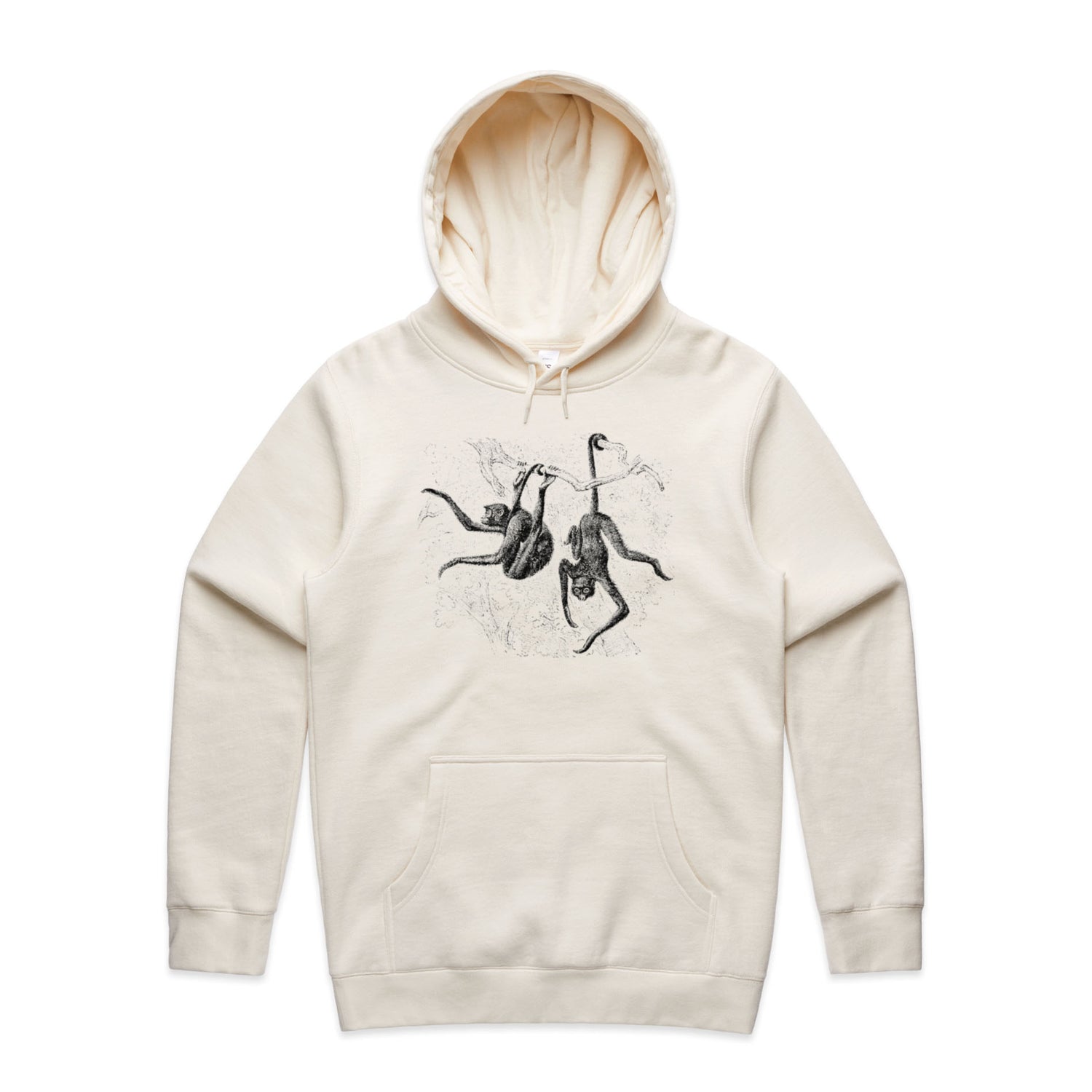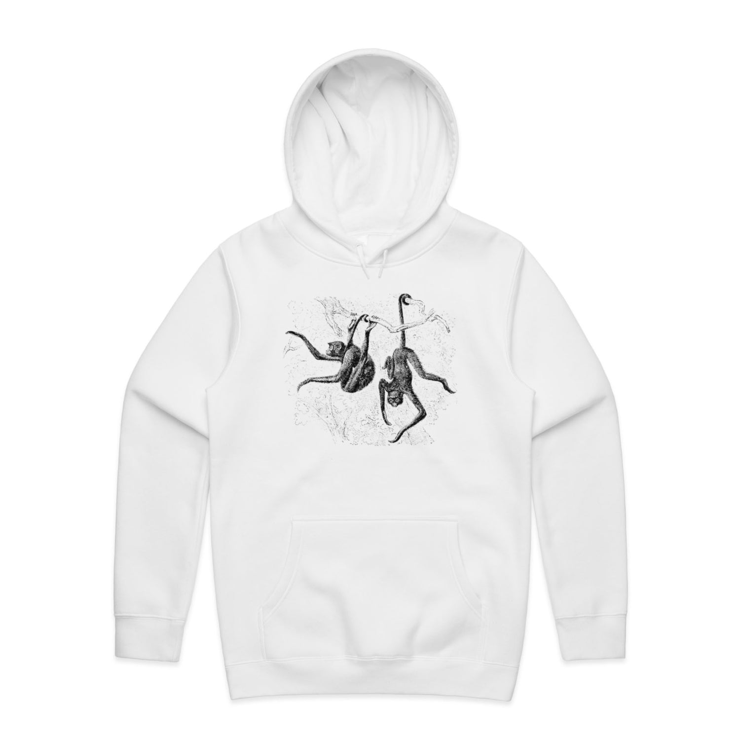 So, what are you waiting for? Chuck it on and let those playful monkeys do the talking! Perfect for animal lovers and anyone who appreciates a flashback to the retro days. The black ink design on the crisp hue serves the ultimate trendy look with a hint of nostalgia. Don't just follow the trends, be a part of them with your new favourite hoodie!
