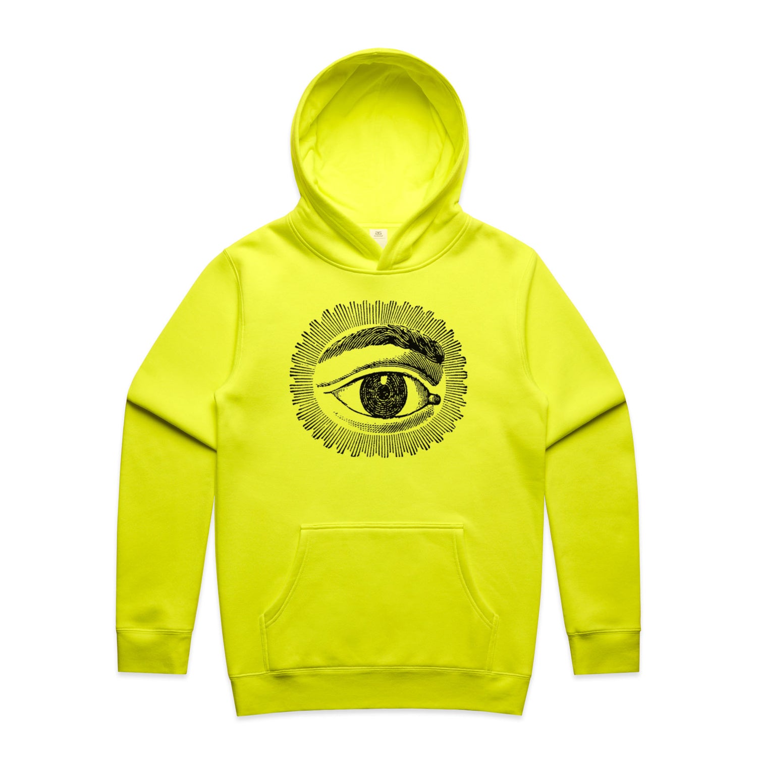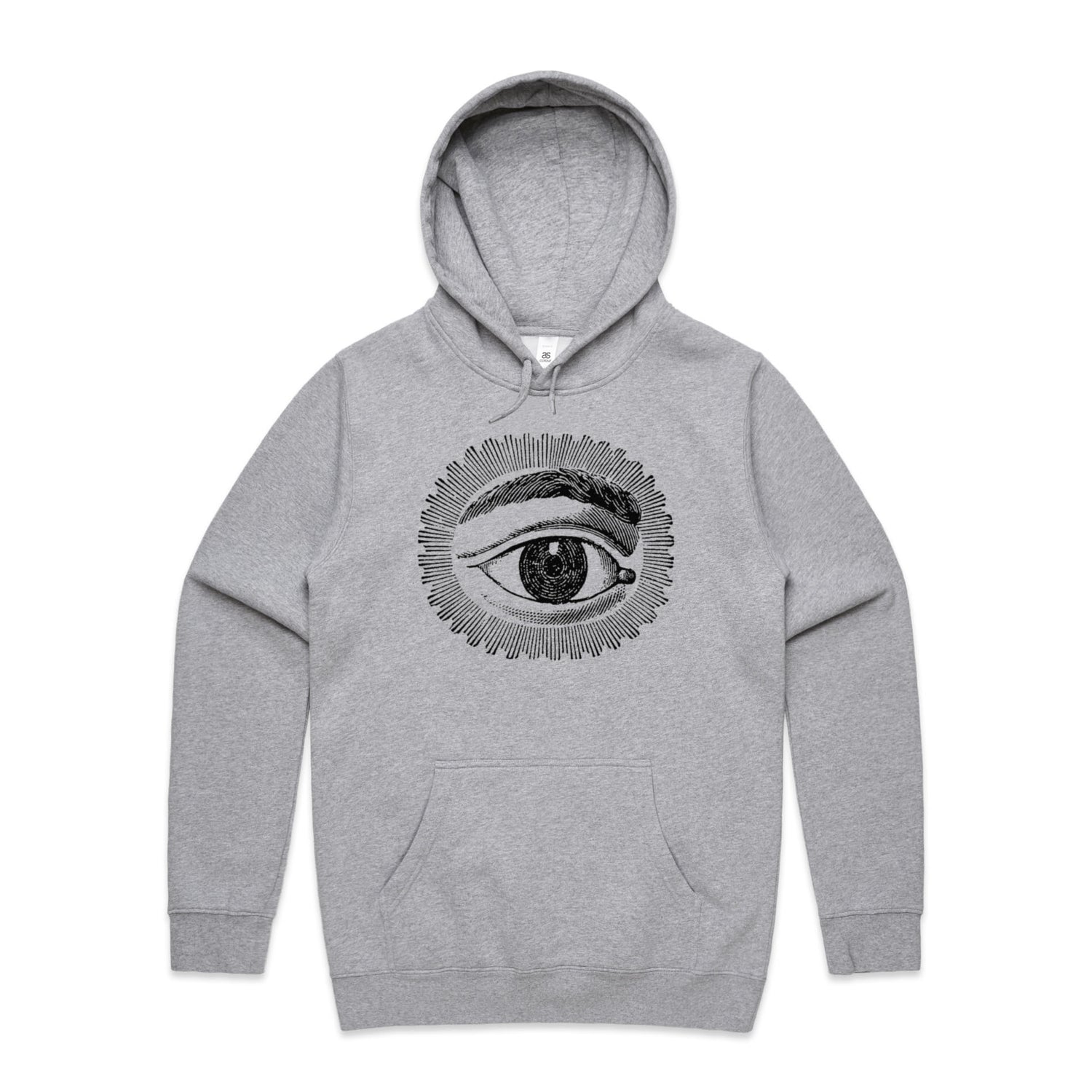 Turn heads and open minds with TheHoodie's All Seeing Eye Hooded Sweatshirt! This black beauty is not just a hoodie—it's your ticket to funky town! With its eye-catching print in sleek, mysterious black, you'll feel like the ultimate trendsetter. It's crafted from a snuggly cotton and recycled polyester blend, giving you that comfy, cosy feel, without compromising on eco-vibes.