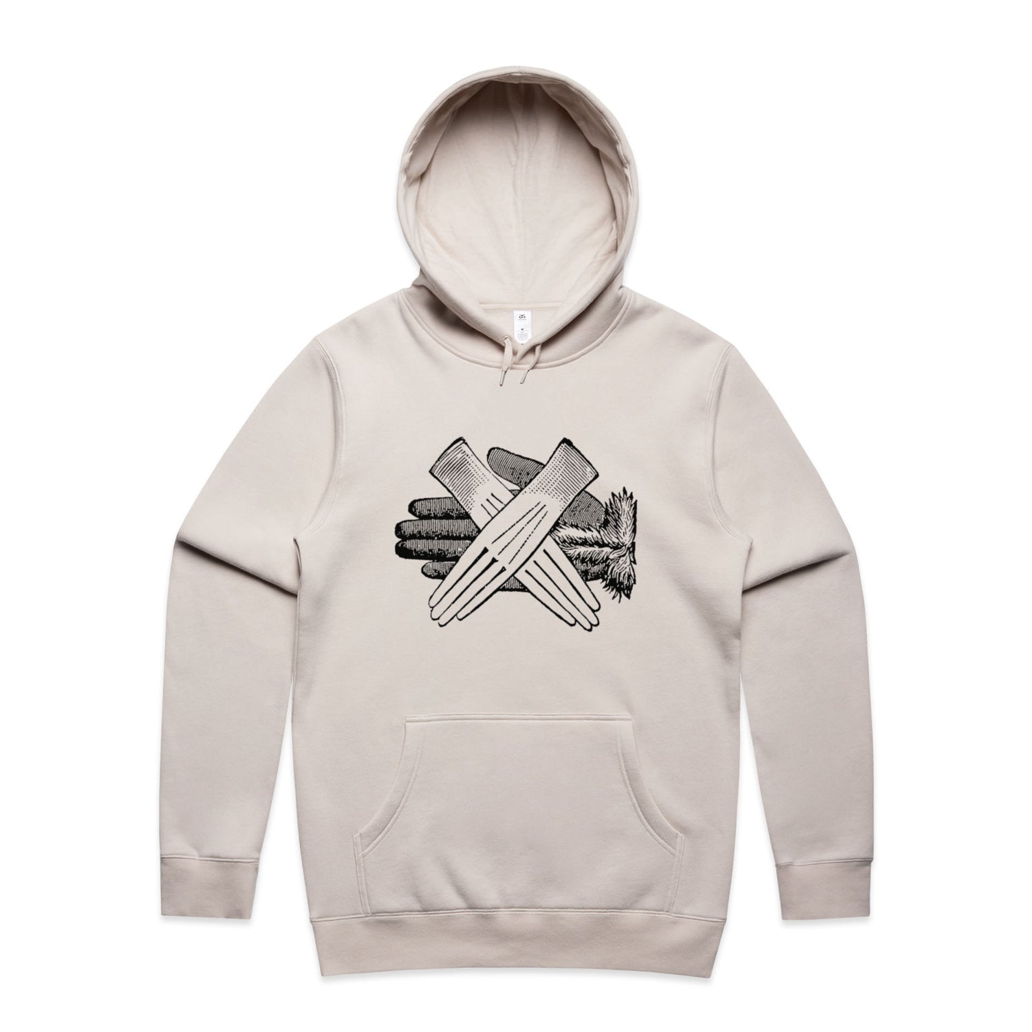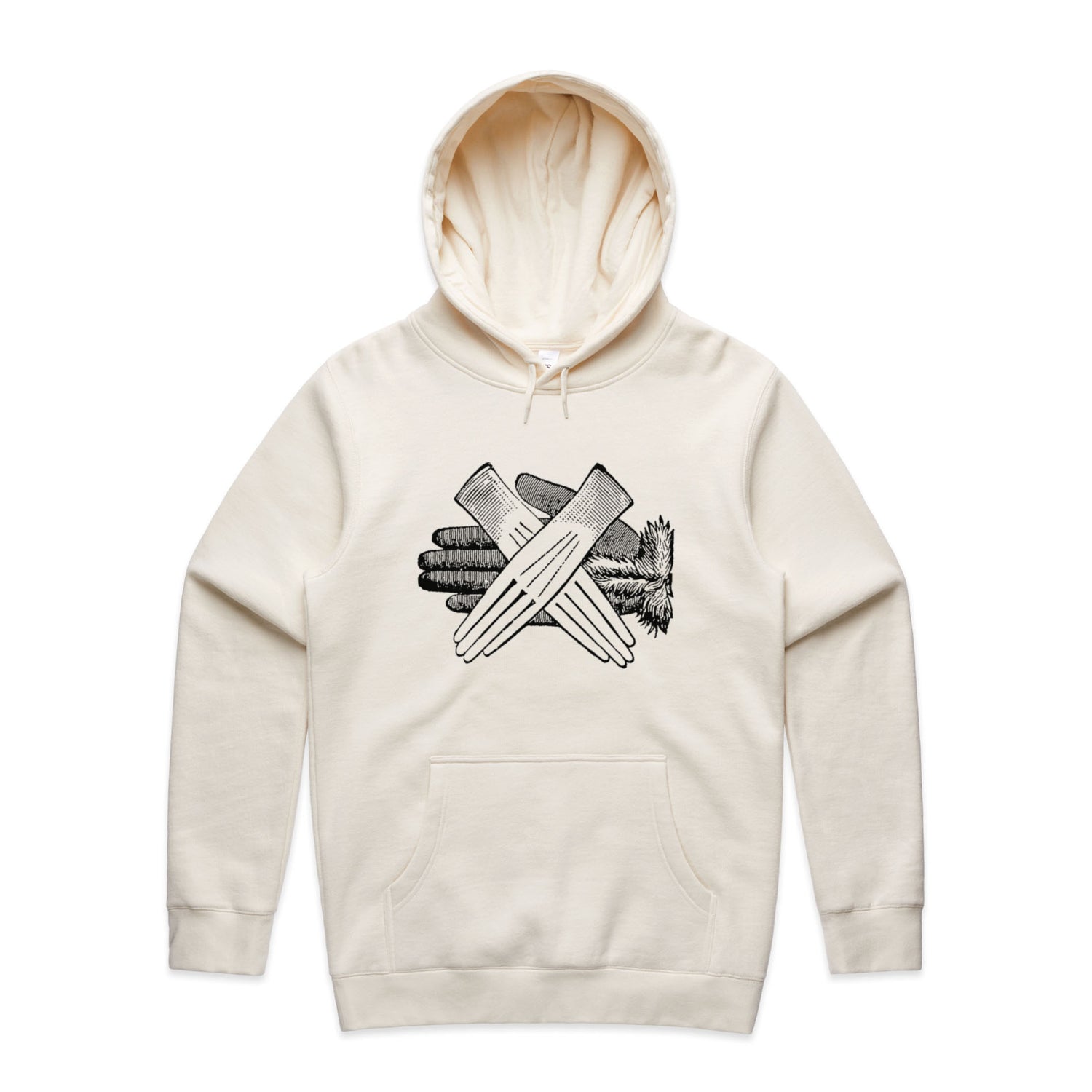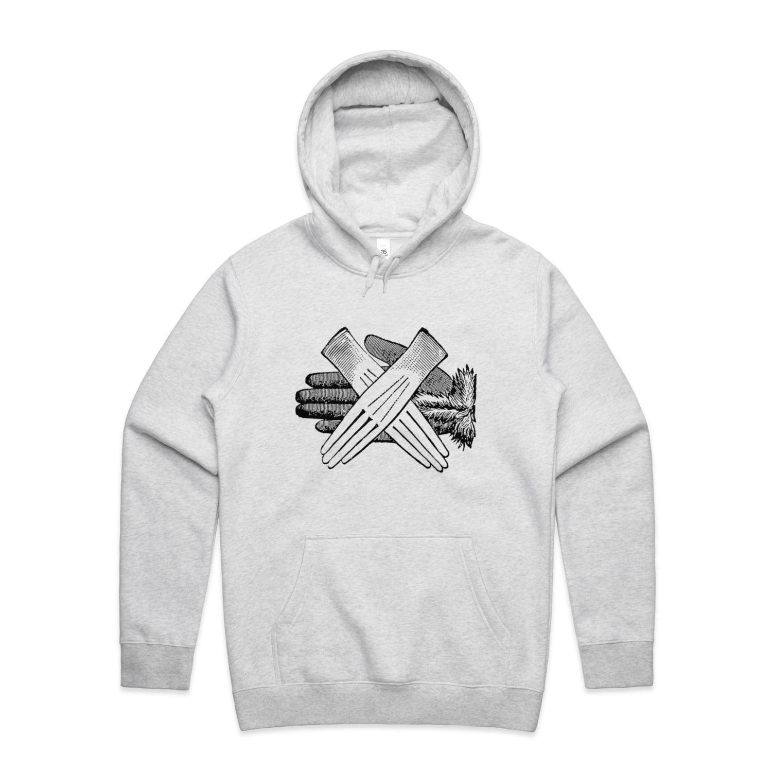Our Fancy Gloves design comes in a sleek black print that’ll have you looking schmick and stylish. It’s got all the cool features you love: a snug kangaroo pocket for stashing your goodies, a comfy pullover hood for when the weather gets cheeky, and spots for every doodad with those neat inset sleeves and ribbed cuffs. Plus, the tonal drawcord adds an extra touch of class, you fancy thing!