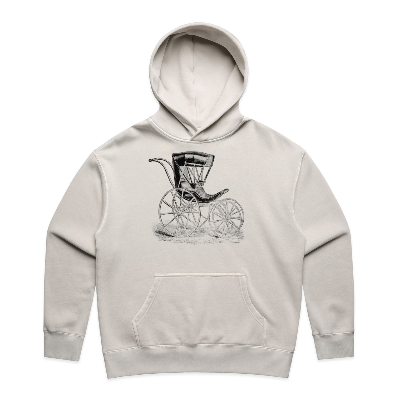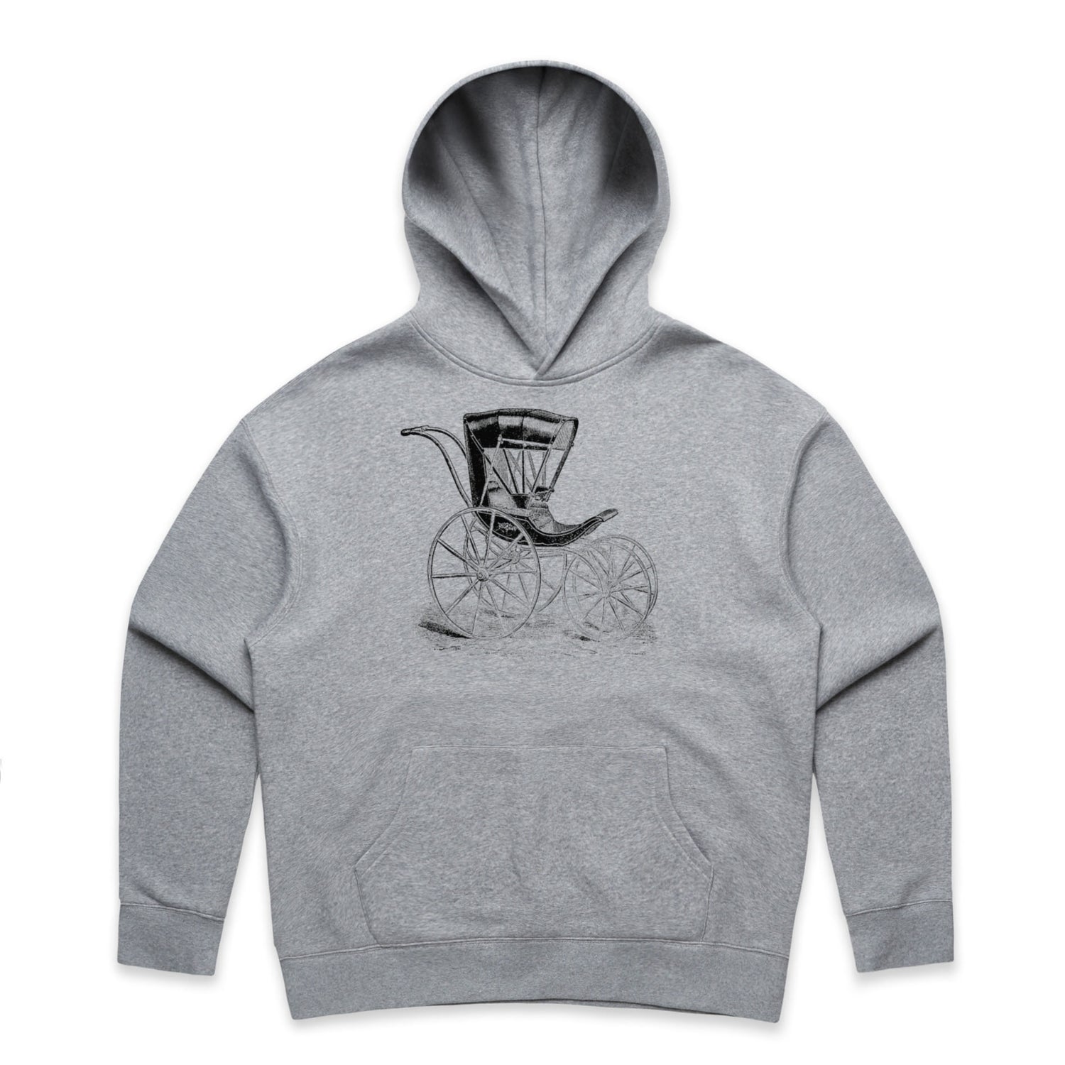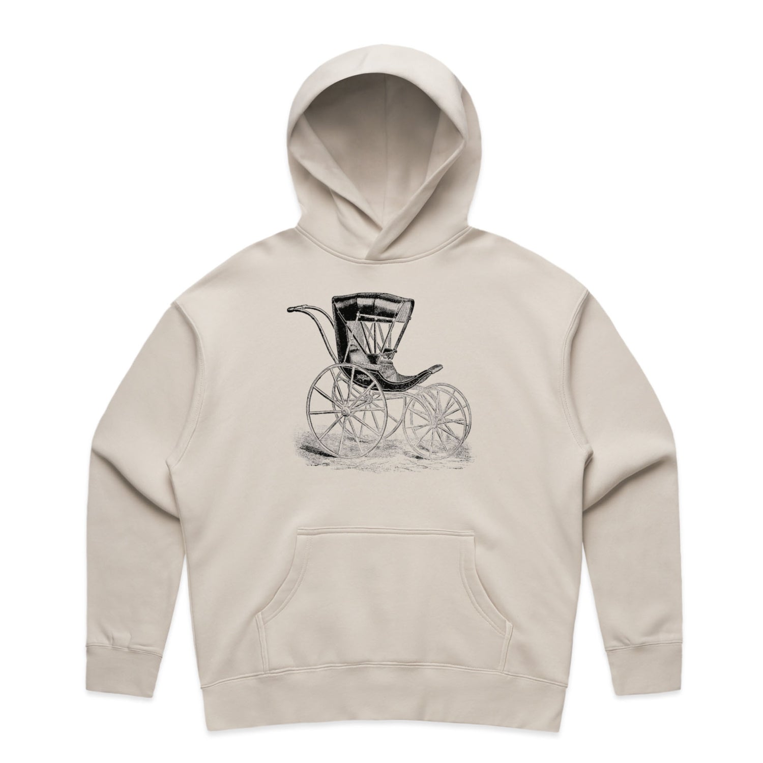 With a vintage baby stroller print in bold black, this hoodie screams retro chic. Its pullover hoodie style, drop shoulders, and kangaroo pocket keep things effortlessly cool while the self-fabric lined hood (minus those pesky drawcords) and sleek ribbed sleeve cuffs add that extra bit of finesse. Plus, the tear-out label means zero itchiness and maximum comfort.