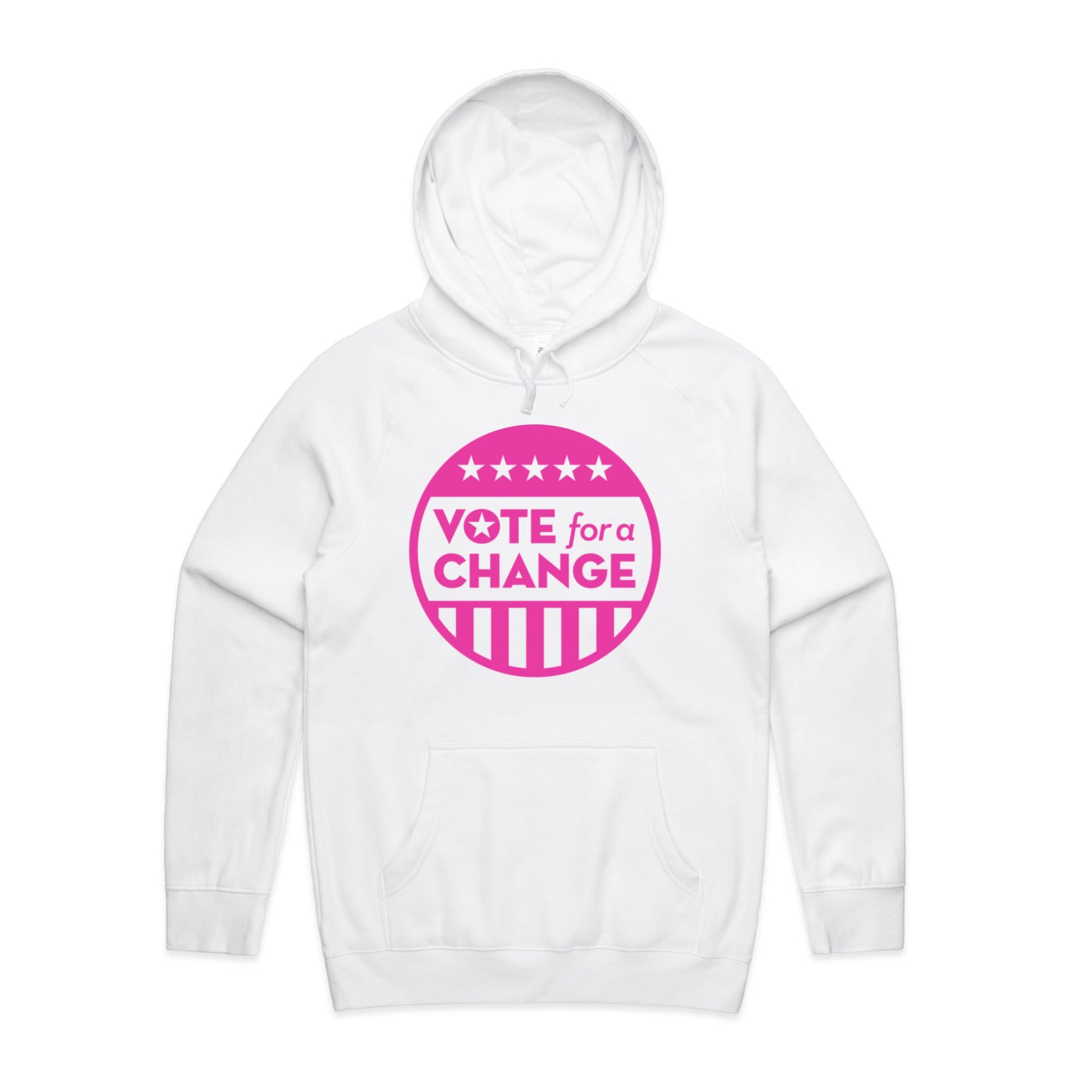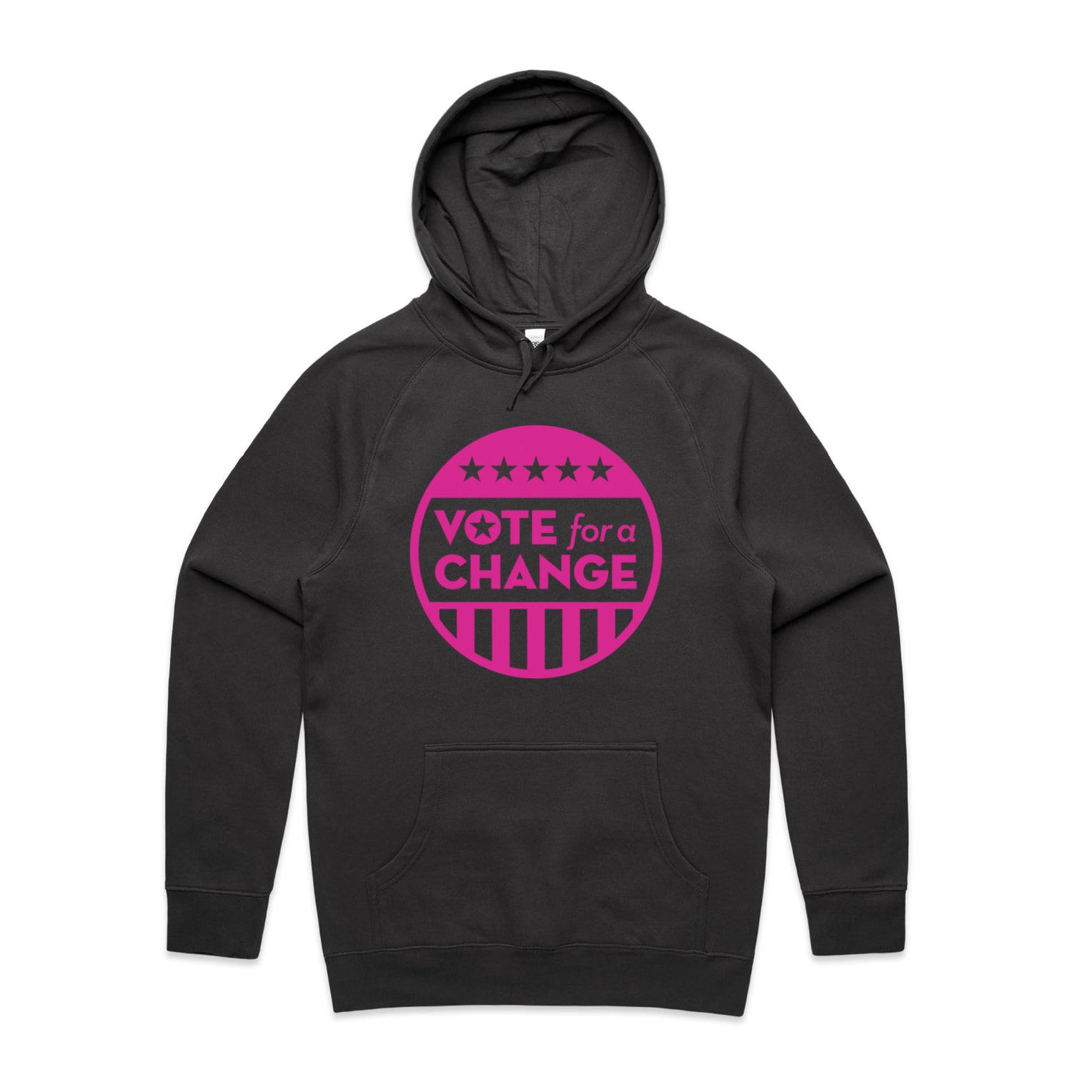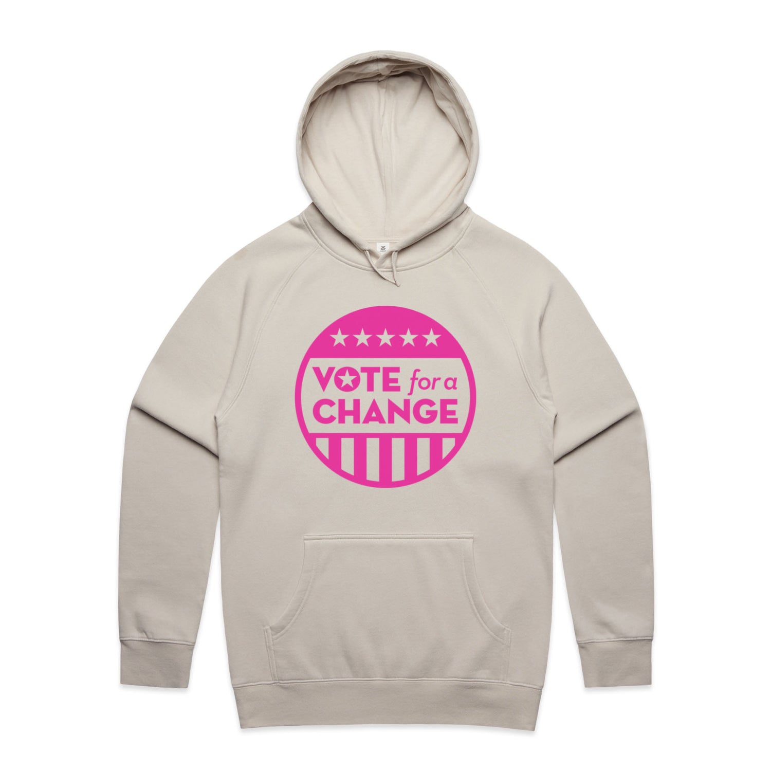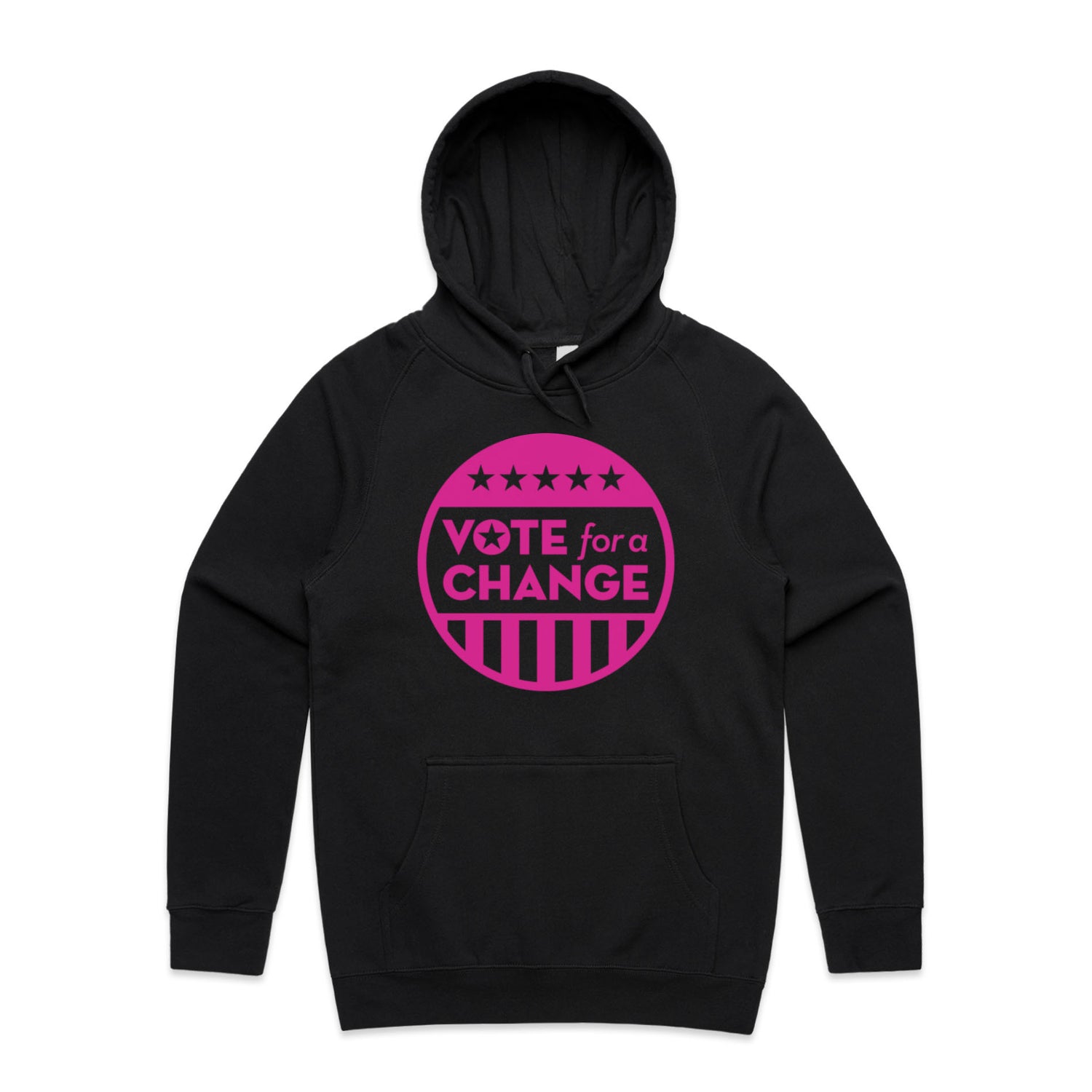 The Hoodies Vote for a Change – Men's Hooded Sweatshirt is a high-quality men's hooded sweatshirt, printed with fuchsia ink on the trusted AS Colour Supply Hood 5101. With a regular fit and mid-weight feel, it's crafted from a premium blend of 80% cotton and 20% polyester anti-pill fleece, making it a durable and comfortable staple for any wardrobe. The pullover design features raglan sleeves, a lined hood with tonal drawcord, ribbed sleeve cuffs, and a roomy kangaroo pocket — all designed to keep you warm while looking effortlessly sharp.