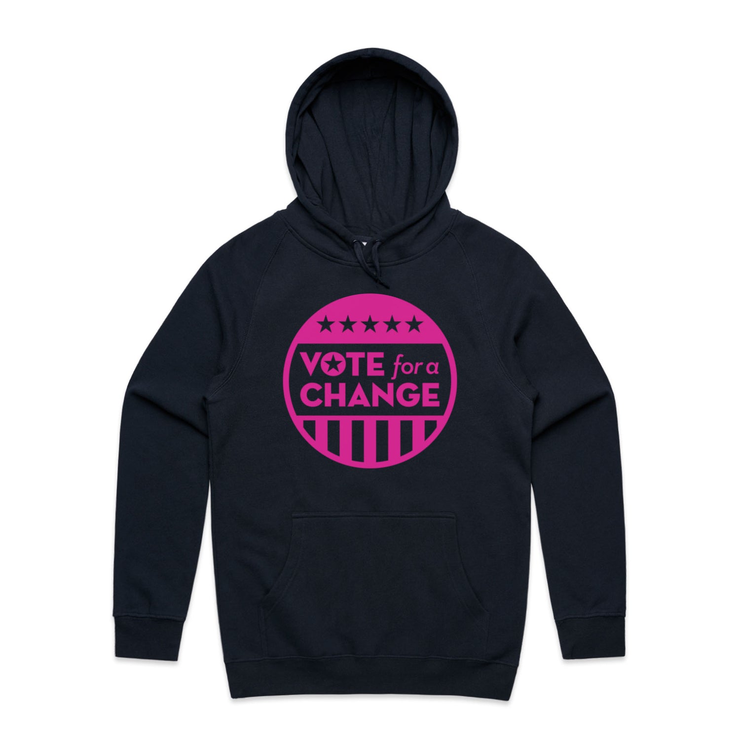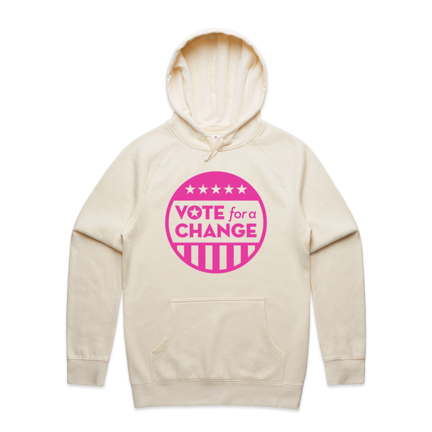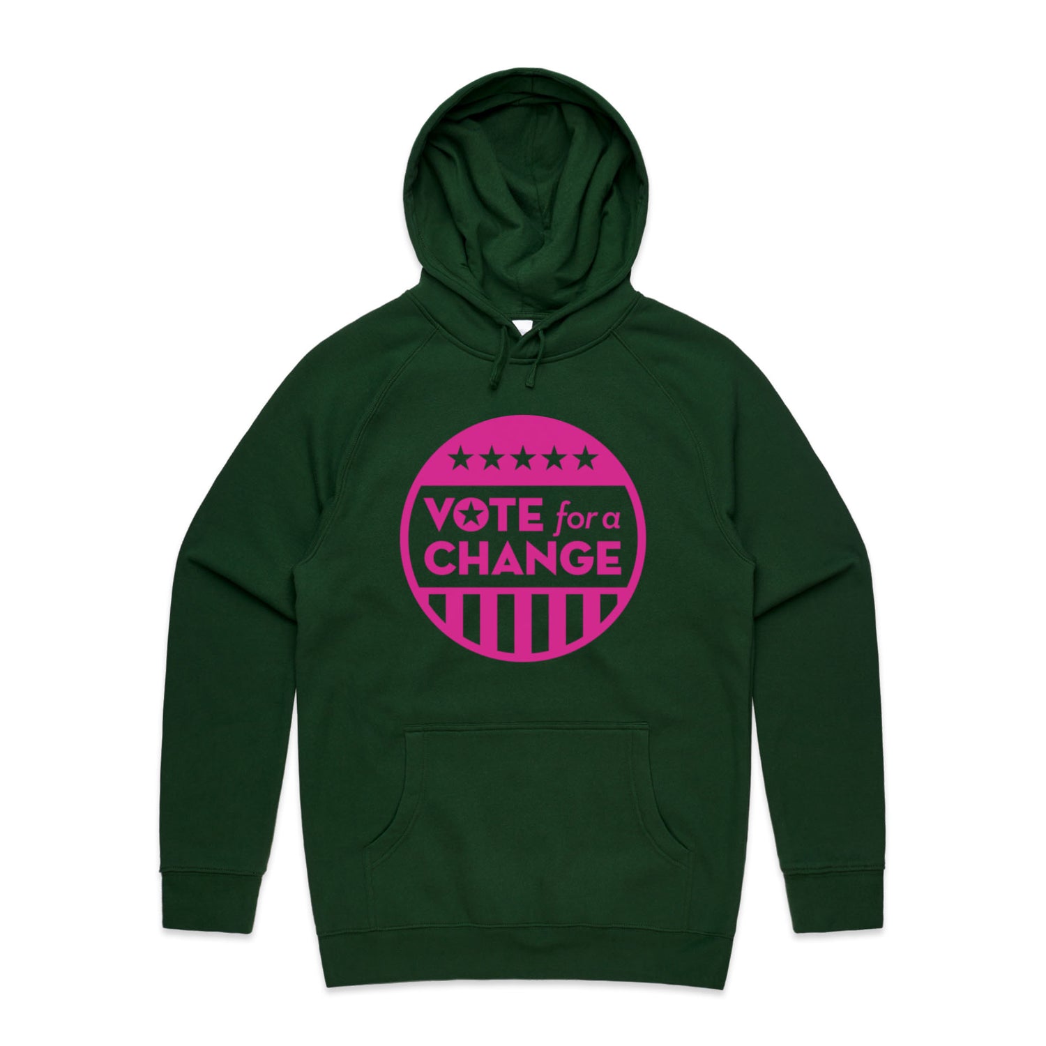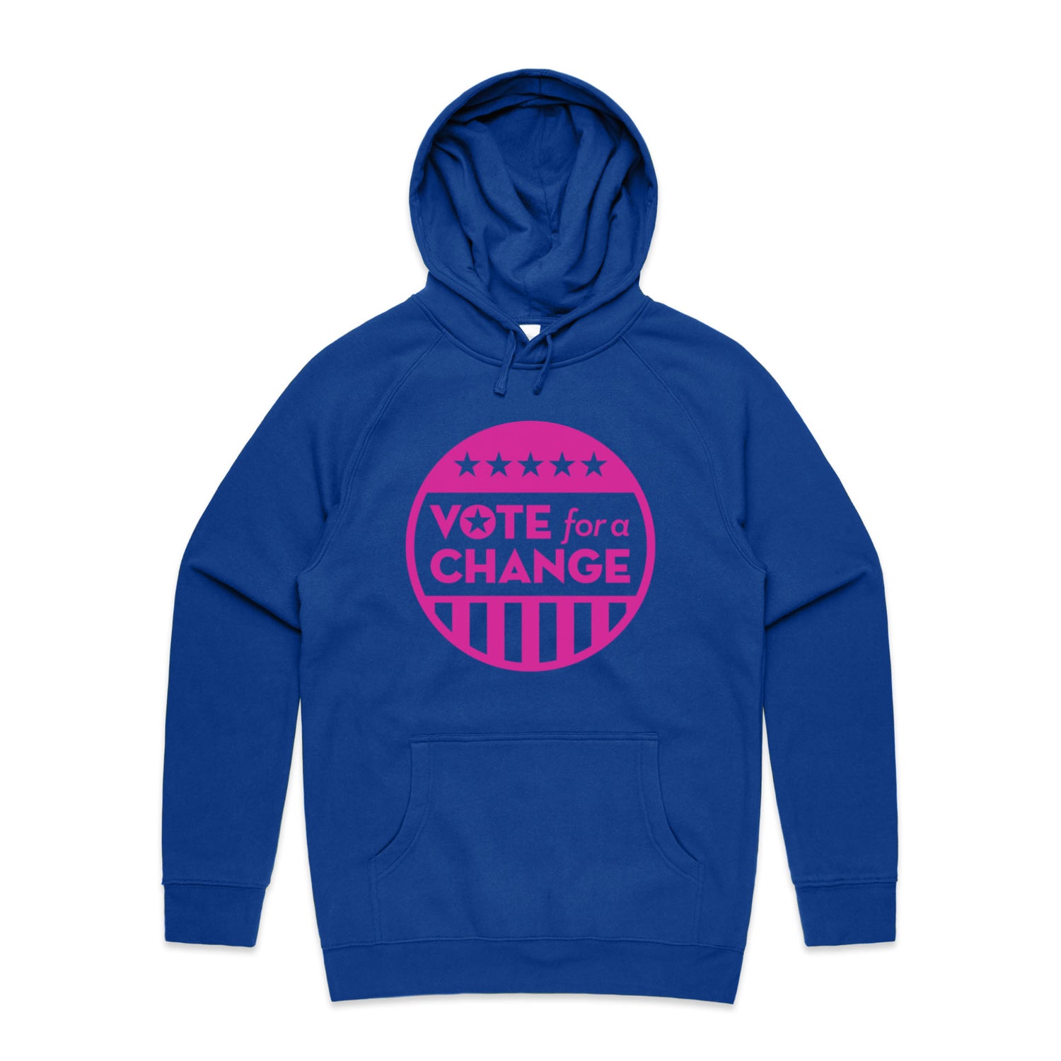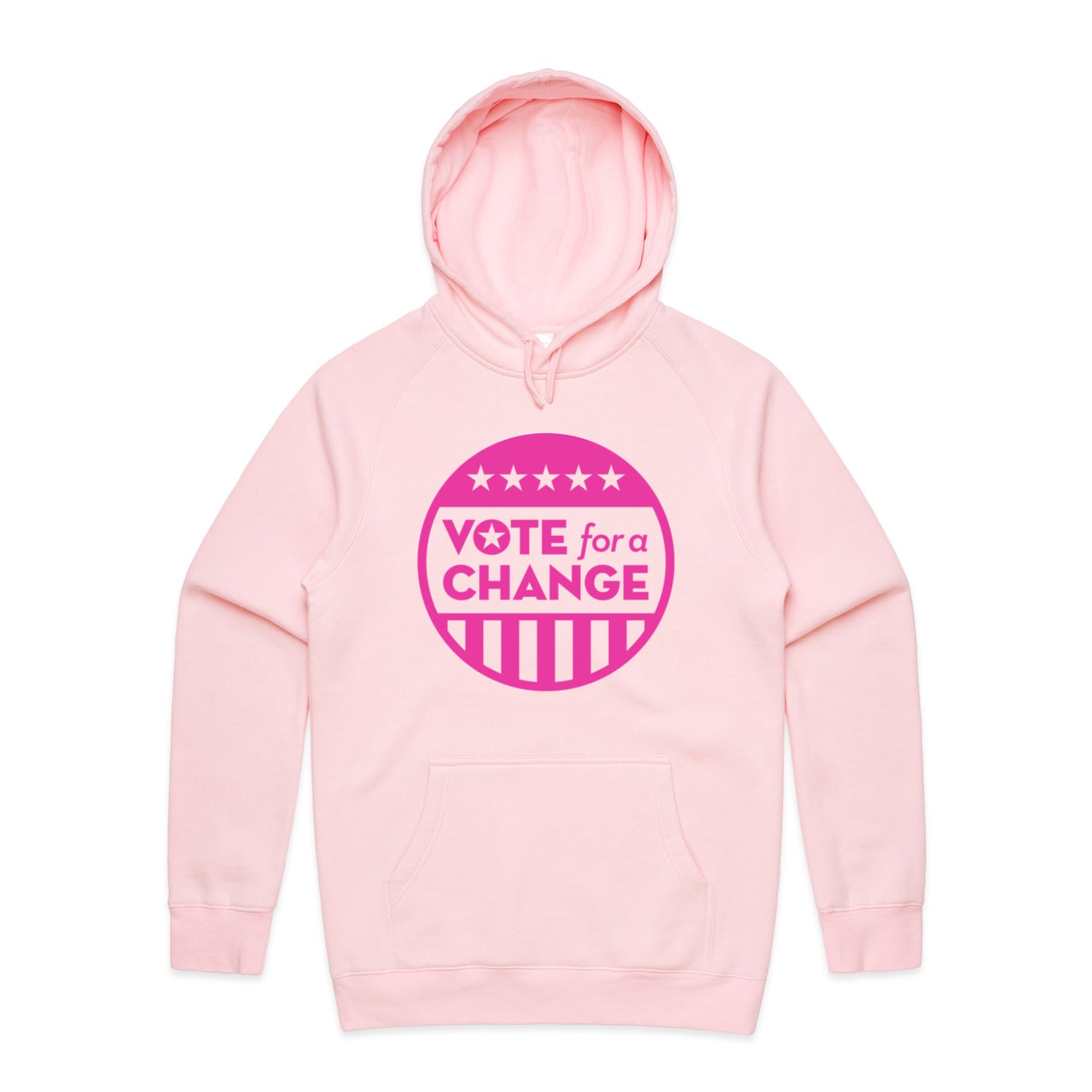 The Hoodies Vote for a Change – Men's Hooded Sweatshirt is a high-quality men's hooded sweatshirt, printed with fuchsia ink on the trusted AS Colour Supply Hood 5101. With a regular fit and mid-weight feel, it's crafted from a premium blend of 80% cotton and 20% polyester anti-pill fleece, making it a durable and comfortable staple for any wardrobe. The pullover design features raglan sleeves, a lined hood with tonal drawcord, ribbed sleeve cuffs, and a roomy kangaroo pocket — all designed to keep you warm while looking effortlessly sharp.