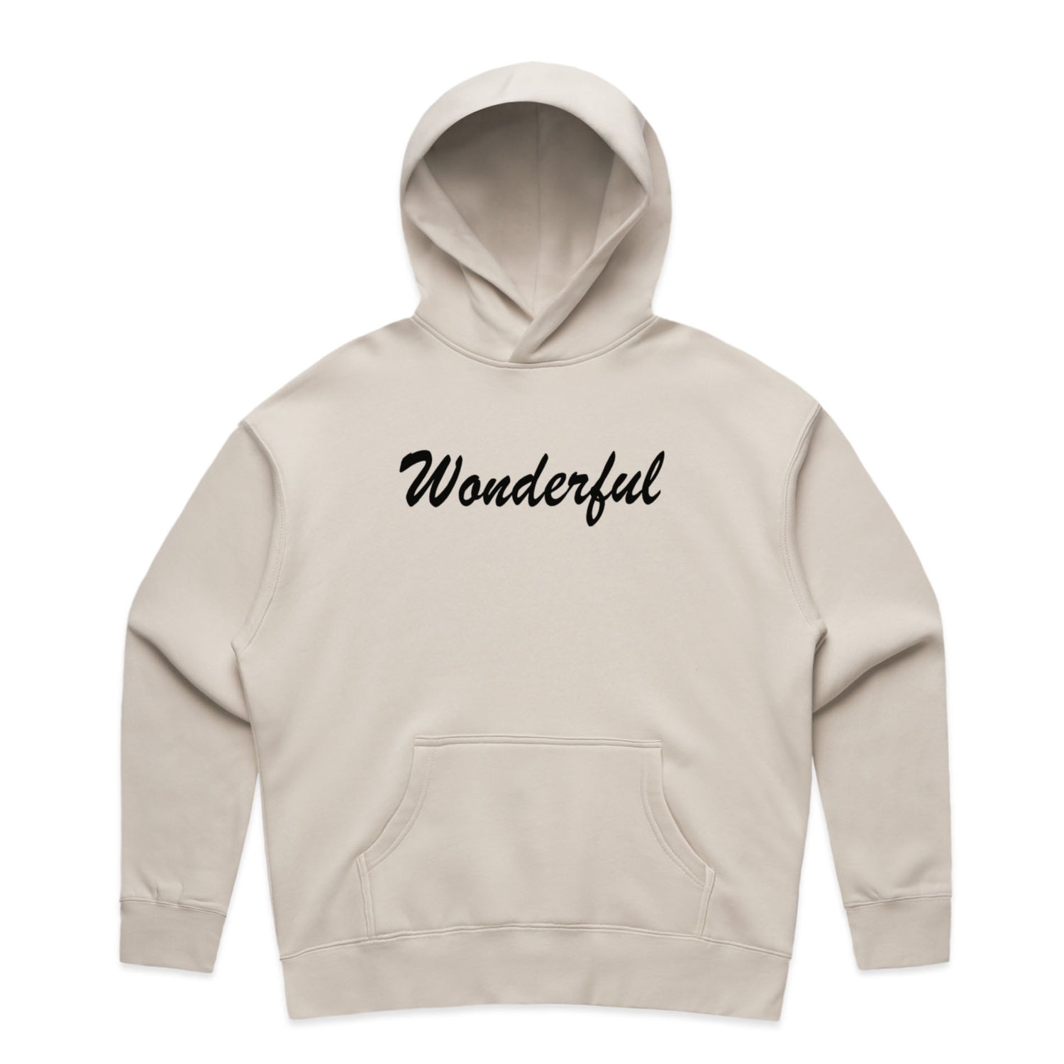 Dive into the groovy vibes with TheHoodie's Wonderful Women's Hooded Sweatshirt! Perfectly pitched for the trendsetters and style shakers, this hoodie rocks a retro word art design that’s making waves in sensational black ink. Crafted from the AS Colour Relax series, it’s all about easy-going comfort and earth-loving flair. Snuggle into the lush coziness of 320 GSM fleece, a genius blend of 80% cotton and 20% recycled polyester, which means you're looking fab while saving the planet—around 7.2 bottles at a time!