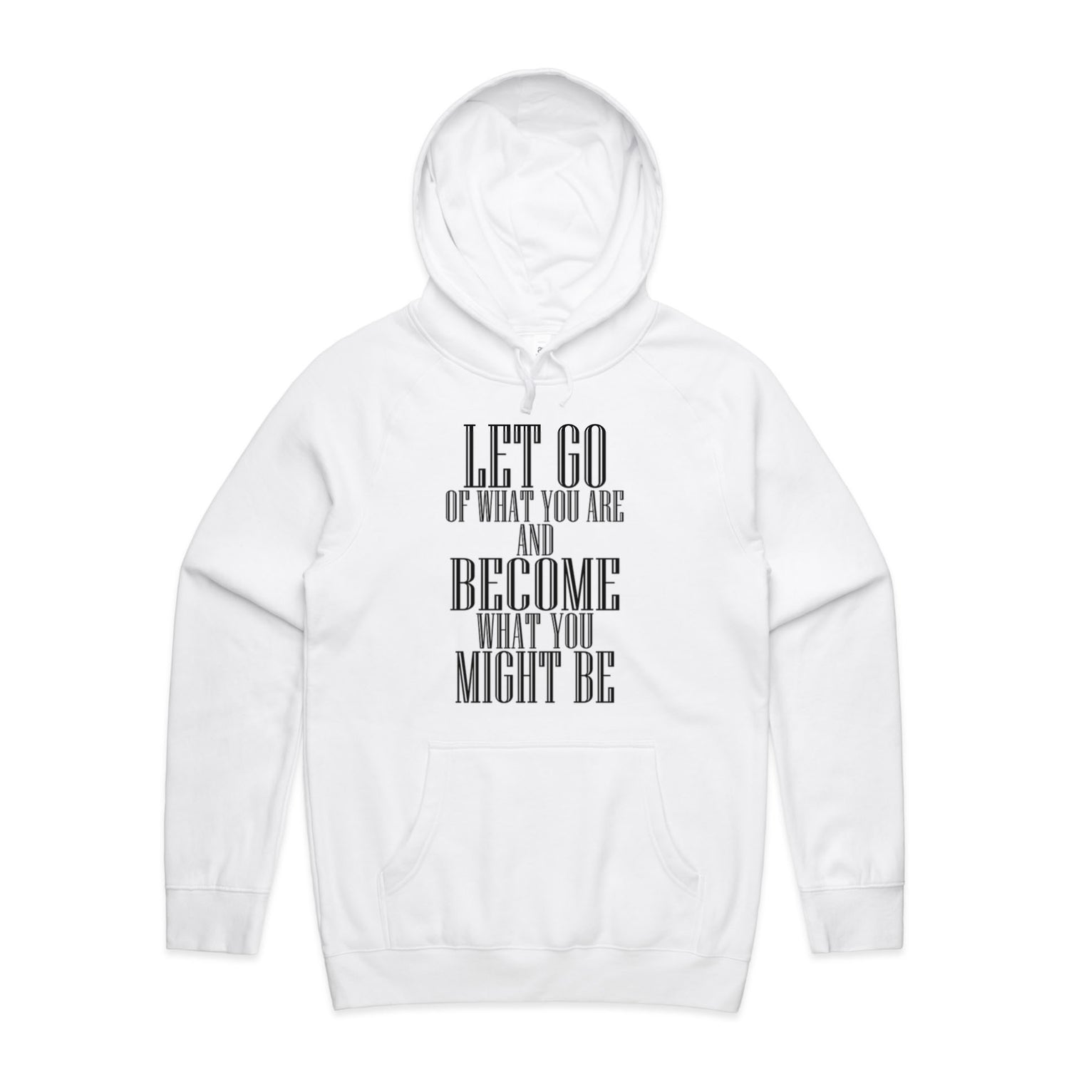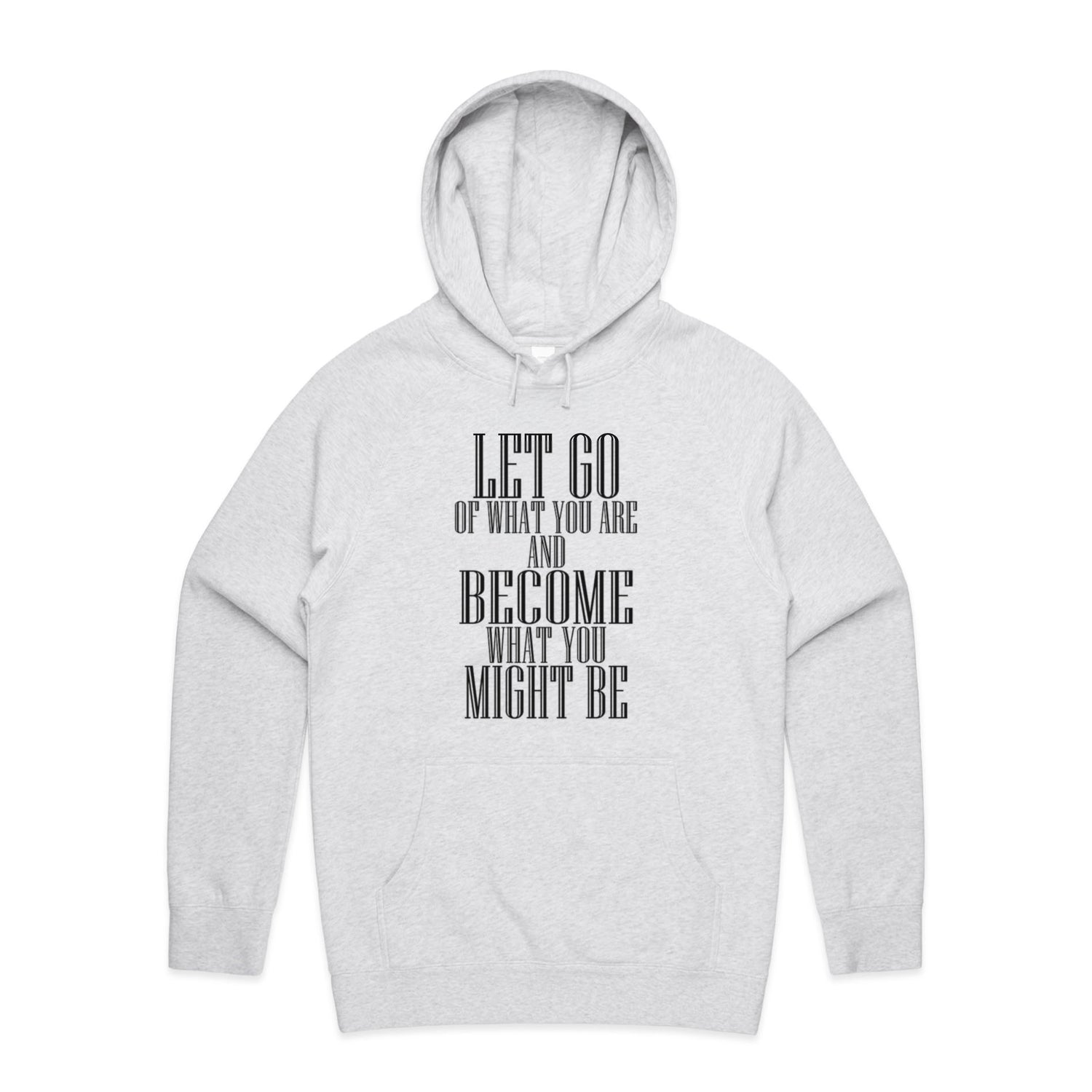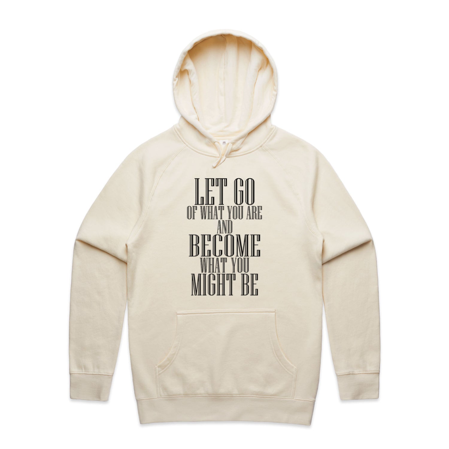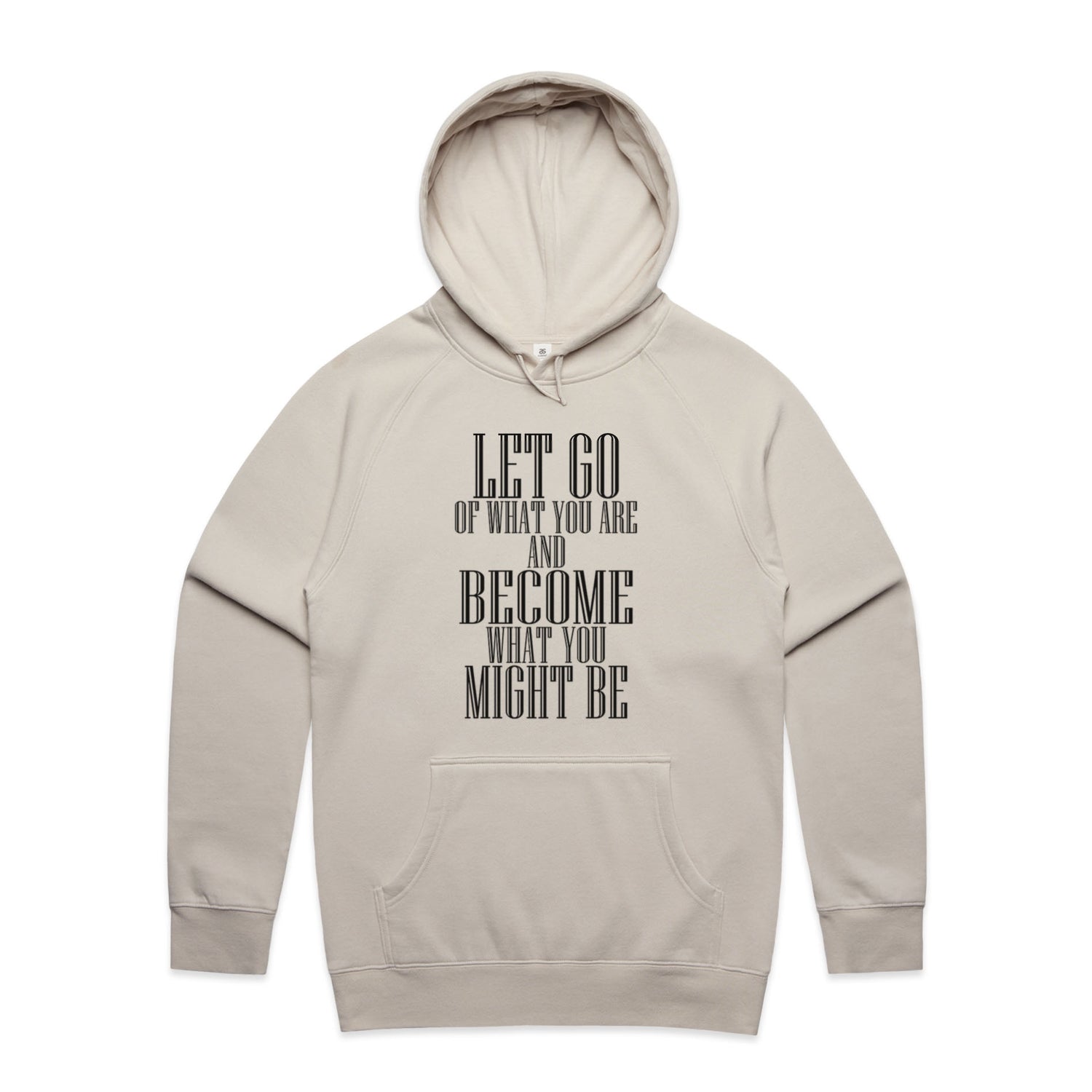 The Hoodies Let Go of What You are – Men's Hooded Sweatshirt is a high-quality men's hooded sweatshirt, printed with black ink on the trusted AS Colour Supply Hood 5101. With a regular fit and mid-weight feel, it's crafted from a premium blend of 80% cotton and 20% polyester anti-pill fleece, making it a durable and comfortable staple for any wardrobe. The pullover design features raglan sleeves, a lined hood with tonal drawcord, ribbed sleeve cuffs, and a roomy kangaroo pocket — all designed to keep you warm while looking effortlessly sharp.