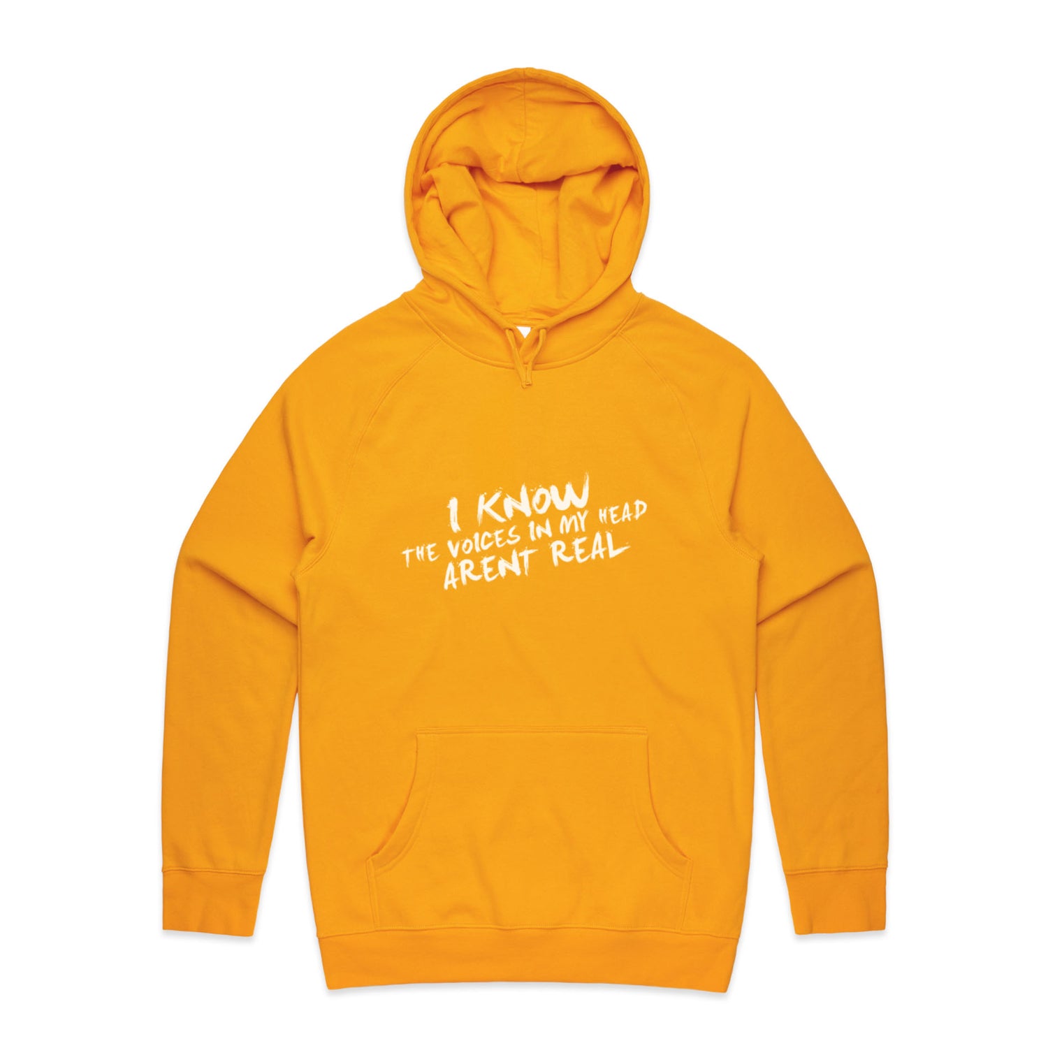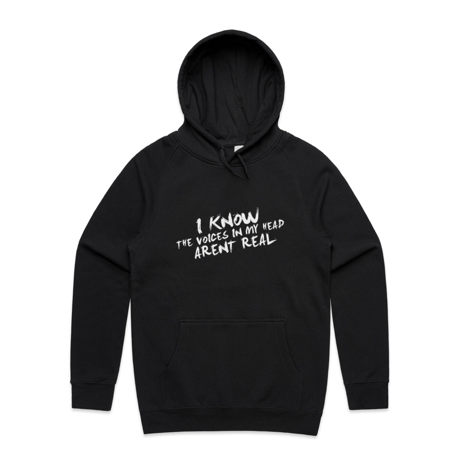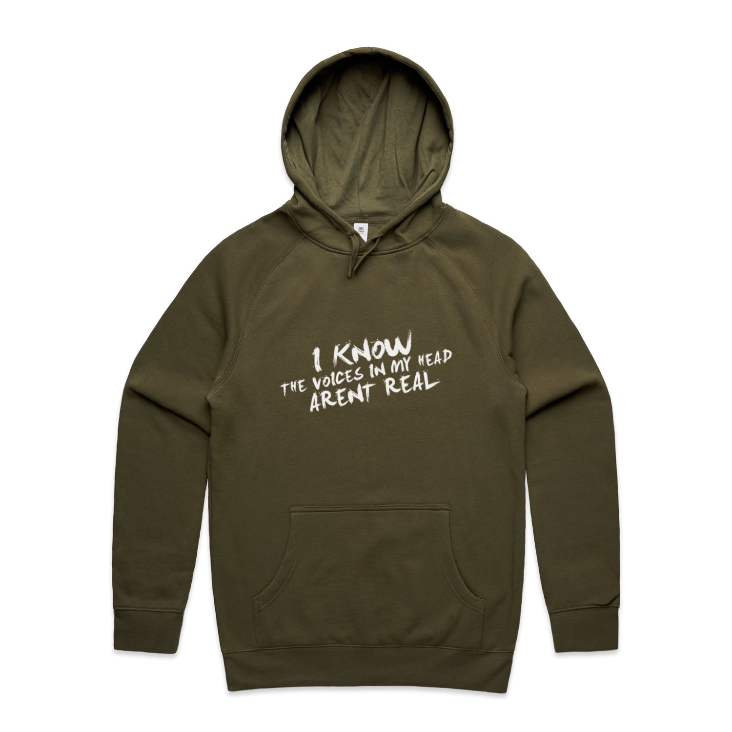 The Hoodies The Voices in My Head – Men's Hooded Sweatshirt is a high-quality men's hooded sweatshirt, printed with white ink on the trusted AS Colour Supply Hood 5101. With a regular fit and mid-weight feel, it's crafted from a premium blend of 80% cotton and 20% polyester anti-pill fleece, making it a durable and comfortable staple for any wardrobe. The pullover design features raglan sleeves, a lined hood with tonal drawcord, ribbed sleeve cuffs, and a roomy kangaroo pocket — all designed to keep you warm while looking effortlessly sharp.