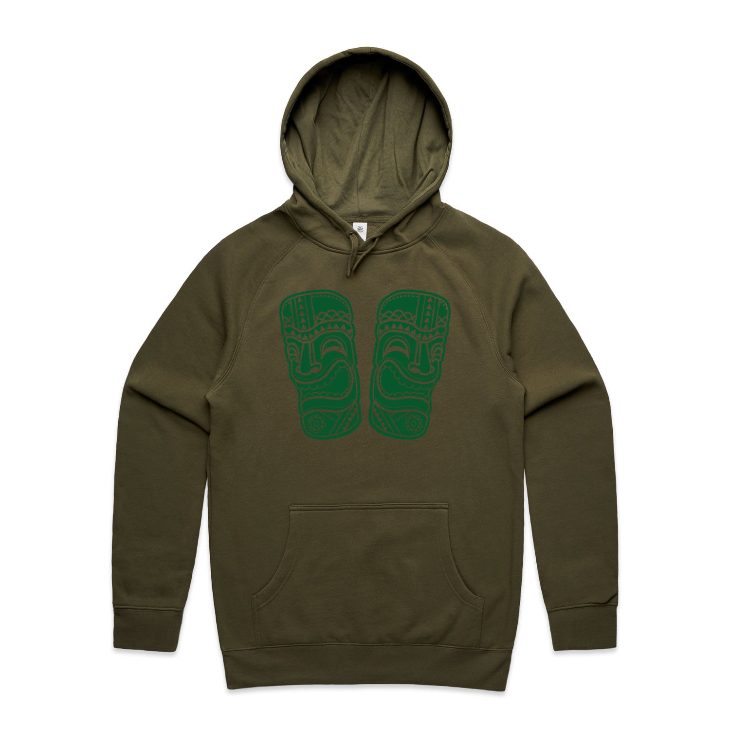 The Hoodies Laughing Tiki Statues – Men's Hooded Sweatshirt is a high-quality men's hooded sweatshirt, printed with green ink on the trusted AS Colour Supply Hood 5101. With a regular fit and mid-weight feel, it's crafted from a premium blend of 80% cotton and 20% polyester anti-pill fleece, making it a durable and comfortable staple for any wardrobe. The pullover design features raglan sleeves, a lined hood with tonal drawcord, ribbed sleeve cuffs, and a roomy kangaroo pocket — all designed to keep you warm while looking effortlessly sharp.