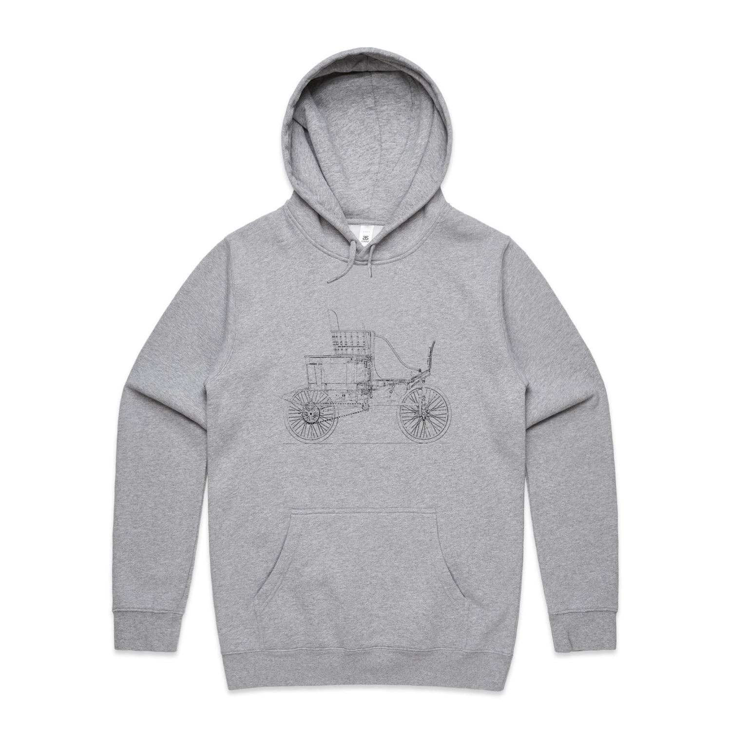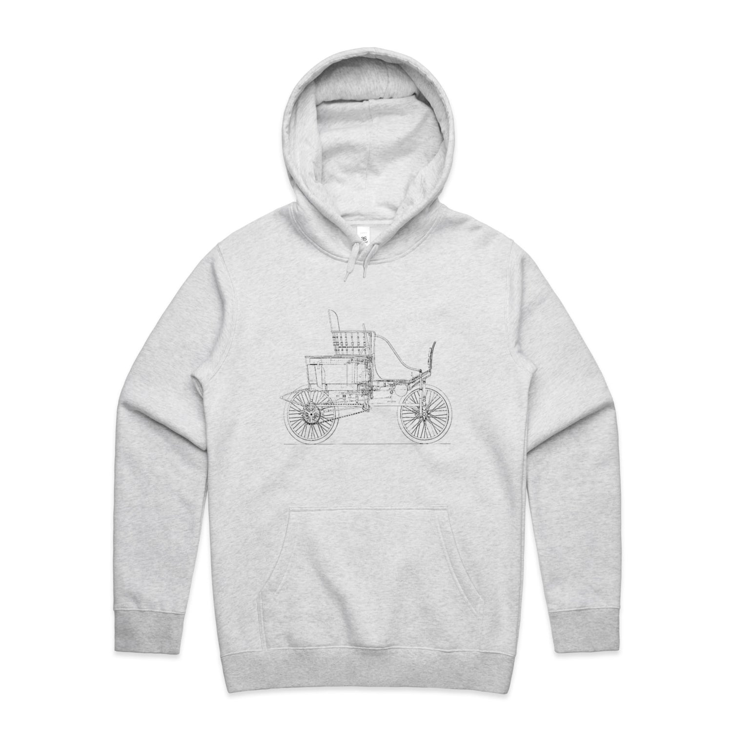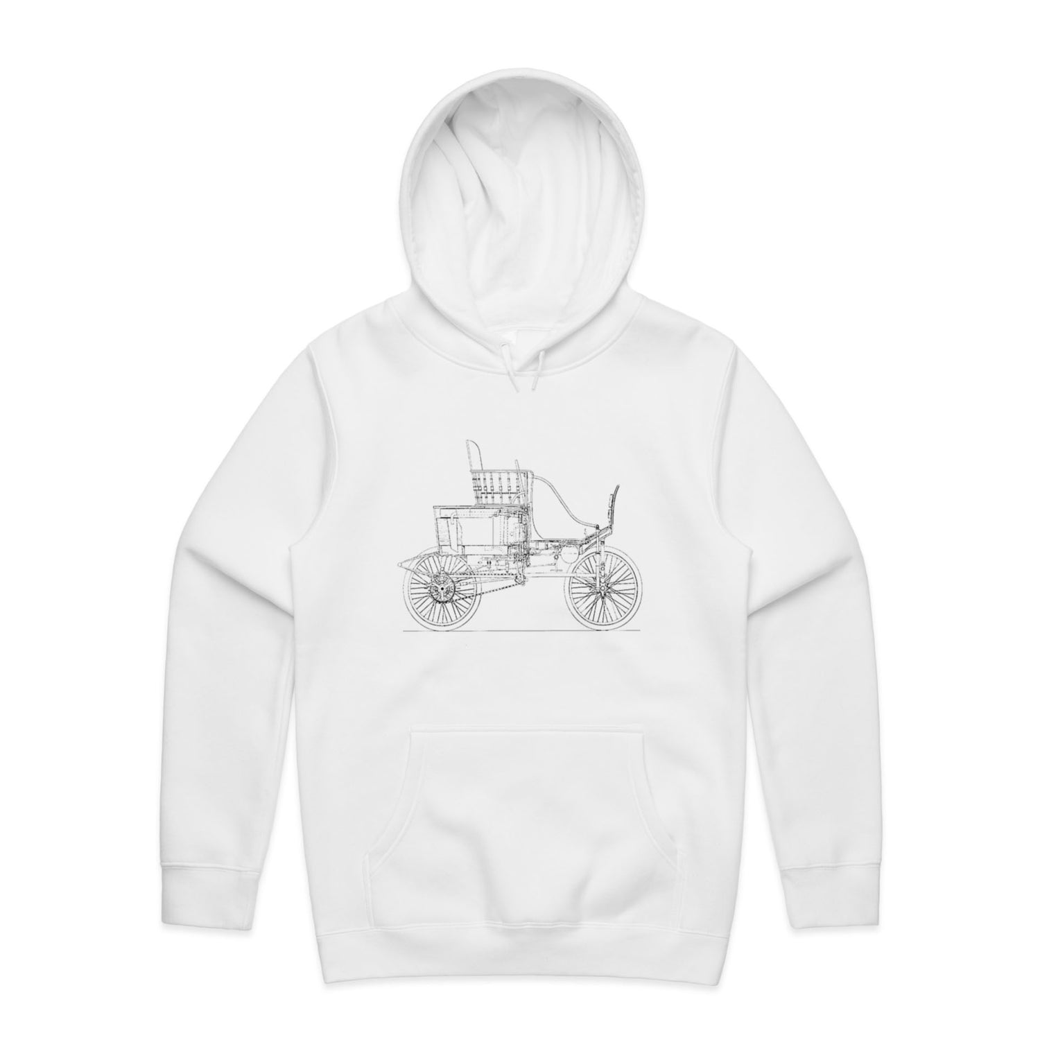 Made for comfort and coolness, its regular fit and mid-heavy weight fabric make it an ideal companion for those laid-back days or chilly evenings. Whether you're a car enthusiast or just love a nod to nostalgia, the intricate antique car diagram in sleek black ink is sure to get your mates talking.