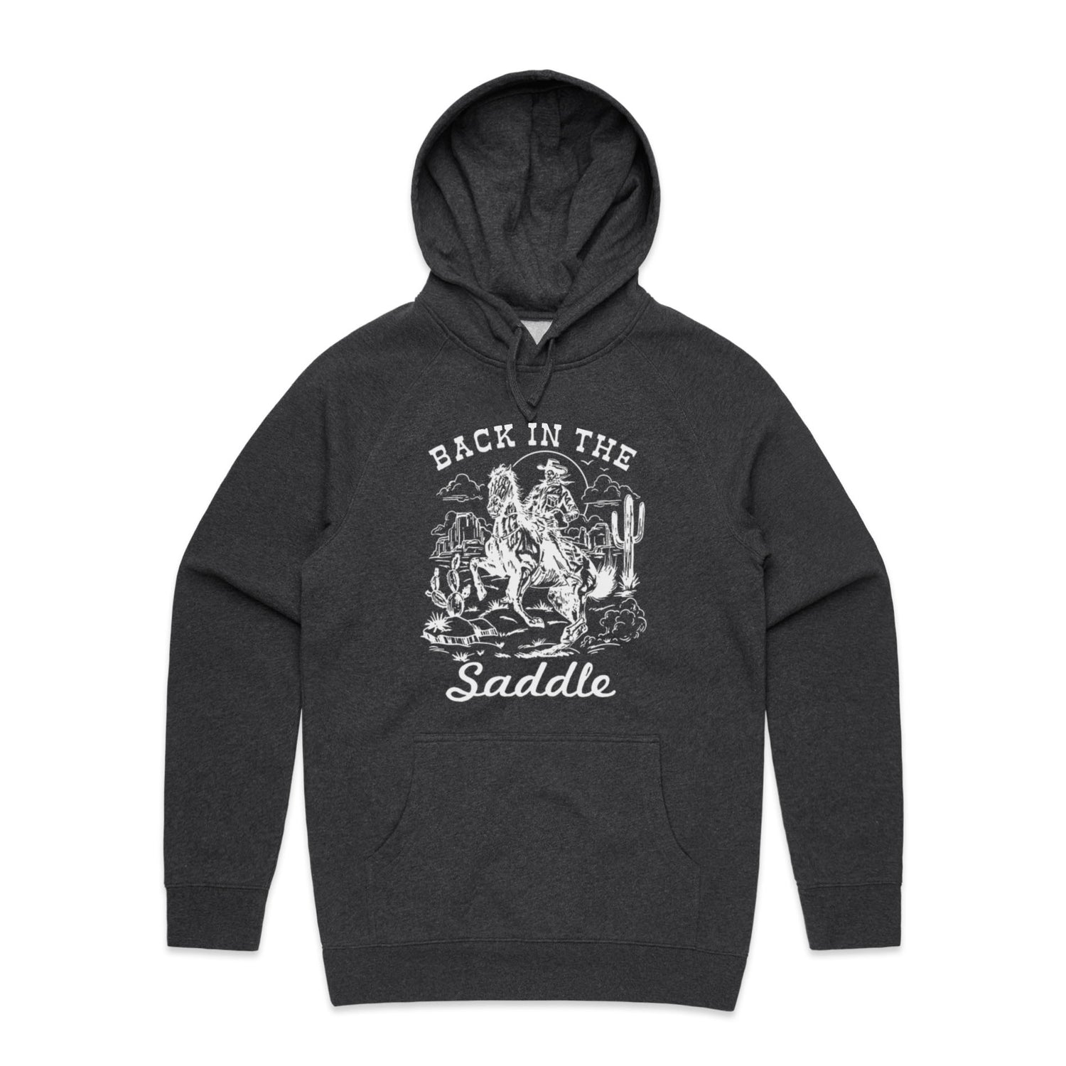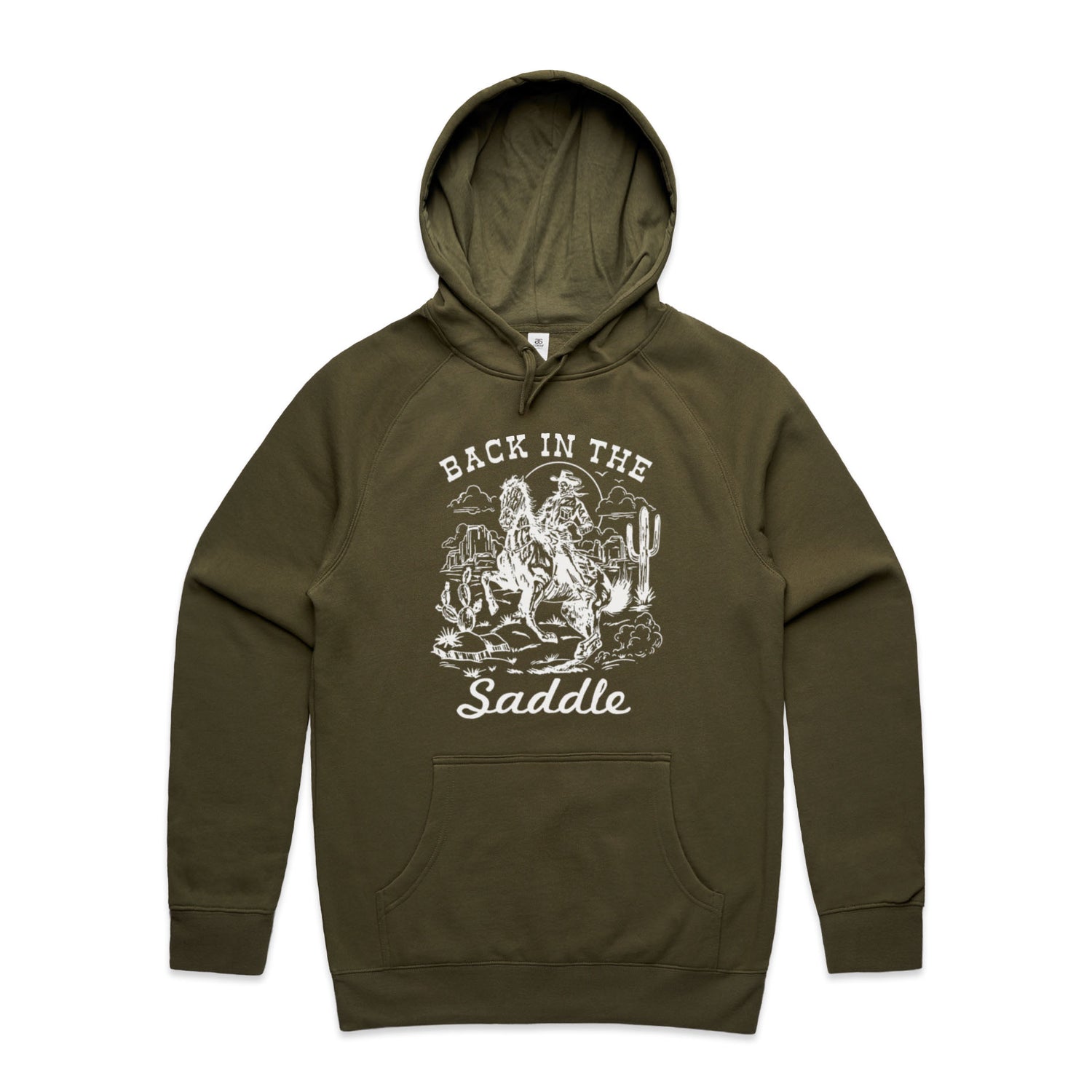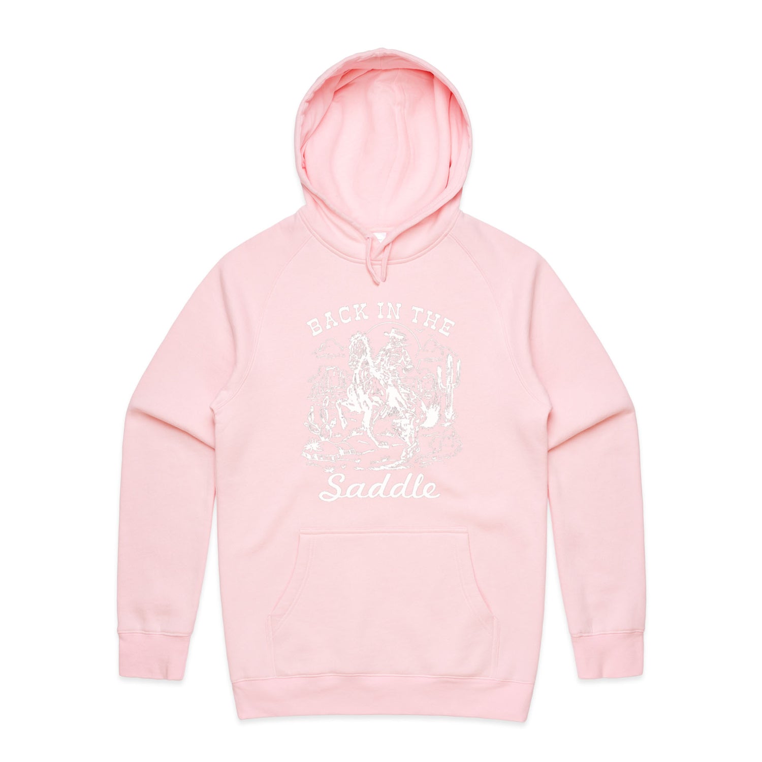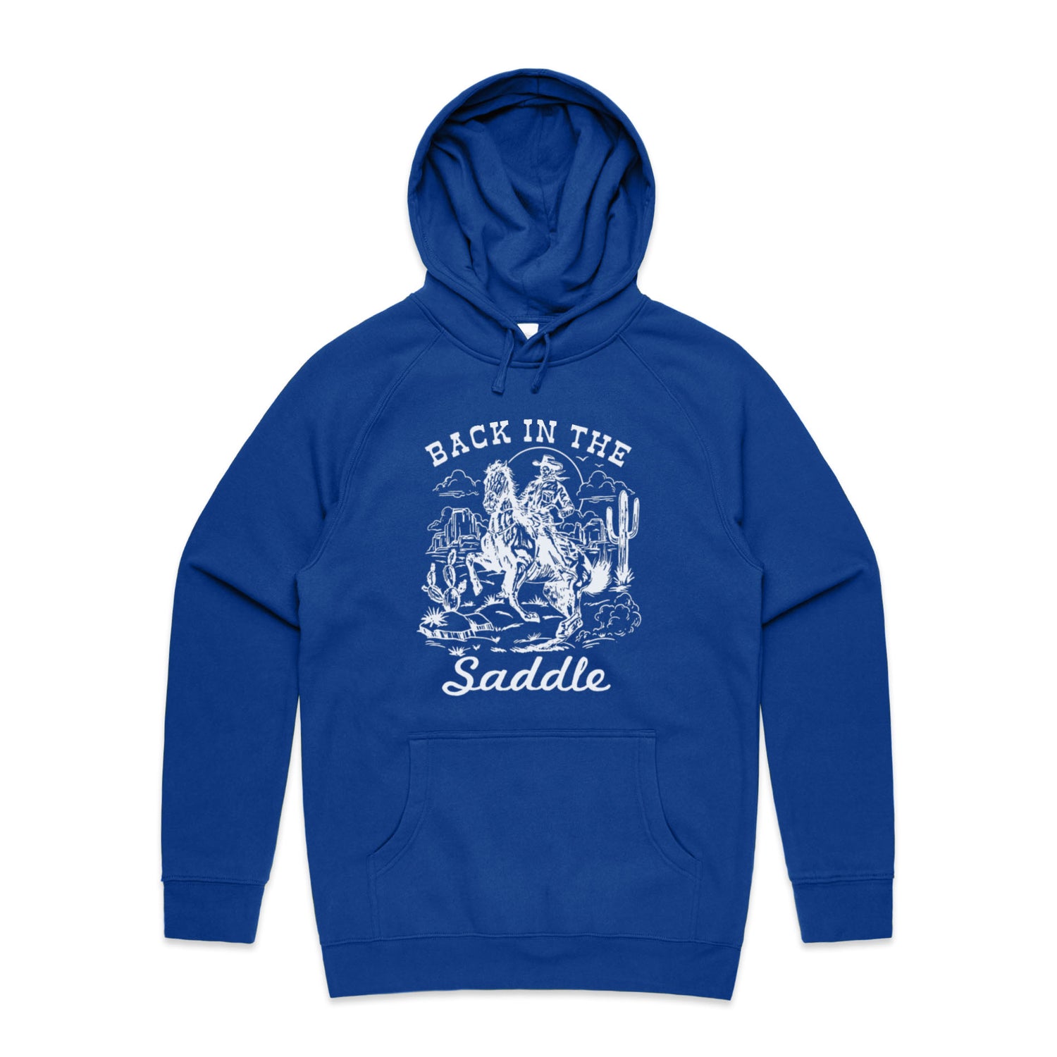 The Hoodies Back in the Saddle – Men's Hooded Sweatshirt is a high-quality men's hooded sweatshirt, printed with white ink on the trusted AS Colour Supply Hood 5101. With a regular fit and mid-weight feel, it's crafted from a premium blend of 80% cotton and 20% polyester anti-pill fleece, making it a durable and comfortable staple for any wardrobe. The pullover design features raglan sleeves, a lined hood with tonal drawcord, ribbed sleeve cuffs, and a roomy kangaroo pocket — all designed to keep you warm while looking effortlessly sharp.