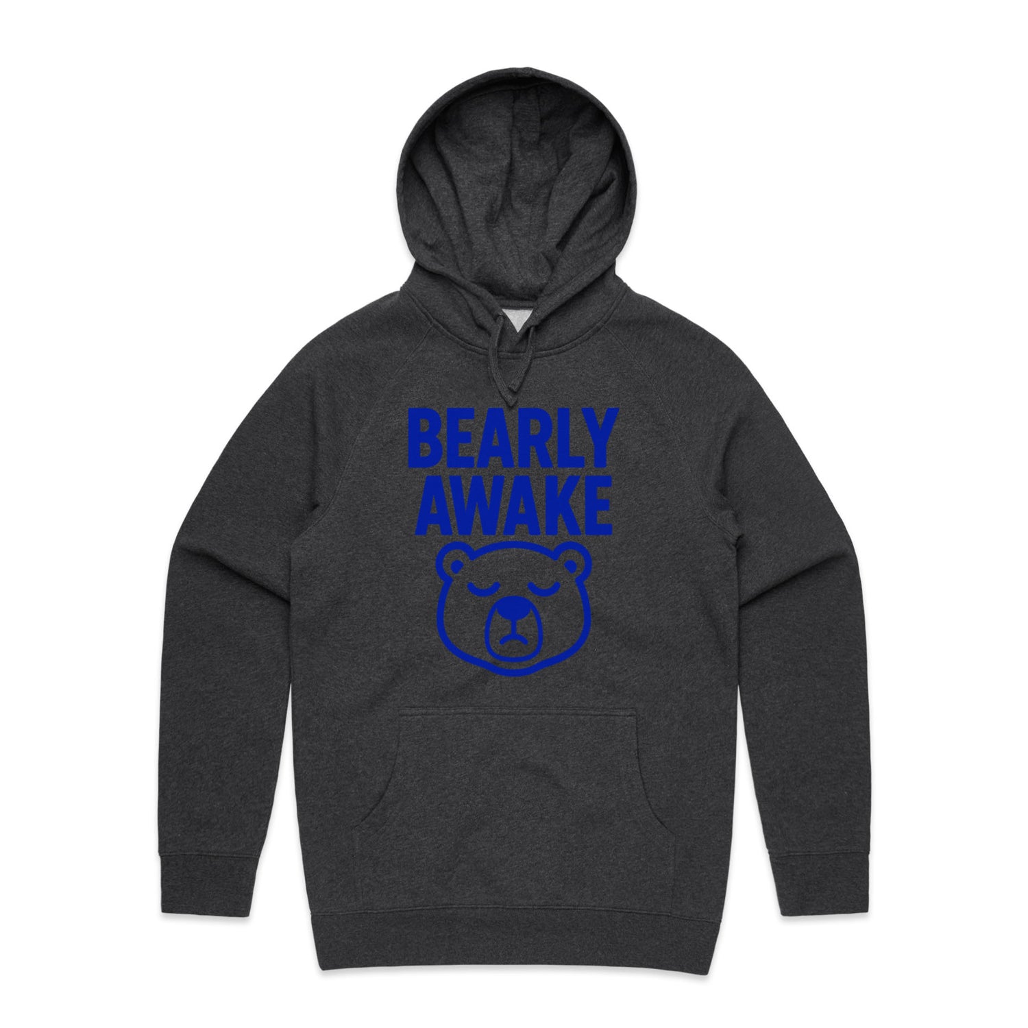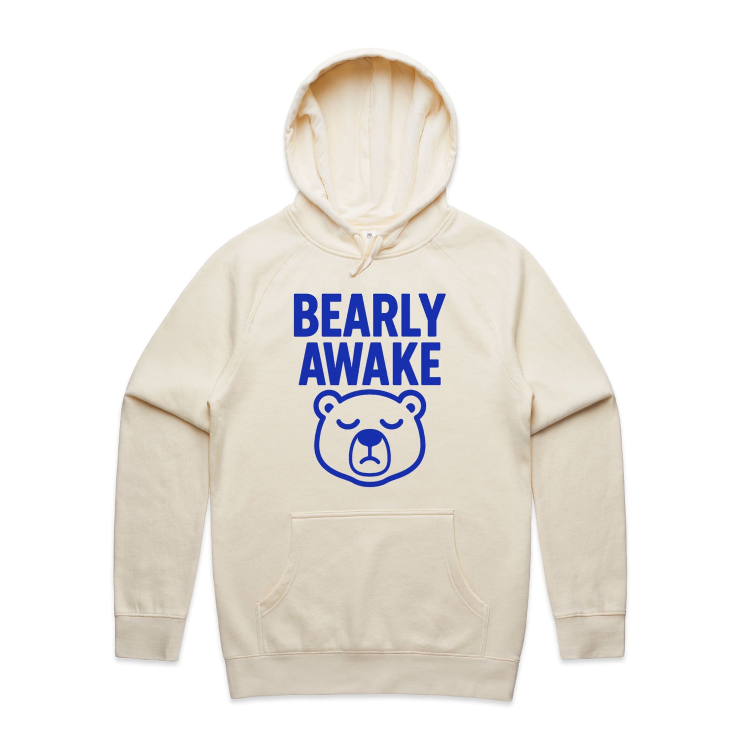 The Hoodies Barely Awake Bear – Men's Hooded Sweatshirt is a high-quality men's hooded sweatshirt, printed with blue ink on the trusted AS Colour Supply Hood 5101. With a regular fit and mid-weight feel, it's crafted from a premium blend of 80% cotton and 20% polyester anti-pill fleece, making it a durable and comfortable staple for any wardrobe. The pullover design features raglan sleeves, a lined hood with tonal drawcord, ribbed sleeve cuffs, and a roomy kangaroo pocket — all designed to keep you warm while looking effortlessly sharp.