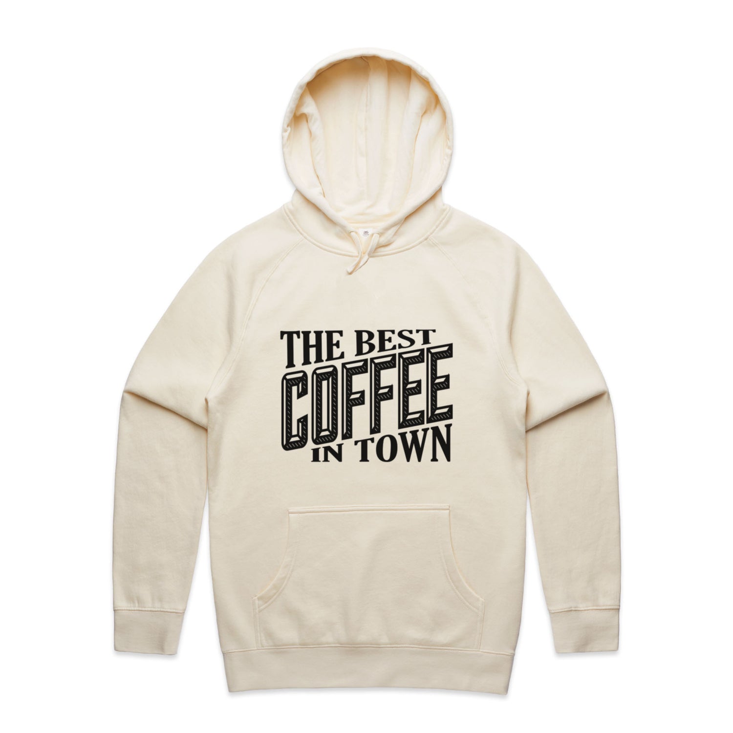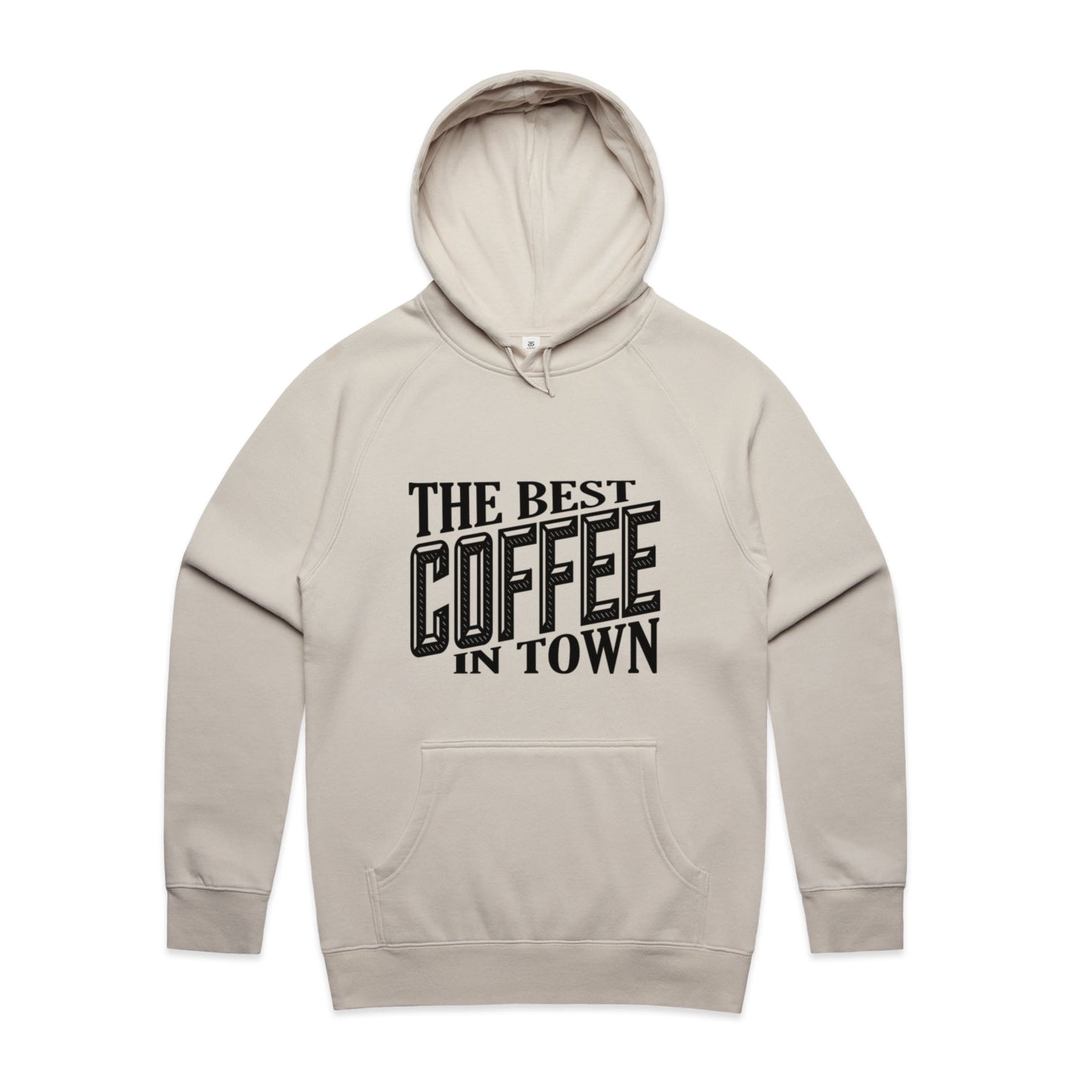 The Hoodies Best Coffee In Town – Men's Hooded Sweatshirt is a high-quality men's hooded sweatshirt, printed with black ink on the trusted AS Colour Supply Hood 5101. With a regular fit and mid-weight feel, it's crafted from a premium blend of 80% cotton and 20% polyester anti-pill fleece, making it a durable and comfortable staple for any wardrobe. The pullover design features raglan sleeves, a lined hood with tonal drawcord, ribbed sleeve cuffs, and a roomy kangaroo pocket — all designed to keep you warm while looking effortlessly sharp.
