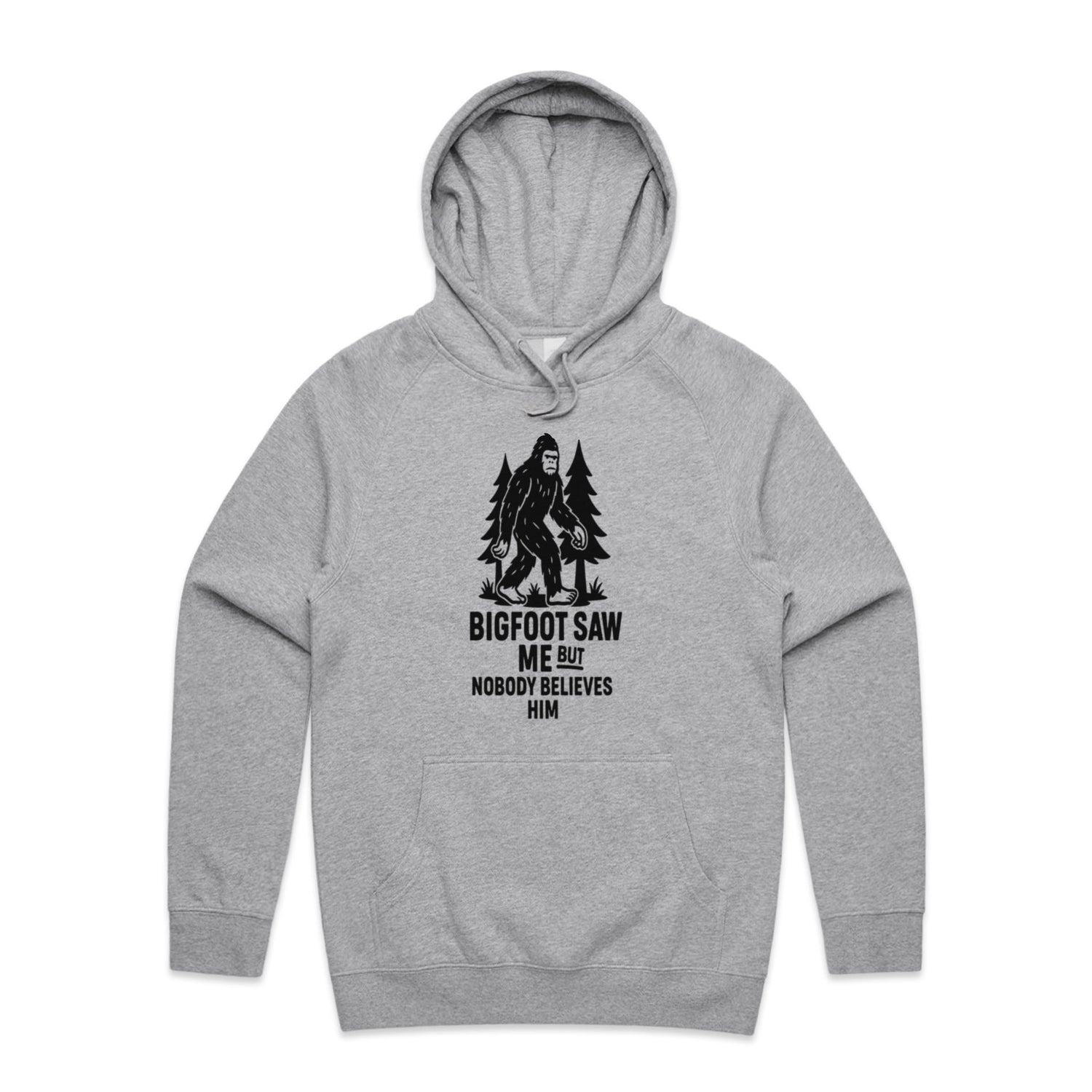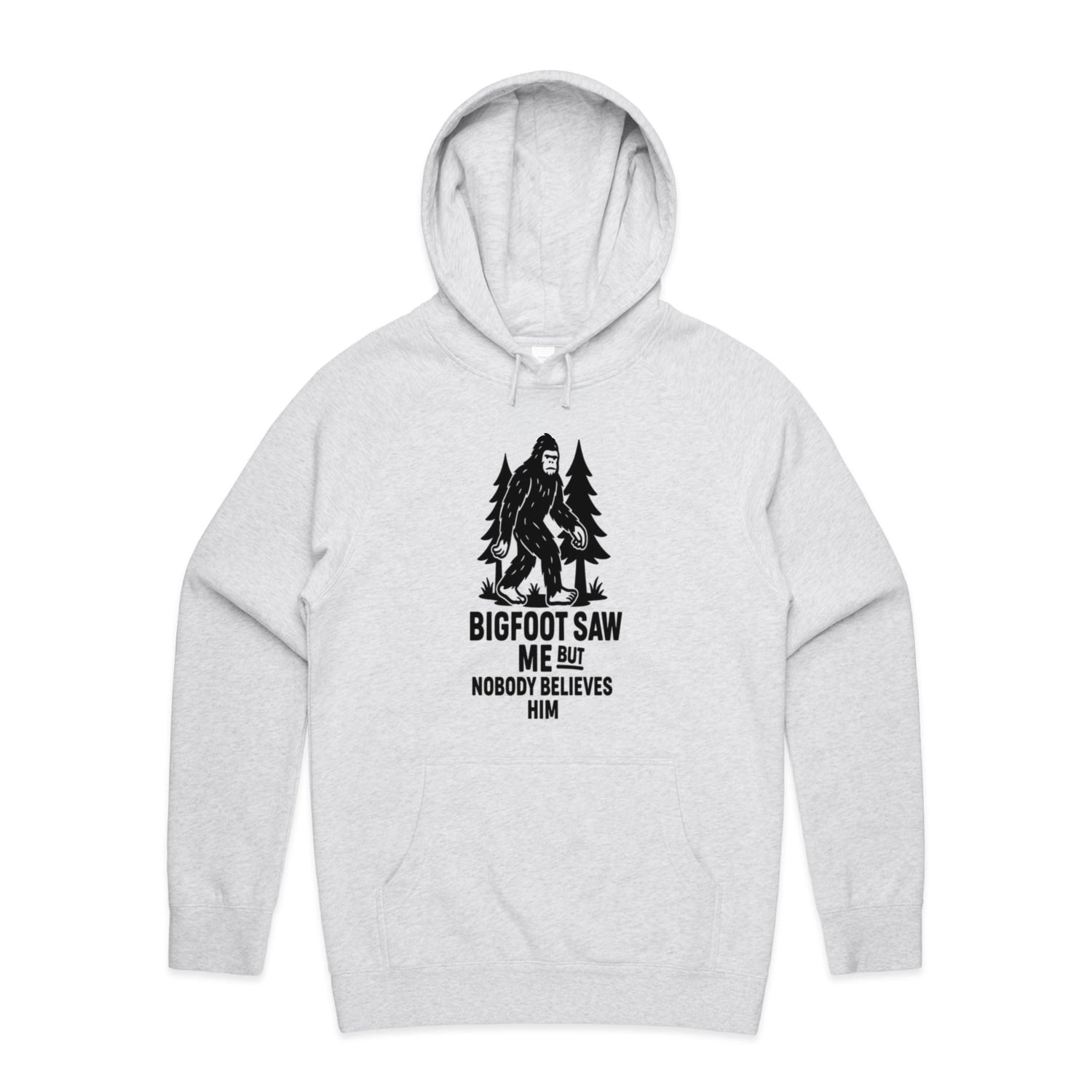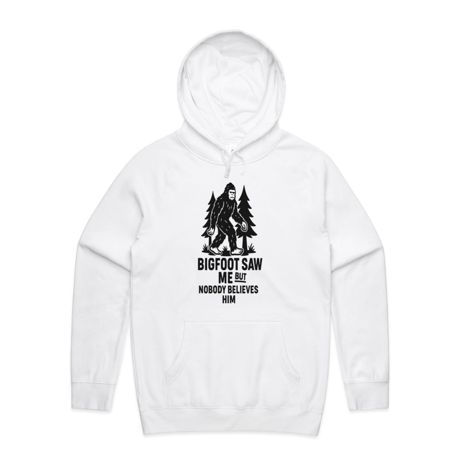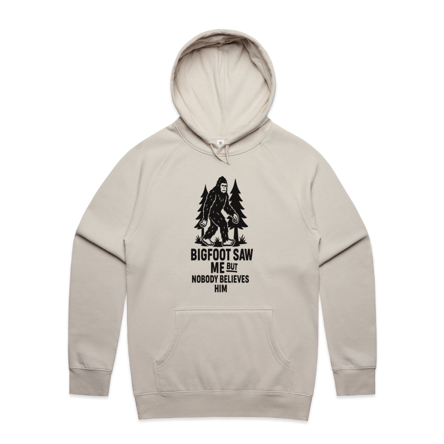The Hoodies Bigfoot in the Forest – Men's Hooded Sweatshirt is a high-quality men's hooded sweatshirt, printed with black ink on the trusted AS Colour Supply Hood 5101. With a regular fit and mid-weight feel, it's crafted from a premium blend of 80% cotton and 20% polyester anti-pill fleece, making it a durable and comfortable staple for any wardrobe. The pullover design features raglan sleeves, a lined hood with tonal drawcord, ribbed sleeve cuffs, and a roomy kangaroo pocket — all designed to keep you warm while looking effortlessly sharp.
