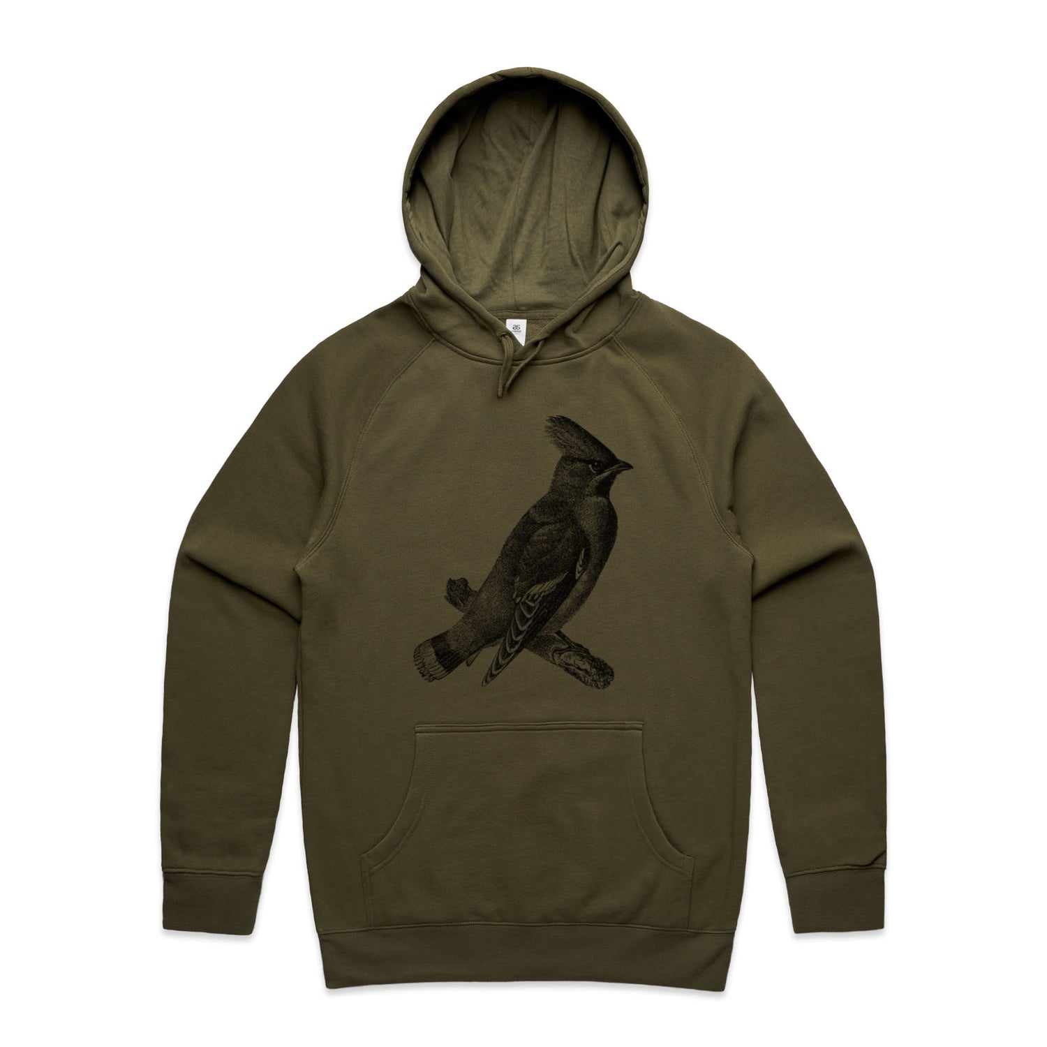 The Hoodies Bohemian Waxwing – Men's Hooded Sweatshirt is a high-quality men's hooded sweatshirt, printed with black ink on the trusted AS Colour Supply Hood 5101. With a regular fit and mid-weight feel, it's crafted from a premium blend of 80% cotton and 20% polyester anti-pill fleece, making it a durable and comfortable staple for any wardrobe. The pullover design features raglan sleeves, a lined hood with tonal drawcord, ribbed sleeve cuffs, and a roomy kangaroo pocket — all designed to keep you warm while looking effortlessly sharp.