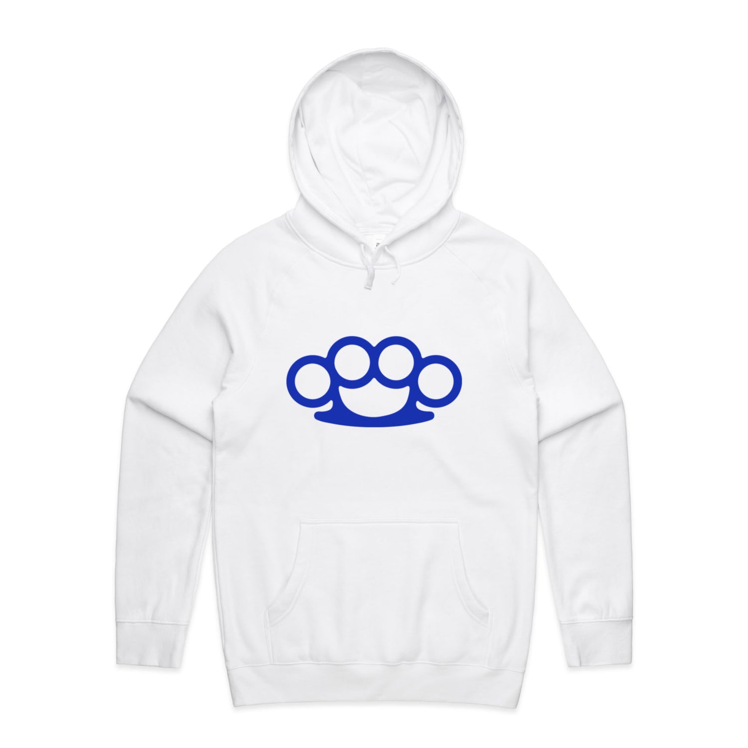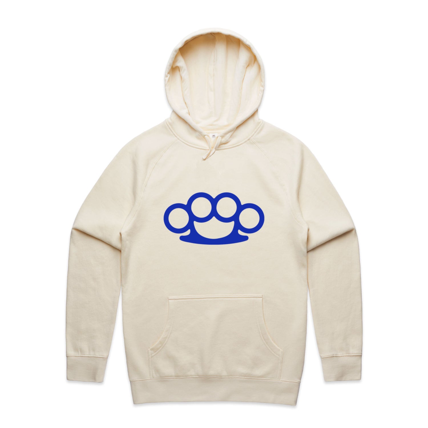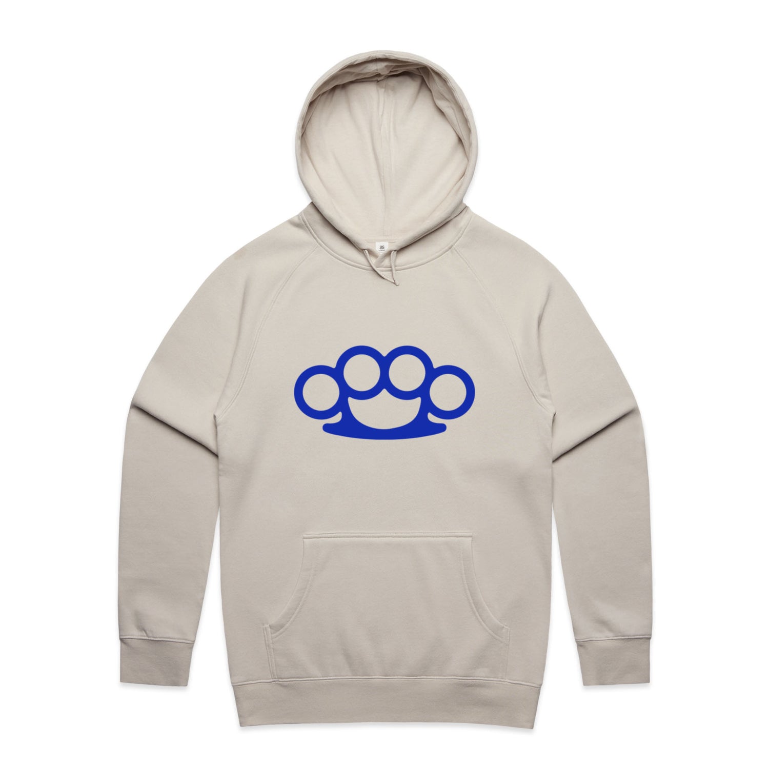 The Hoodies Brass Knuckles – Men's Hooded Sweatshirt is a high-quality men's hooded sweatshirt, printed with blue ink on the trusted AS Colour Supply Hood 5101. With a regular fit and mid-weight feel, it's crafted from a premium blend of 80% cotton and 20% polyester anti-pill fleece, making it a durable and comfortable staple for any wardrobe. The pullover design features raglan sleeves, a lined hood with tonal drawcord, ribbed sleeve cuffs, and a roomy kangaroo pocket — all designed to keep you warm while looking effortlessly sharp.