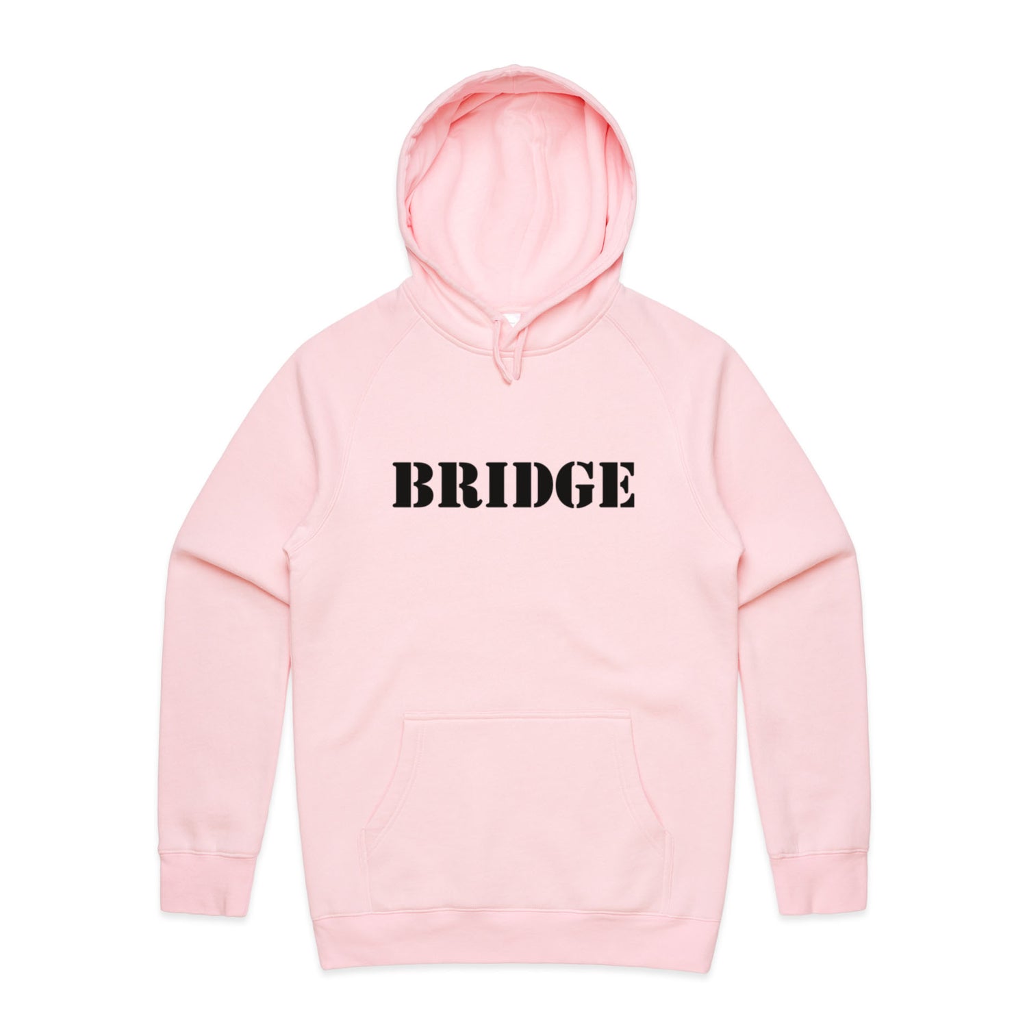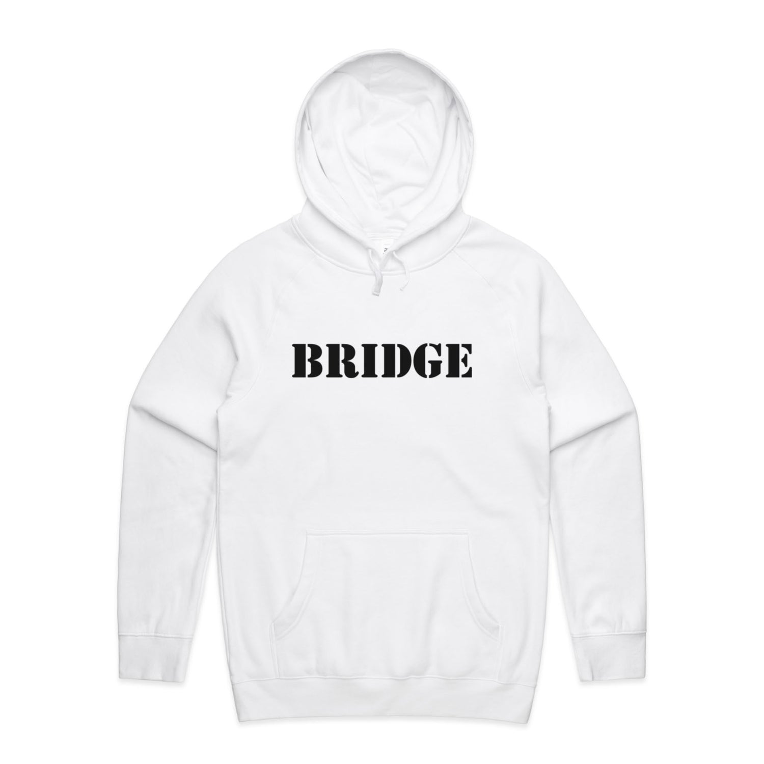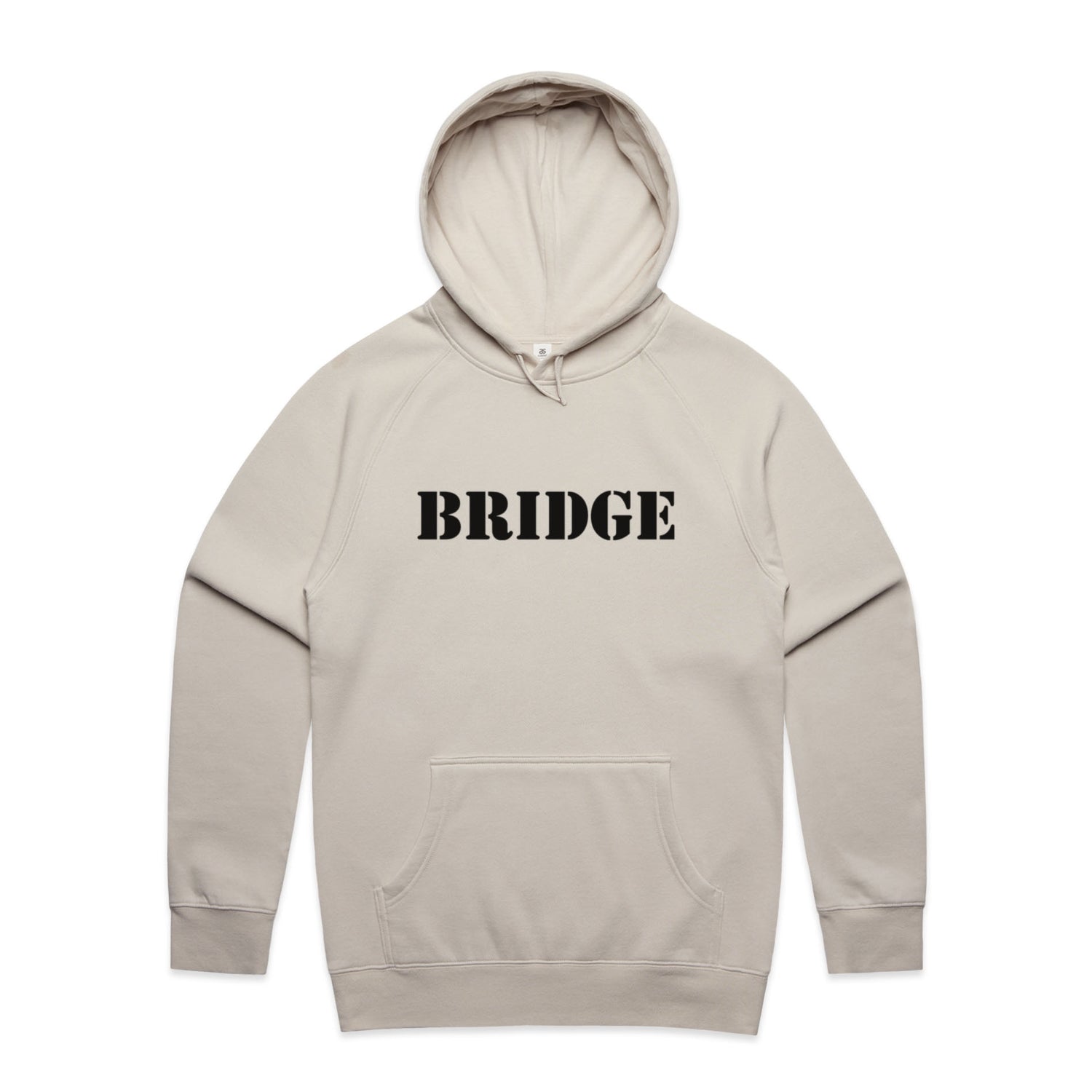 The Hoodies BRIDGE Stencil – Men's Hooded Sweatshirt is a high-quality men's hooded sweatshirt, printed with black ink on the trusted AS Colour Supply Hood 5101. With a regular fit and mid-weight feel, it's crafted from a premium blend of 80% cotton and 20% polyester anti-pill fleece, making it a durable and comfortable staple for any wardrobe. The pullover design features raglan sleeves, a lined hood with tonal drawcord, ribbed sleeve cuffs, and a roomy kangaroo pocket — all designed to keep you warm while looking effortlessly sharp.