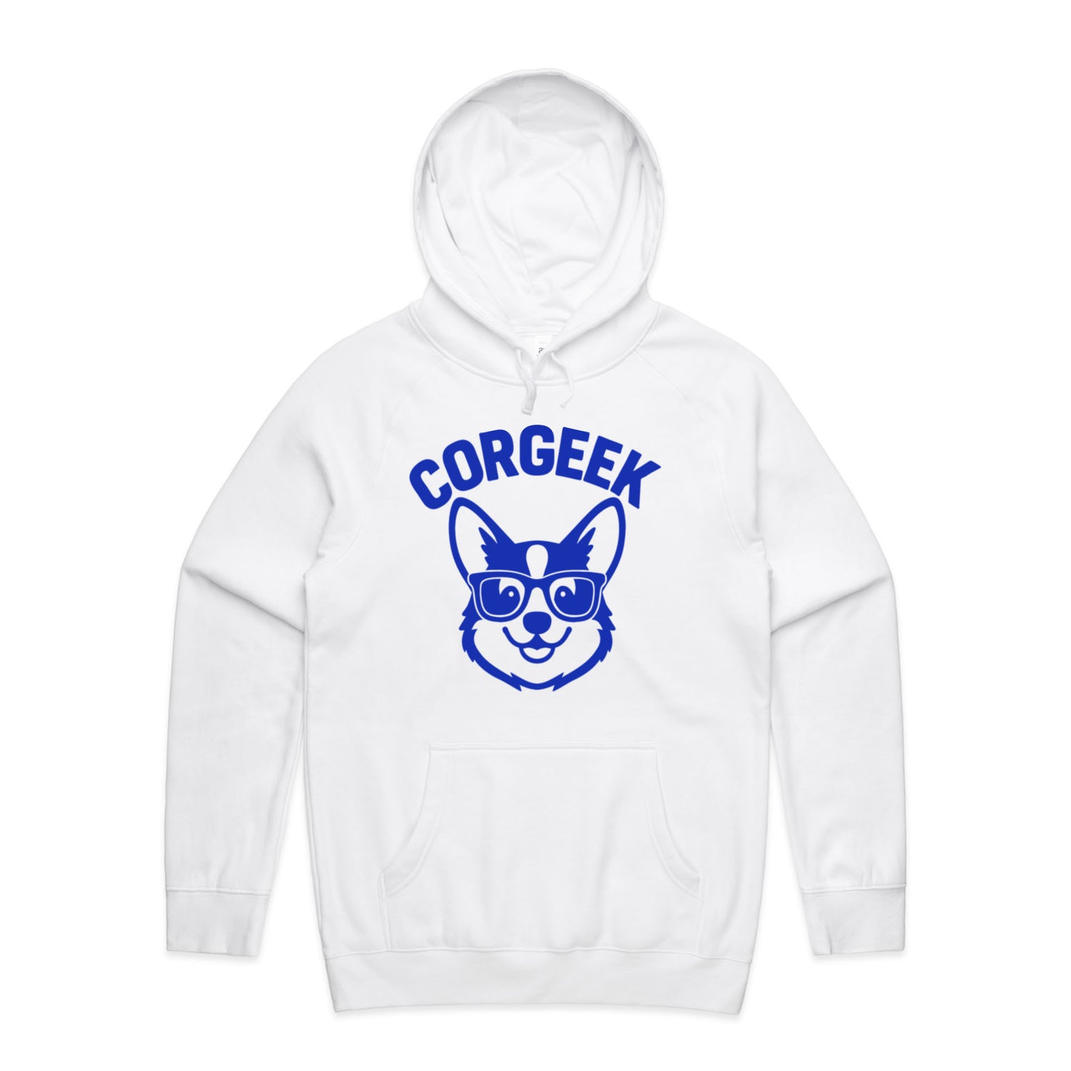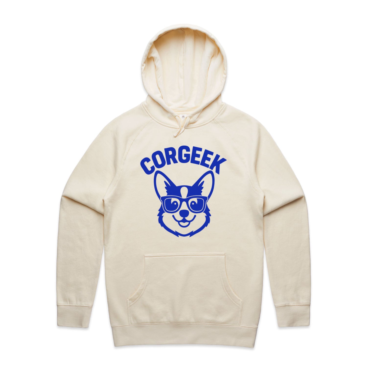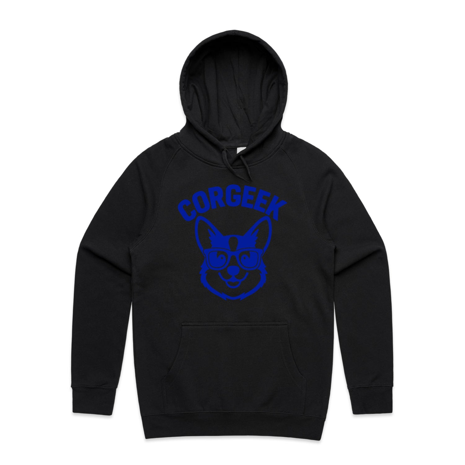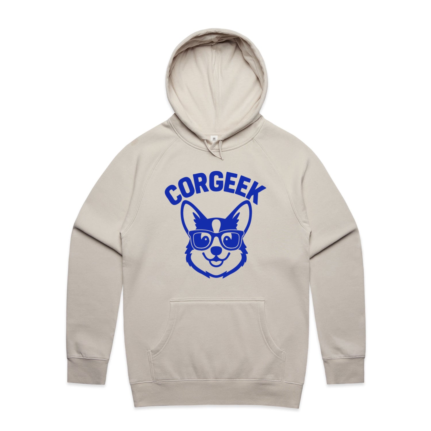 The Hoodies Corgi Geek – Men's Hooded Sweatshirt is a high-quality men's hooded sweatshirt, printed with blue ink on the trusted AS Colour Supply Hood 5101. With a regular fit and mid-weight feel, it's crafted from a premium blend of 80% cotton and 20% polyester anti-pill fleece, making it a durable and comfortable staple for any wardrobe. The pullover design features raglan sleeves, a lined hood with tonal drawcord, ribbed sleeve cuffs, and a roomy kangaroo pocket — all designed to keep you warm while looking effortlessly sharp.
