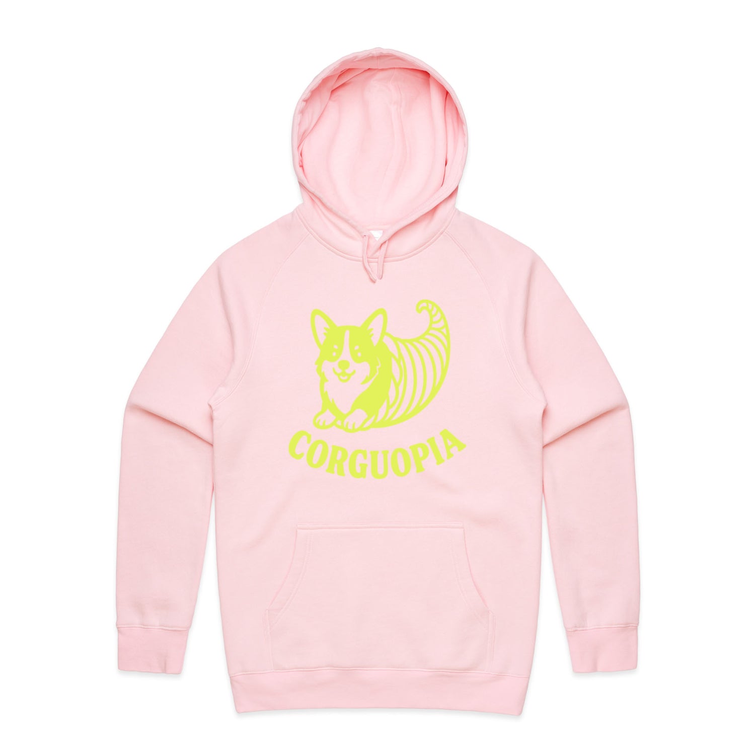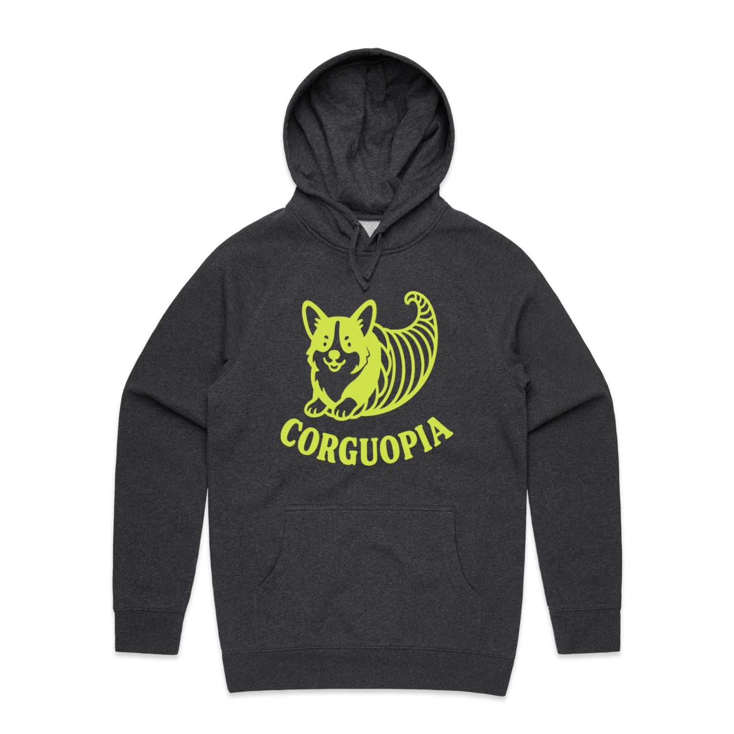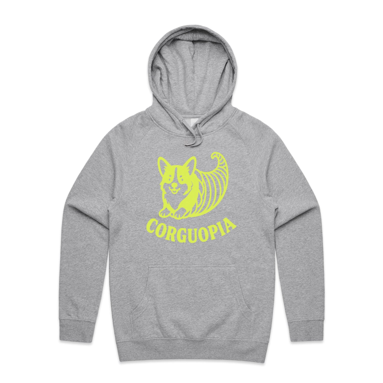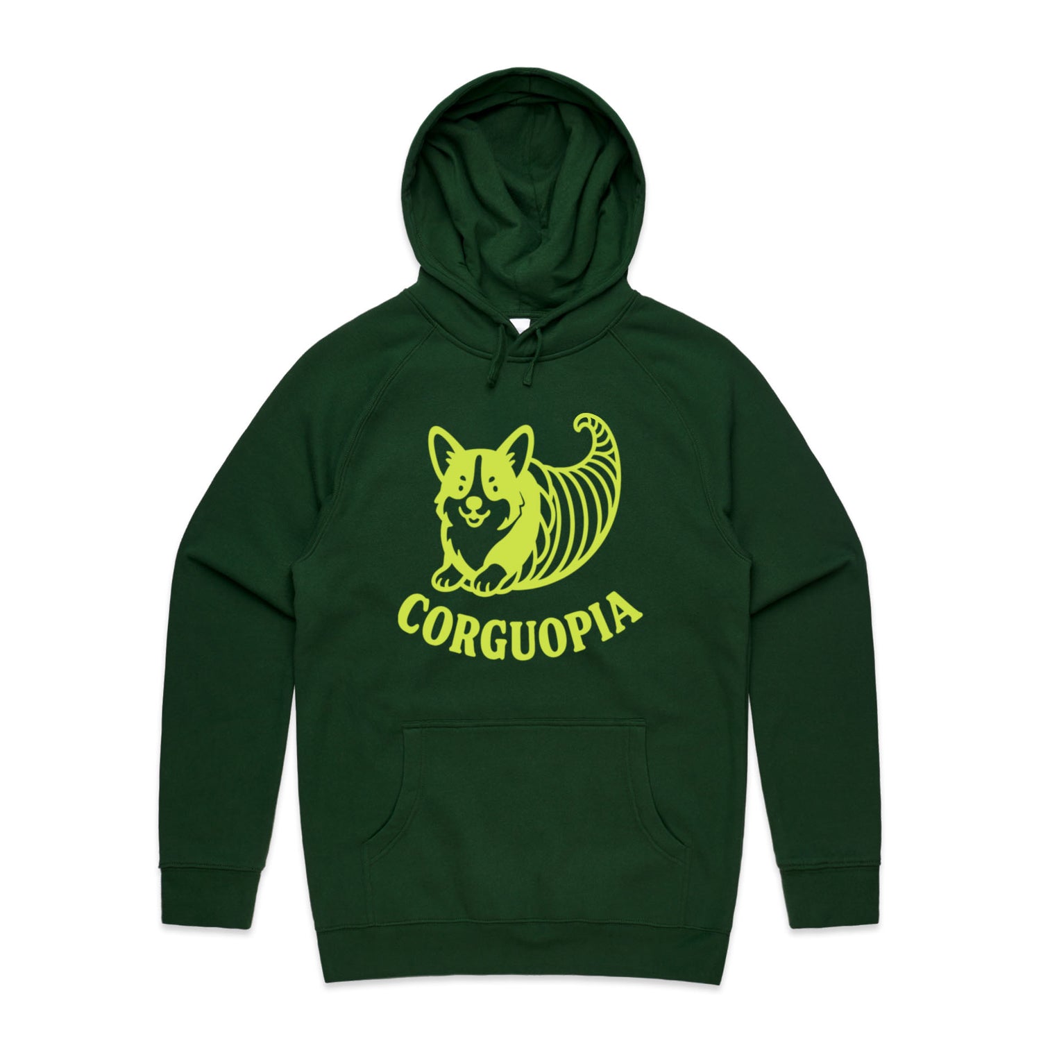 The Hoodies Corgi in Cornucopia – Men's Hooded Sweatshirt is a high-quality men's hooded sweatshirt, printed with fluoro yellow ink on the trusted AS Colour Supply Hood 5101. With a regular fit and mid-weight feel, it's crafted from a premium blend of 80% cotton and 20% polyester anti-pill fleece, making it a durable and comfortable staple for any wardrobe. The pullover design features raglan sleeves, a lined hood with tonal drawcord, ribbed sleeve cuffs, and a roomy kangaroo pocket — all designed to keep you warm while looking effortlessly sharp.