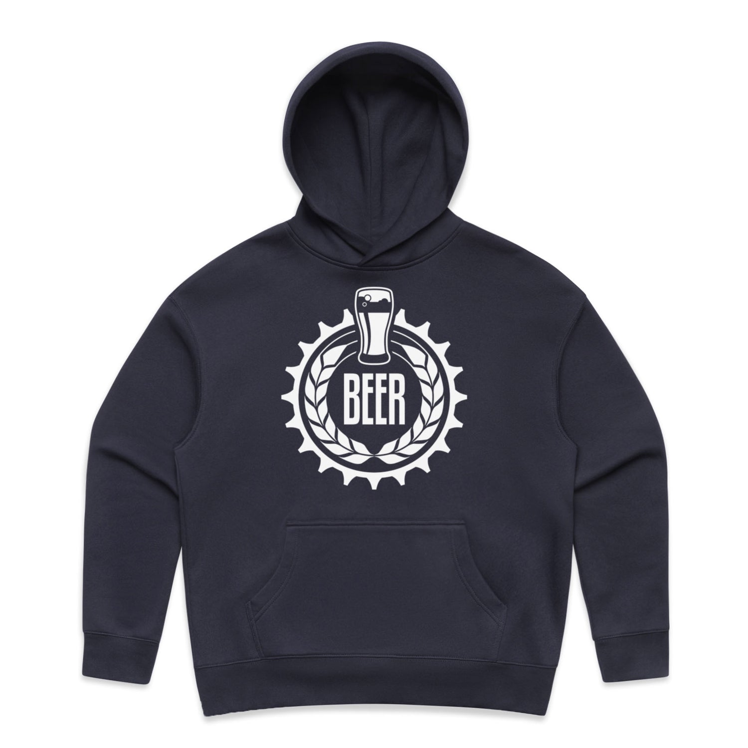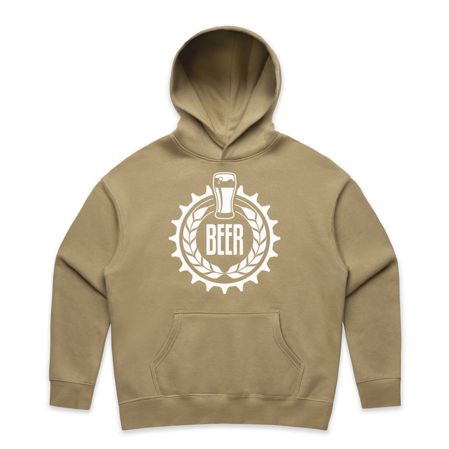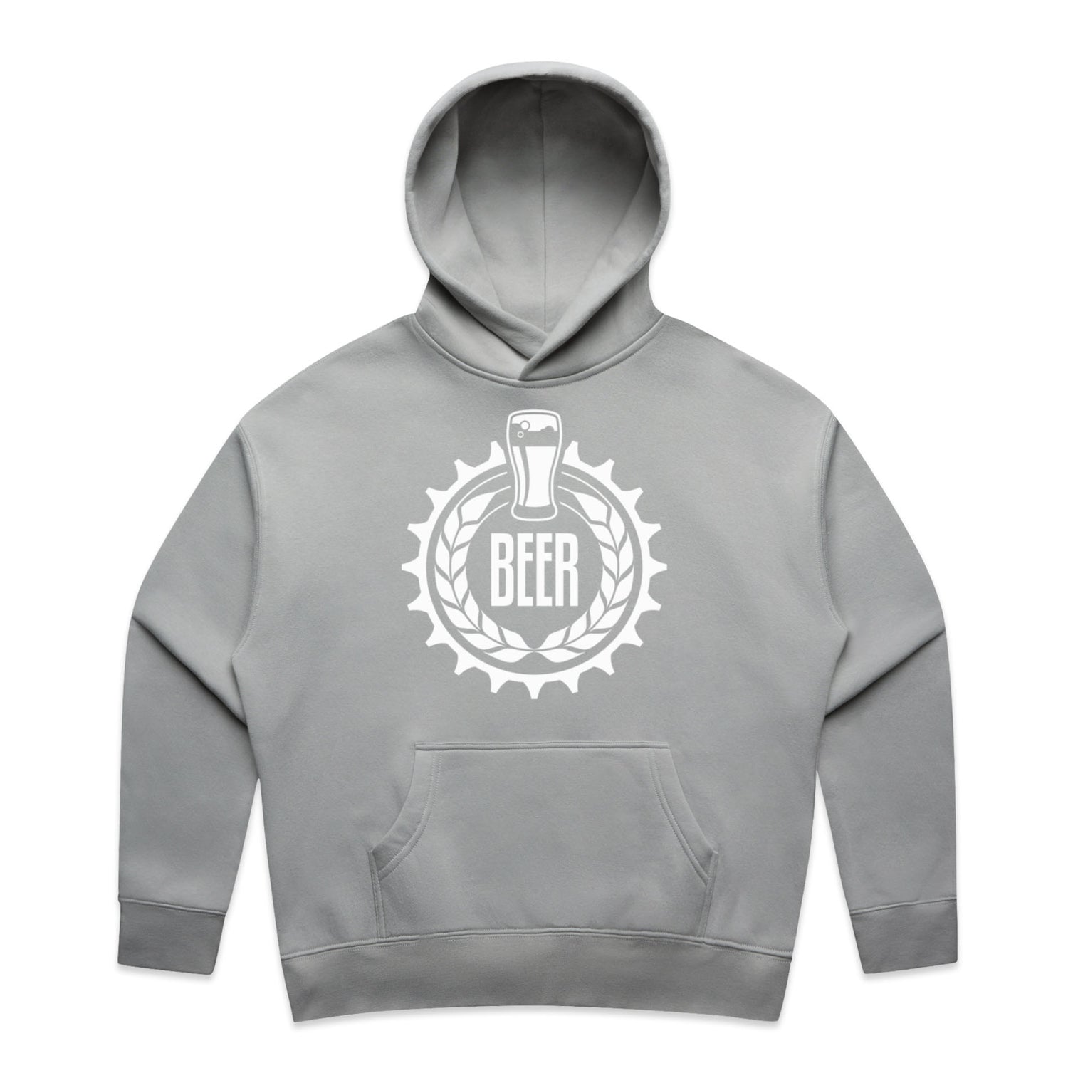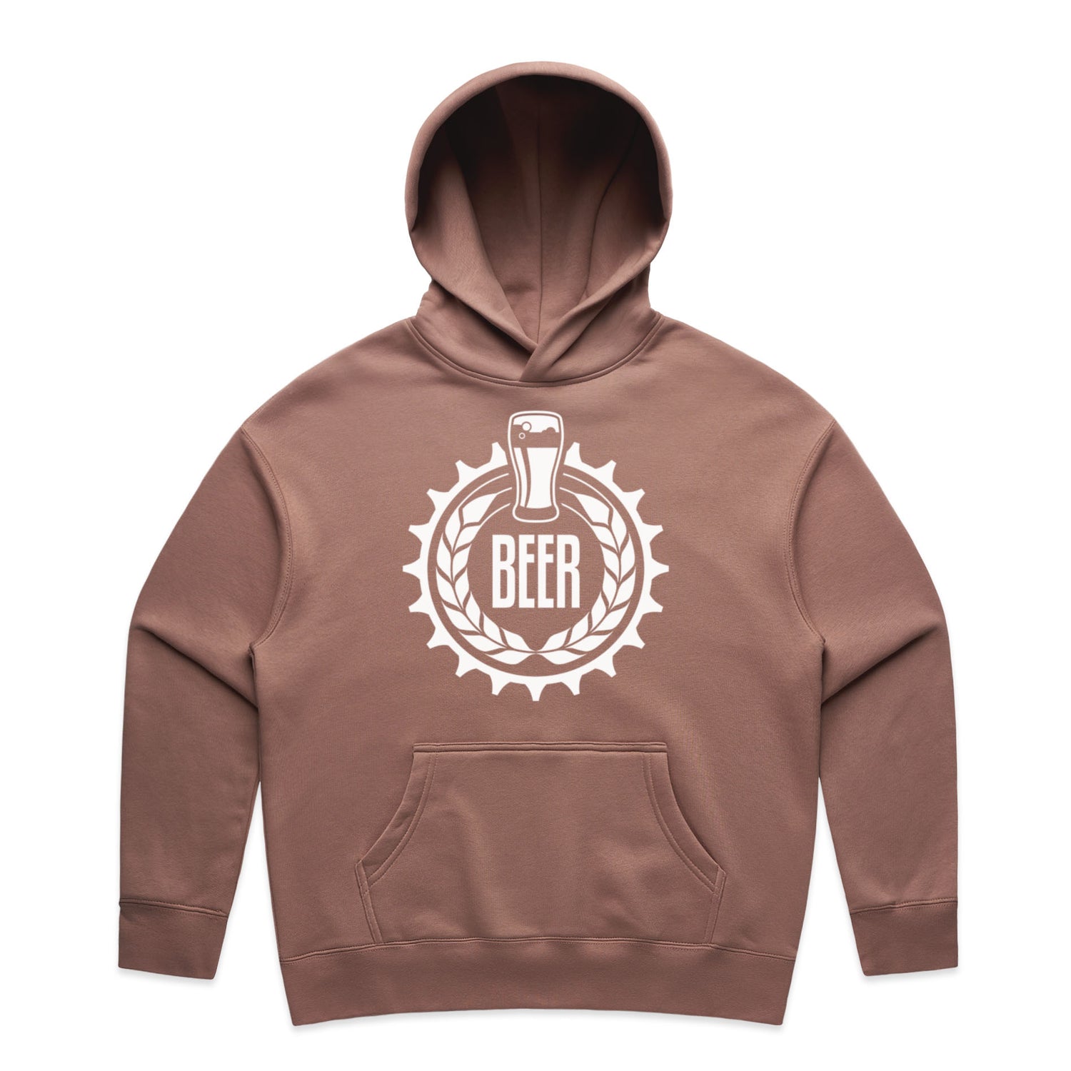 The Crimson Beer design splashes on a slick retro vibe, coming alive in stunning white ink – think of it as a nod to those classic beer labels that have stood the test of time. It's got all the good stuff: a pullover hood, drop shoulders for that effortlessly relaxed fit, and a kangaroo pocket to stash your essentials (or just to keep your hands warm on those breezy days).