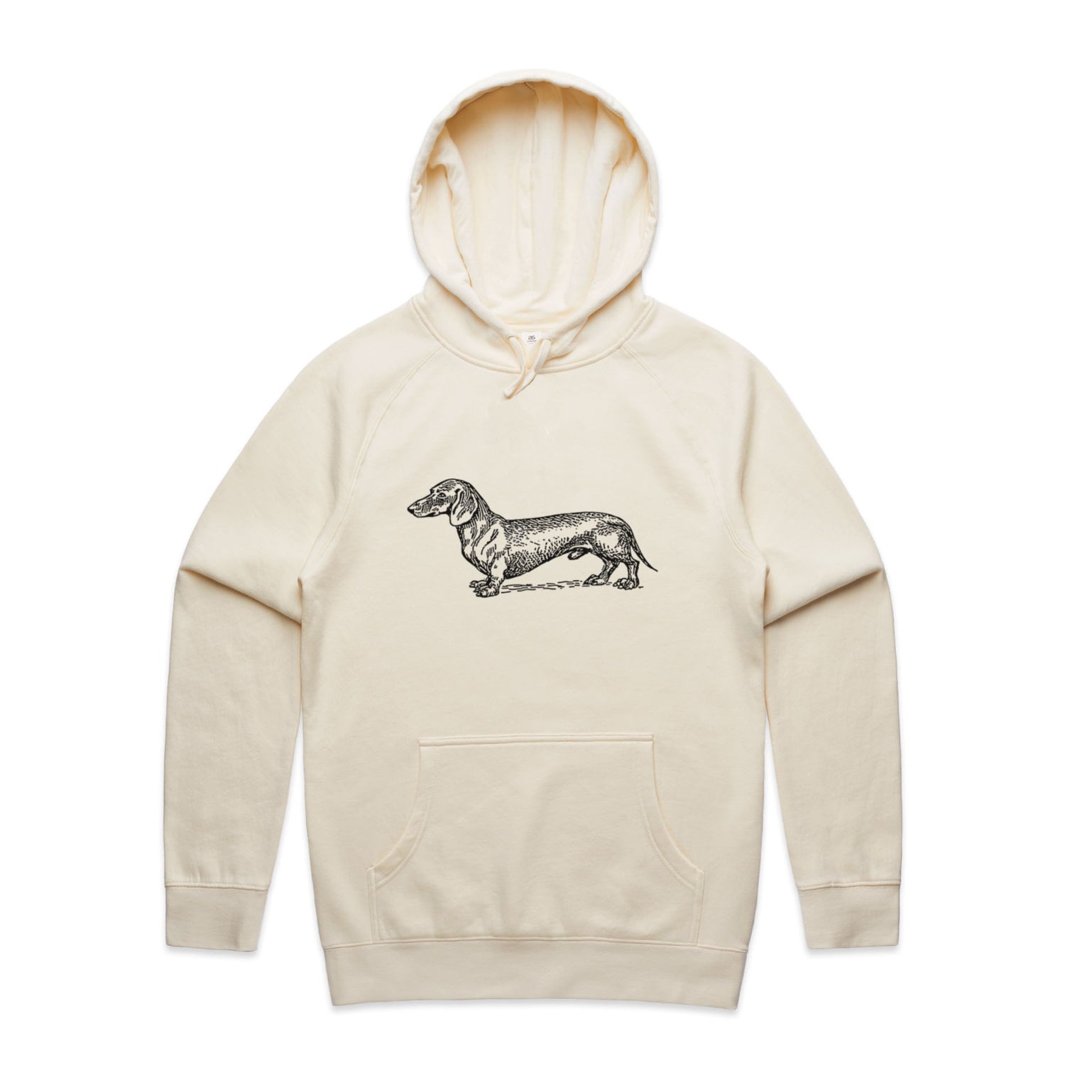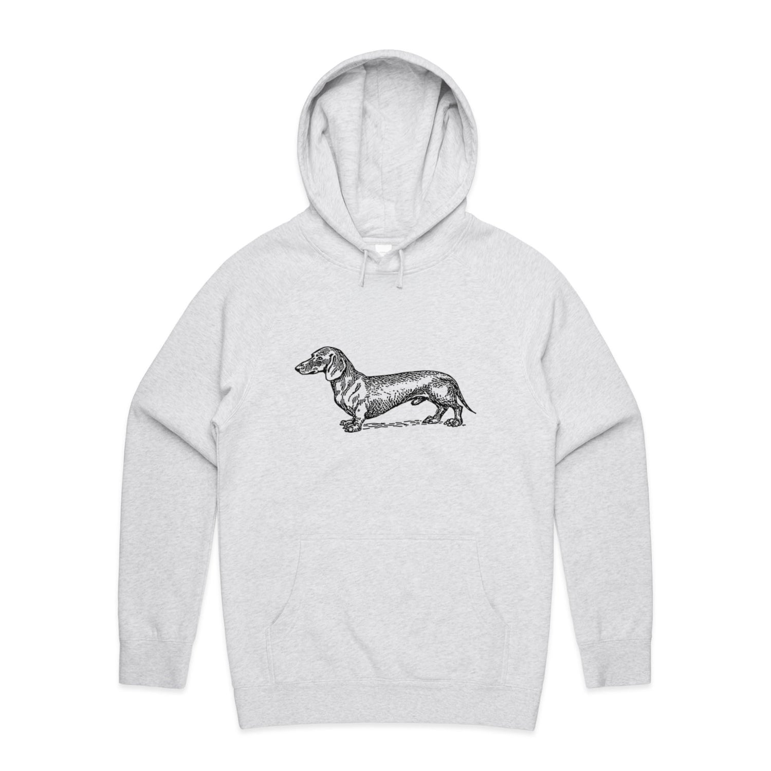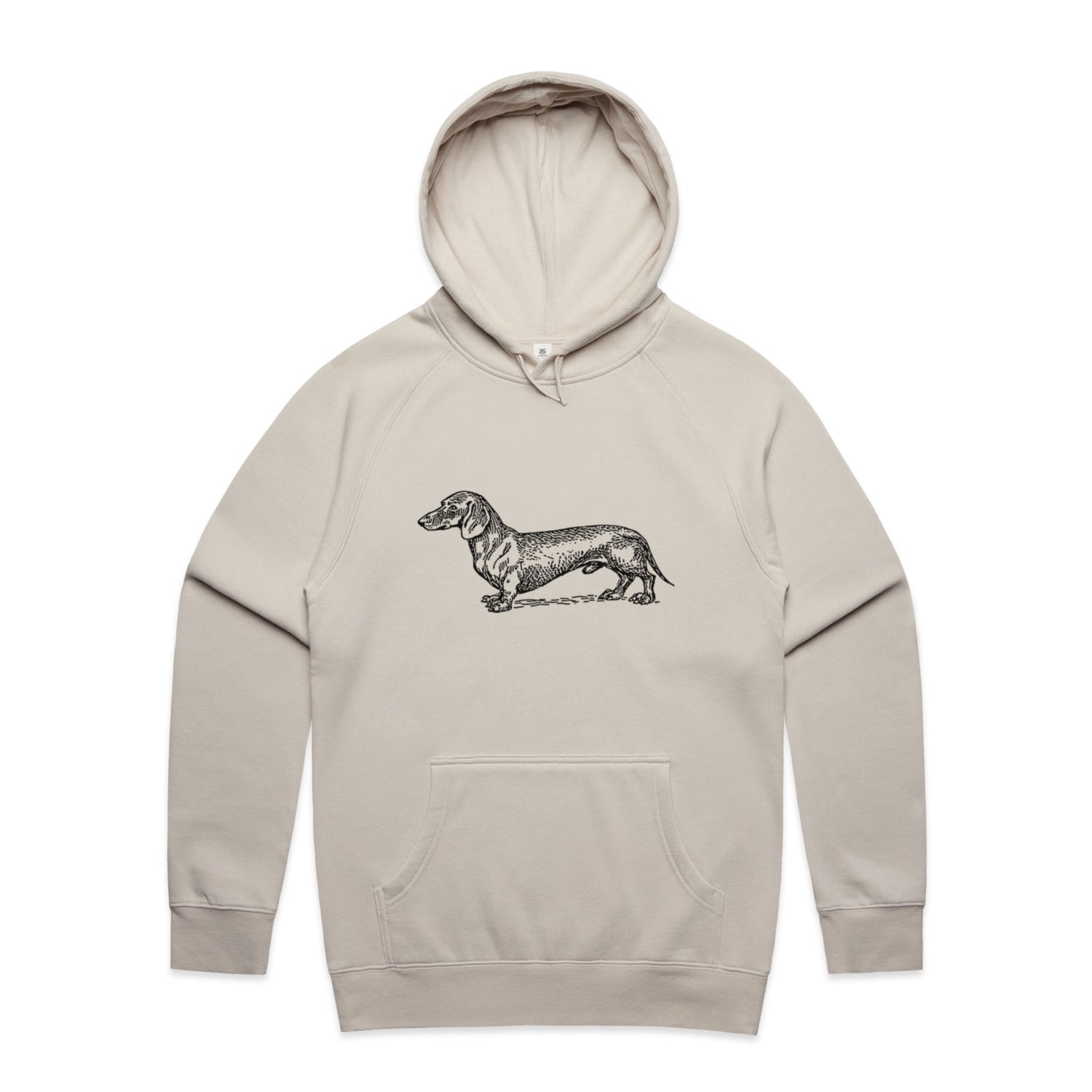 The Hoodies Dachshund – Men's Hooded Sweatshirt is a high-quality men's hooded sweatshirt, printed with black ink on the trusted AS Colour Supply Hood 5101. With a regular fit and mid-weight feel, it's crafted from a premium blend of 80% cotton and 20% polyester anti-pill fleece, making it a durable and comfortable staple for any wardrobe. The pullover design features raglan sleeves, a lined hood with tonal drawcord, ribbed sleeve cuffs, and a roomy kangaroo pocket — all designed to keep you warm while looking effortlessly sharp.
