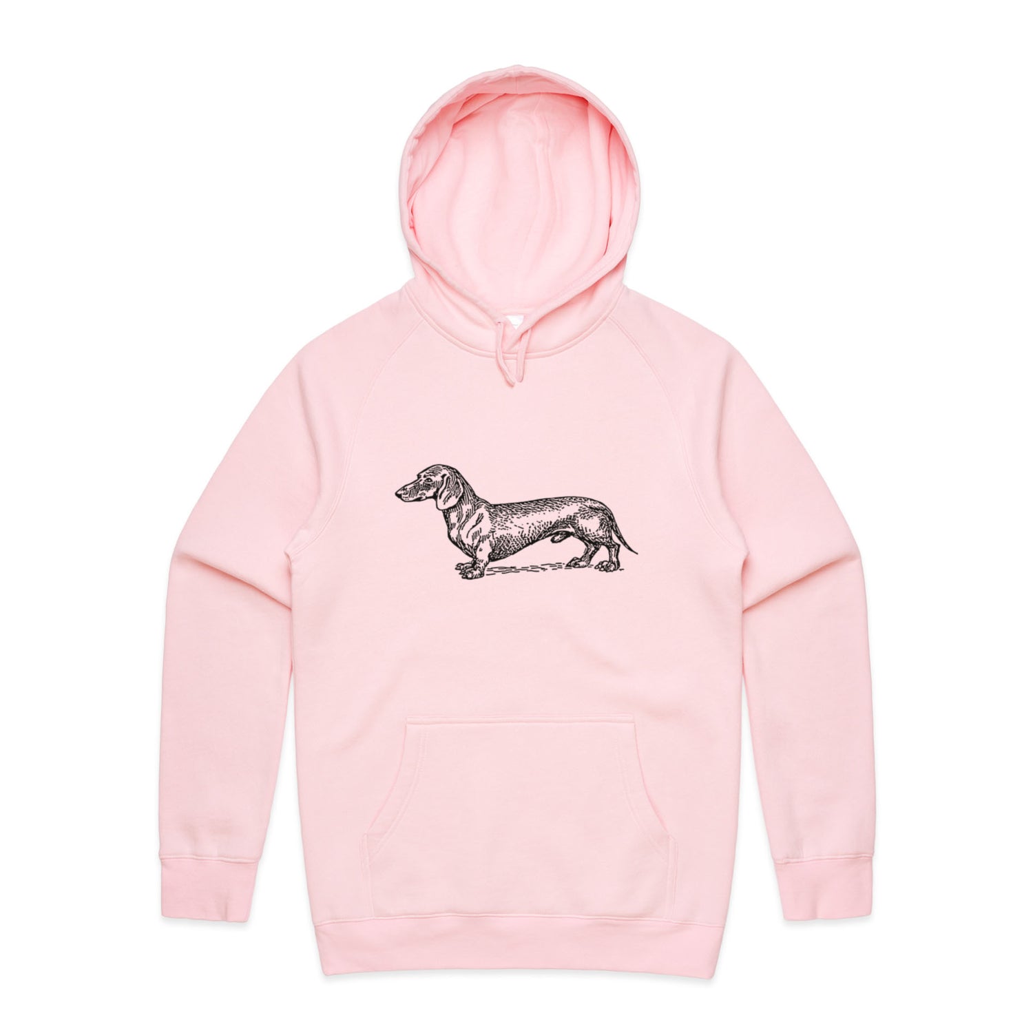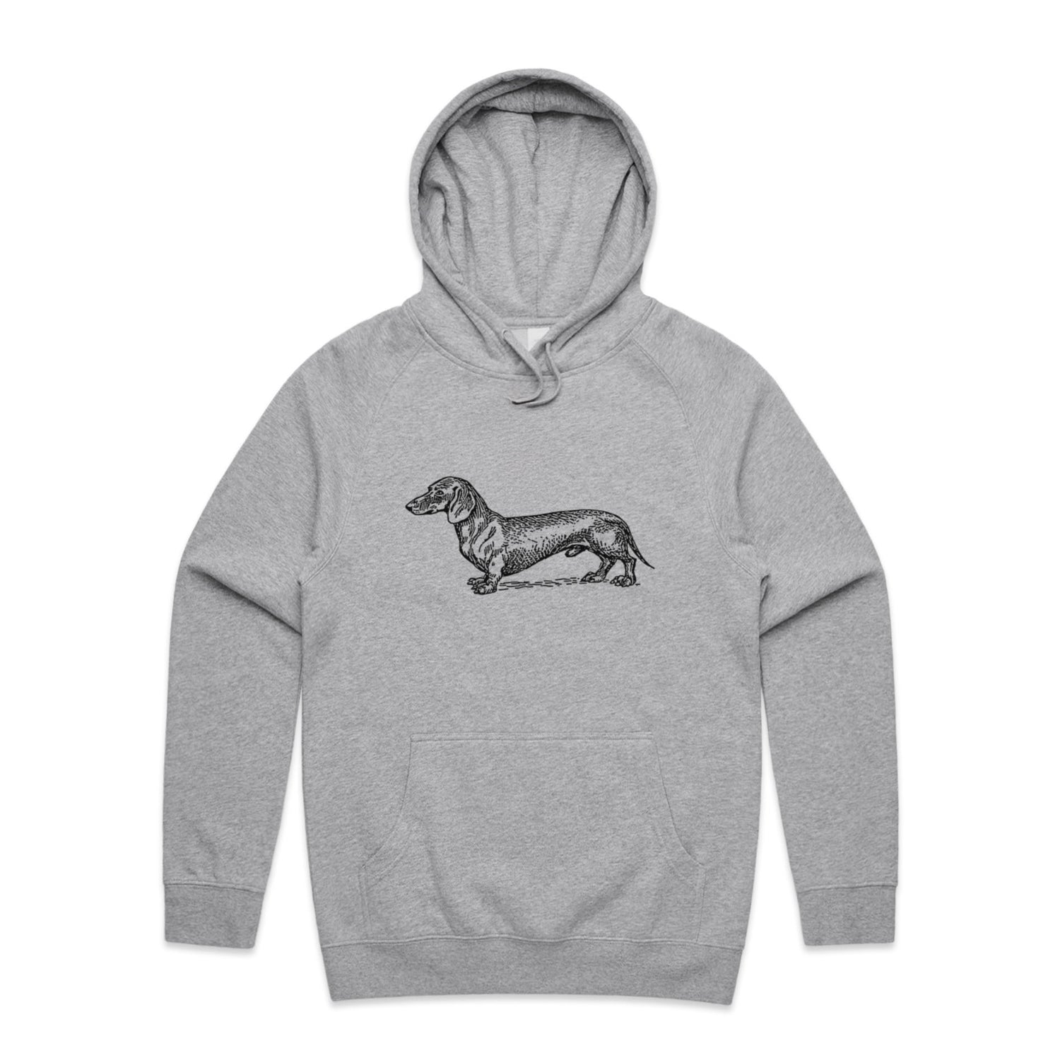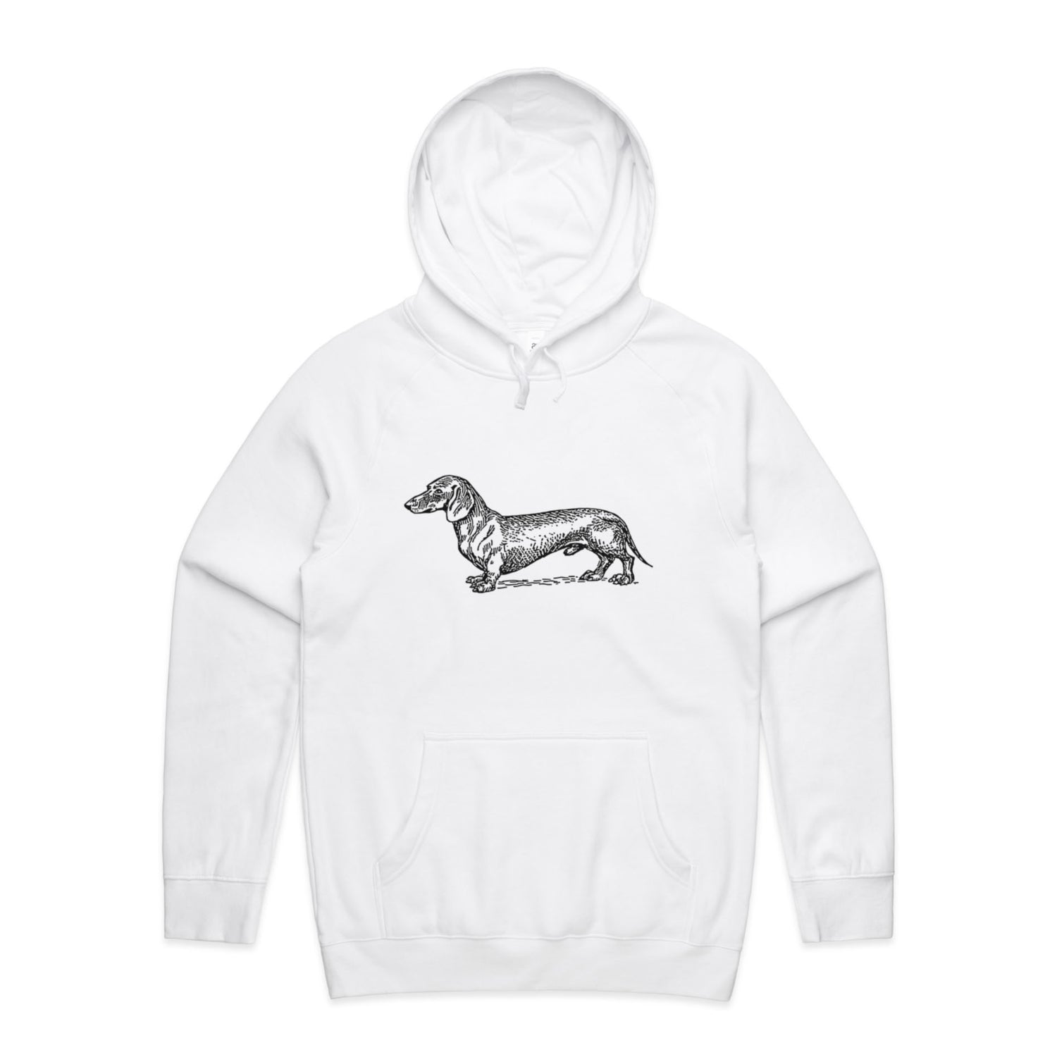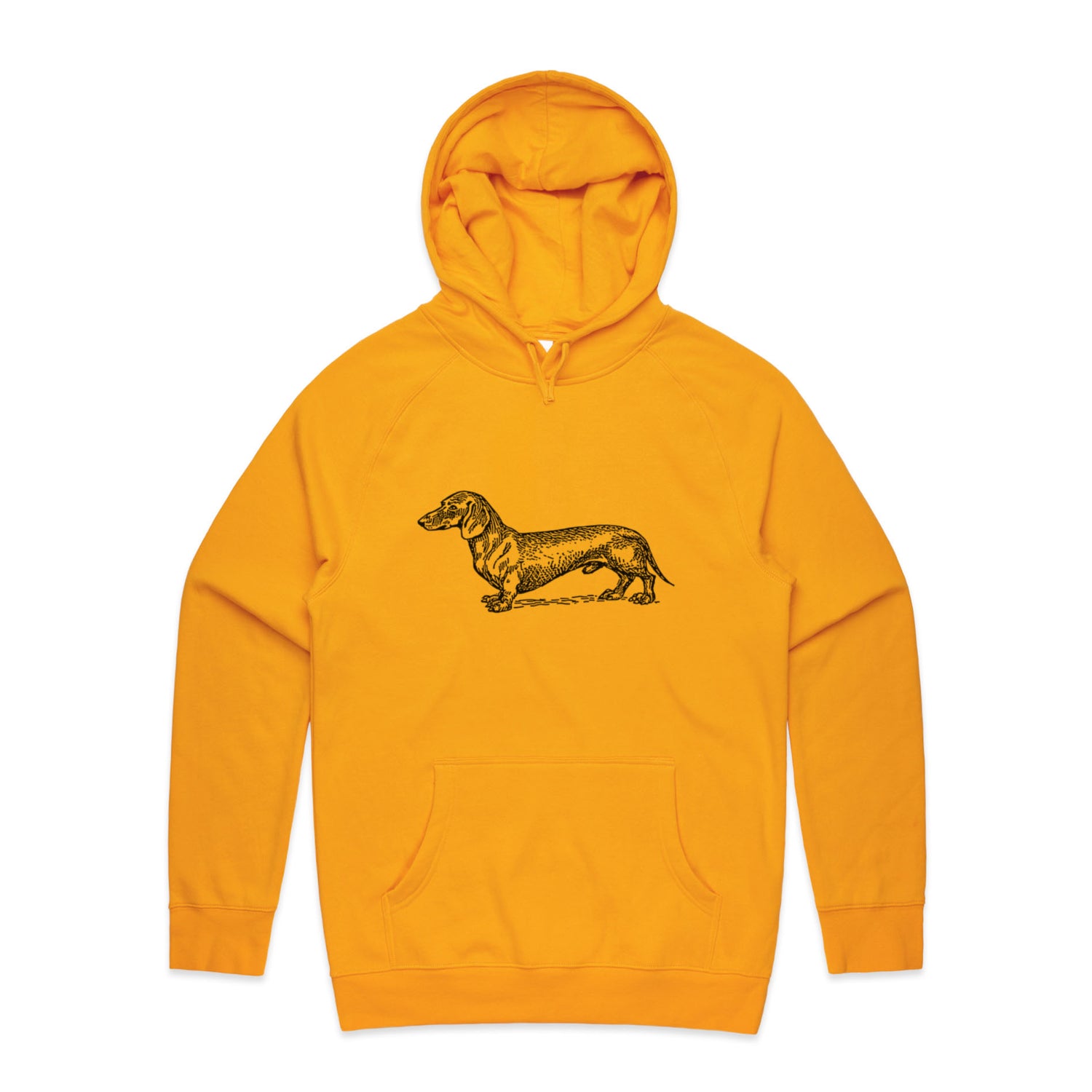 The Hoodies Dachshund – Men's Hooded Sweatshirt is a high-quality men's hooded sweatshirt, printed with black ink on the trusted AS Colour Supply Hood 5101. With a regular fit and mid-weight feel, it's crafted from a premium blend of 80% cotton and 20% polyester anti-pill fleece, making it a durable and comfortable staple for any wardrobe. The pullover design features raglan sleeves, a lined hood with tonal drawcord, ribbed sleeve cuffs, and a roomy kangaroo pocket — all designed to keep you warm while looking effortlessly sharp.