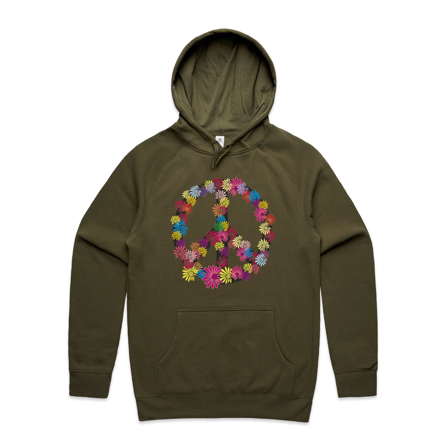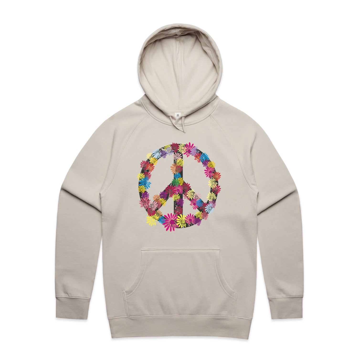 The Hoodies Daisy Peace Sign – Men's Hooded Sweatshirt is a high-quality men's hooded sweatshirt, printed with multicoloured ink on the trusted AS Colour Supply Hood 5101. With a regular fit and mid-weight feel, it's crafted from a premium blend of 80% cotton and 20% polyester anti-pill fleece, making it a durable and comfortable staple for any wardrobe. The pullover design features raglan sleeves, a lined hood with tonal drawcord, ribbed sleeve cuffs, and a roomy kangaroo pocket — all designed to keep you warm while looking effortlessly sharp.