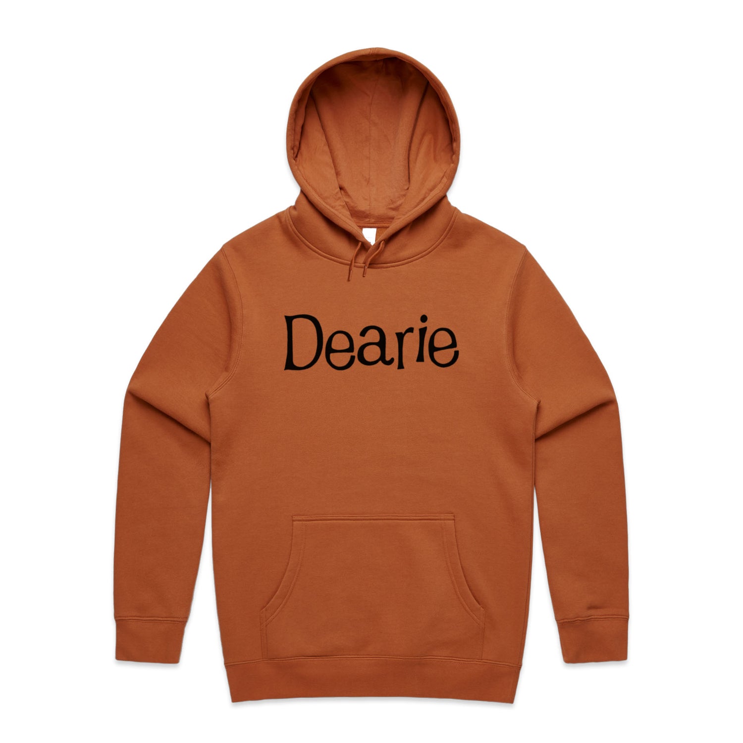 Slide into the comfy-as pullover style, stash your gear or stash your hands in the classic kangaroo pocket, and bam – you’re set for anything from a Sunday sesh to kicking back with your mates. The solid black ink print brings that timeless, edgy feel – making sure you’re always in style, effortlessly. Whether you’re pairing it with jeans for a chill look or dressing it up to make a bold statement, this hoodie is your golden ticket to fashion freedom. You’ll feel right at home, whether you’re roaming the streets or just lounging around. So, throw it on, rock that tonal drawcord, and let TheHoodie's Dearie be the star of your style show!