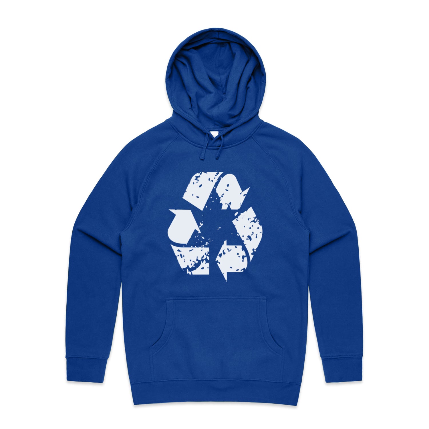 The Hoodies Distressed Recycle Symbol Green – Men's Hooded Sweatshirt is a high-quality men's hooded sweatshirt, printed with white ink on the trusted AS Colour Supply Hood 5101. With a regular fit and mid-weight feel, it's crafted from a premium blend of 80% cotton and 20% polyester anti-pill fleece, making it a durable and comfortable staple for any wardrobe. The pullover design features raglan sleeves, a lined hood with tonal drawcord, ribbed sleeve cuffs, and a roomy kangaroo pocket — all designed to keep you warm while looking effortlessly sharp.