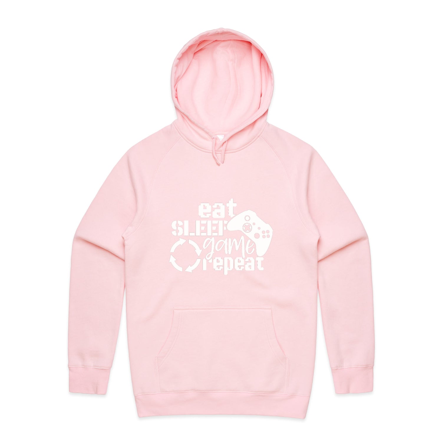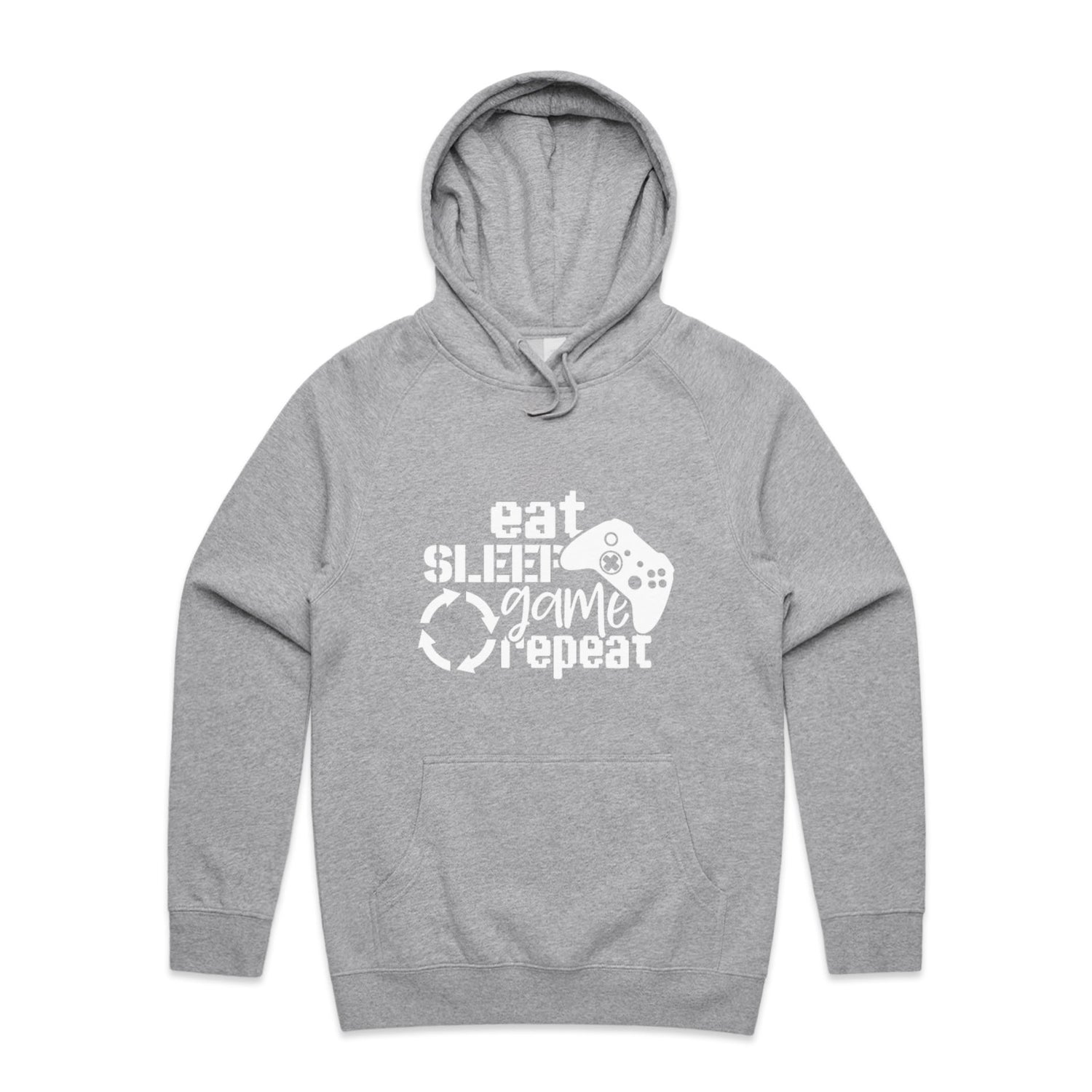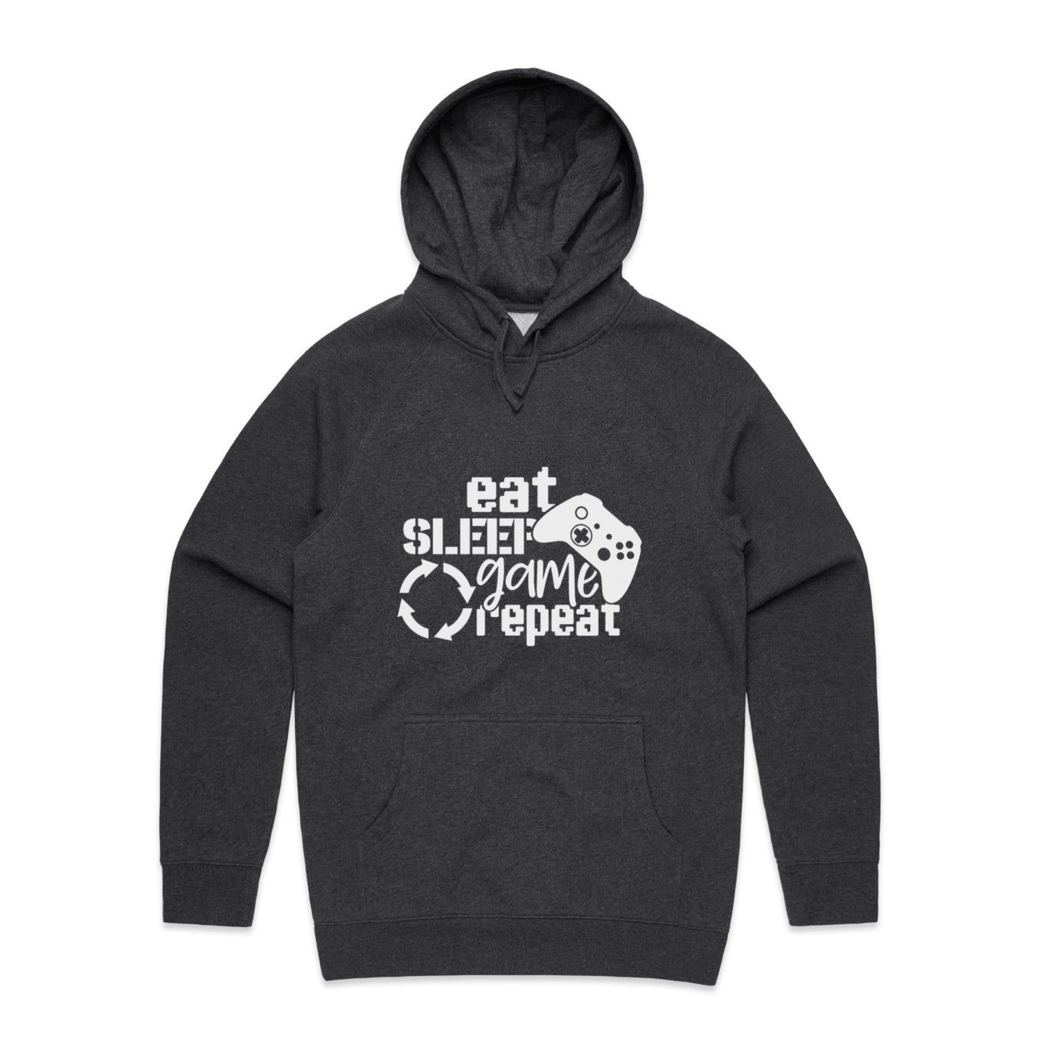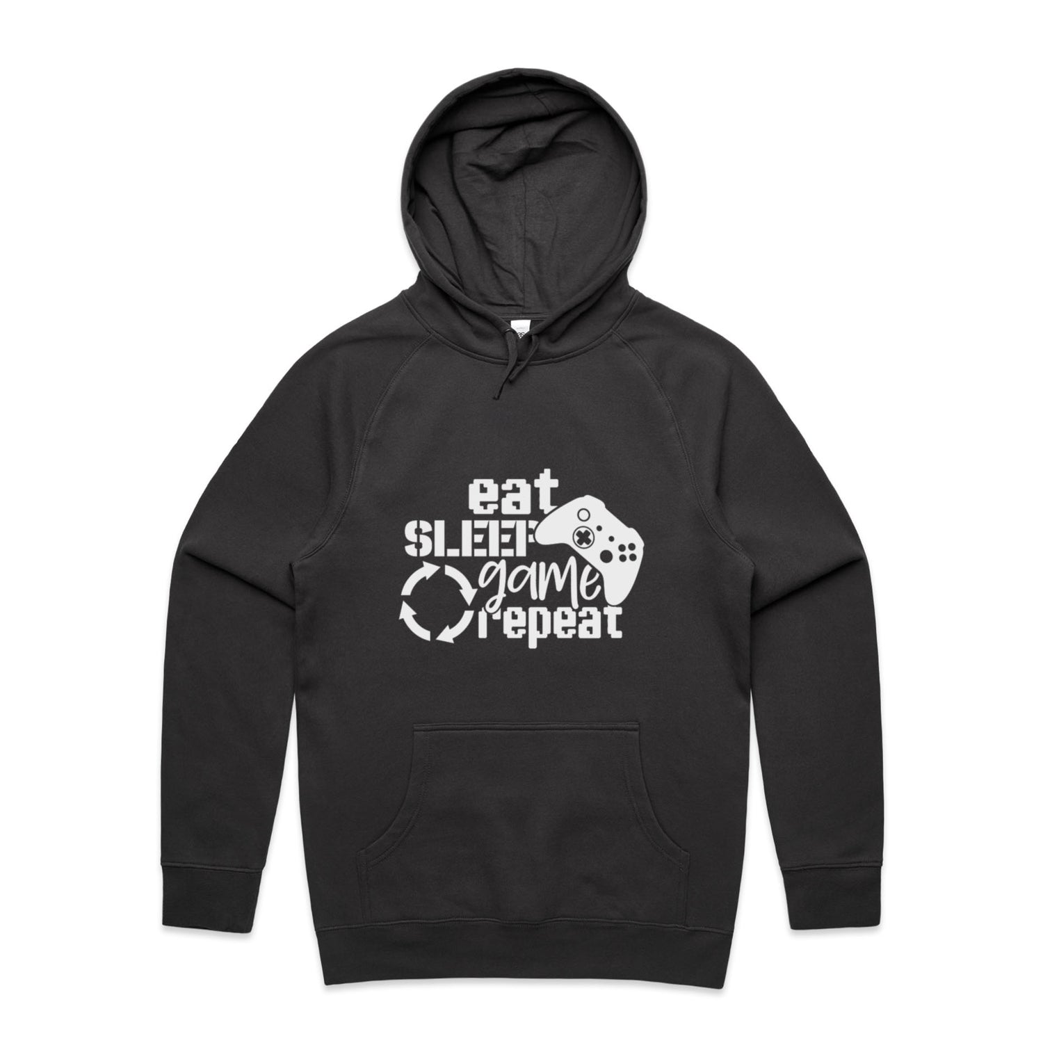 The Hoodies Eat Sleep Game Cycle – Men's Hooded Sweatshirt is a high-quality men's hooded sweatshirt, printed with white ink on the trusted AS Colour Supply Hood 5101. With a regular fit and mid-weight feel, it's crafted from a premium blend of 80% cotton and 20% polyester anti-pill fleece, making it a durable and comfortable staple for any wardrobe. The pullover design features raglan sleeves, a lined hood with tonal drawcord, ribbed sleeve cuffs, and a roomy kangaroo pocket — all designed to keep you warm while looking effortlessly sharp.