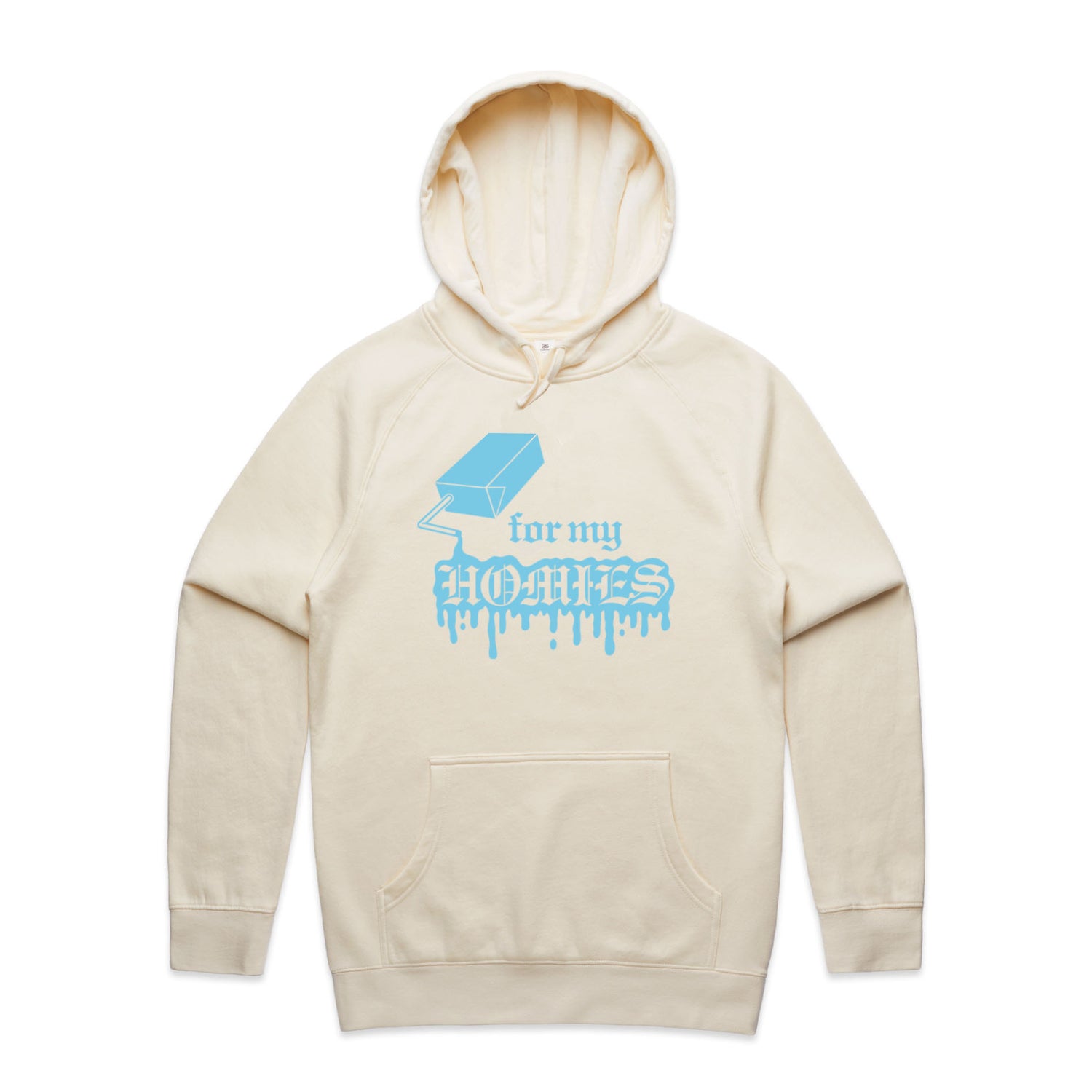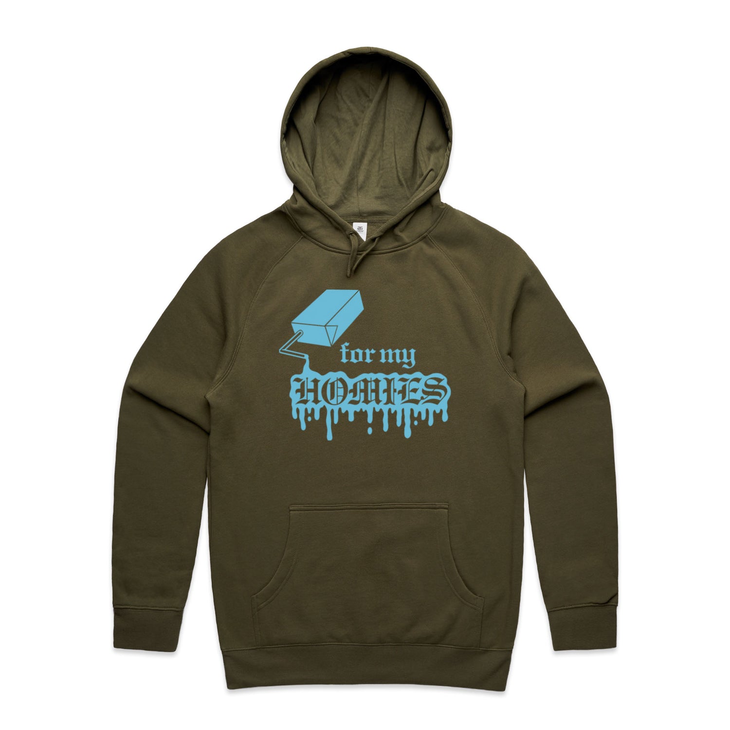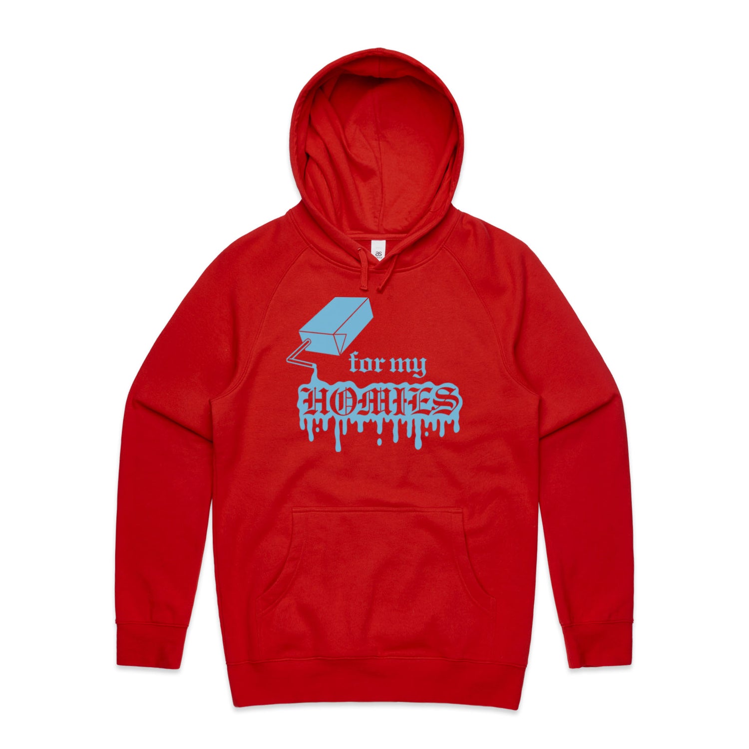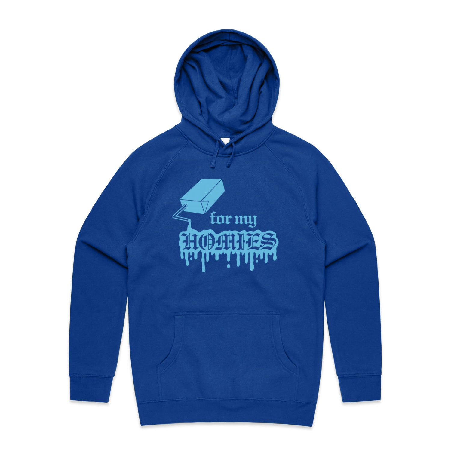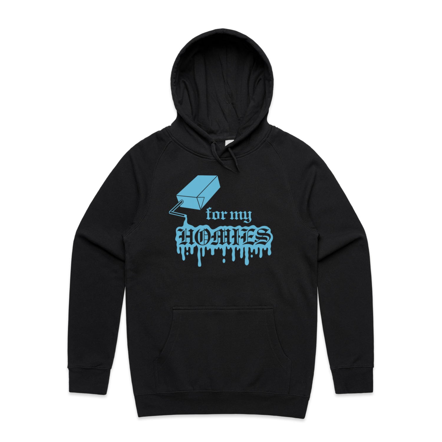 The Hoodies For My Homies – Men's Hooded Sweatshirt is a high-quality men's hooded sweatshirt, printed with light blue ink on the trusted AS Colour Supply Hood 5101. With a regular fit and mid-weight feel, it's crafted from a premium blend of 80% cotton and 20% polyester anti-pill fleece, making it a durable and comfortable staple for any wardrobe. The pullover design features raglan sleeves, a lined hood with tonal drawcord, ribbed sleeve cuffs, and a roomy kangaroo pocket — all designed to keep you warm while looking effortlessly sharp.
